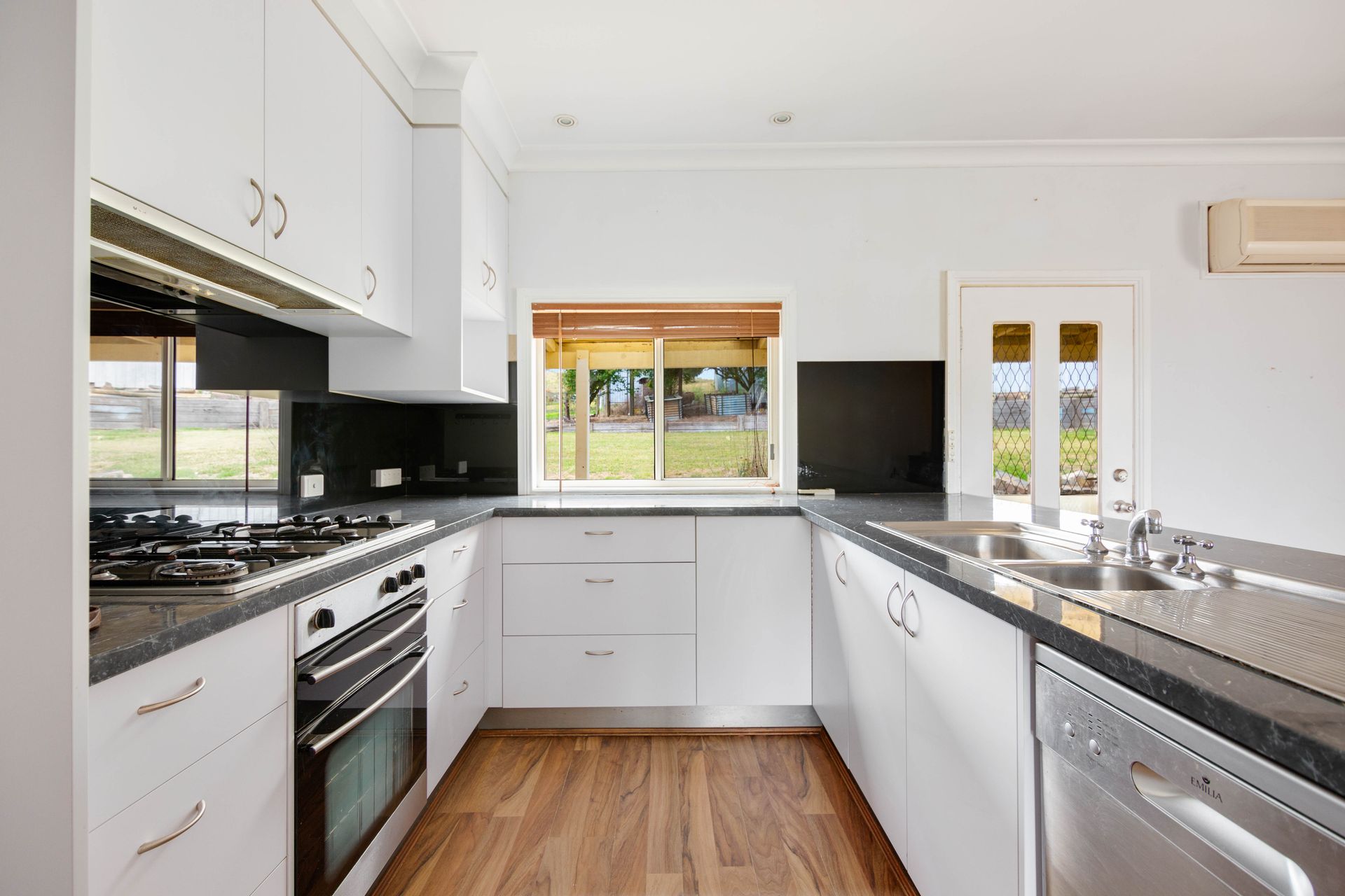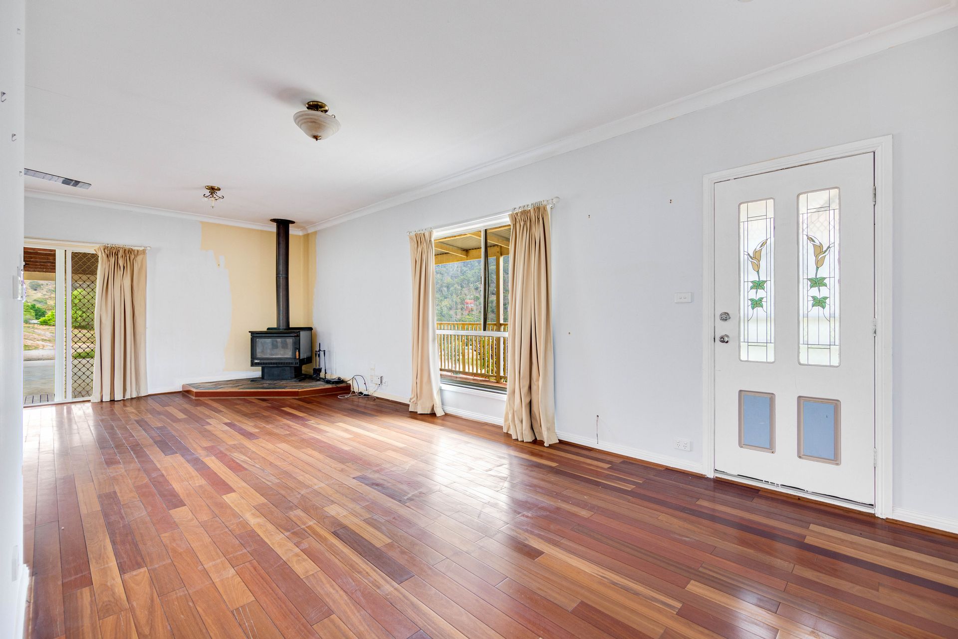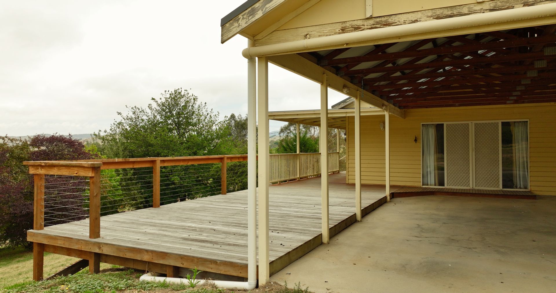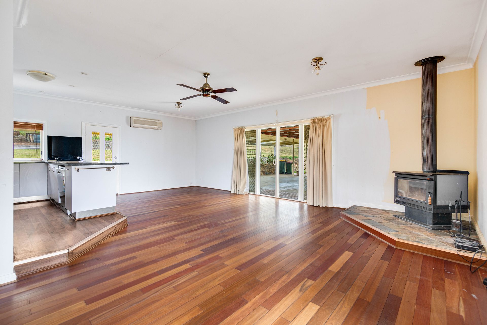 Neatly presented, the home offers four good sized carpeted bedrooms, two with ceiling fans and all with built in robes. A nice open plan kitchen with a gas cooktop, electric oven, and dishwasher and steps down into the dining/lounge area with a free-standing wood heater, reverse cycle air conditioner and ceiling fan, and boasts sliding door access out onto the elevated veranda-deck area capturing the remarkable district scenery and the Livingstone Creek frontage below. The home has a separate toilet next to the bathroom which boasts a bath, shower and vanity, with access through to a practical laundry with the benefit of external entry-exit.