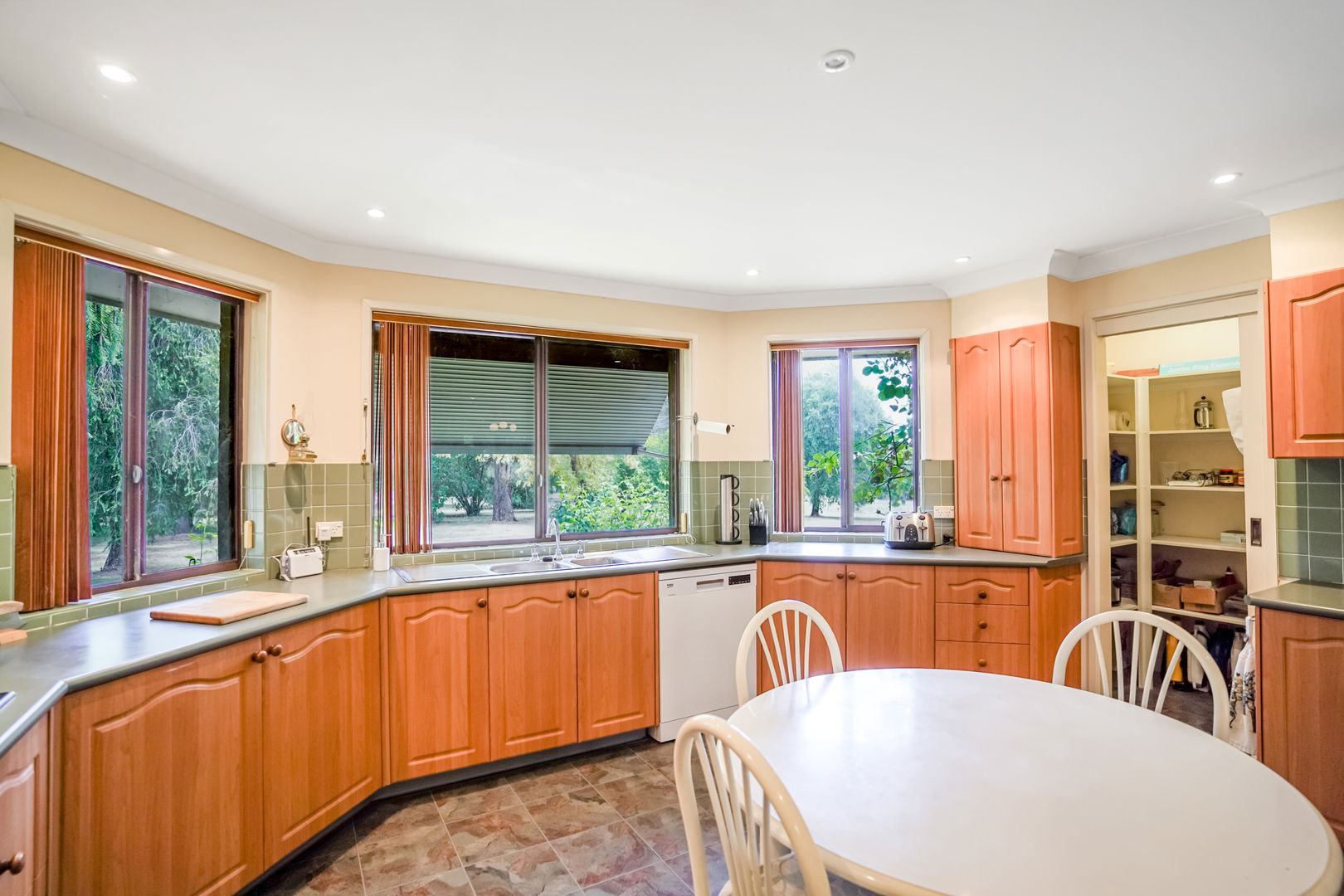 • Brick 4bedroom family home, with a spacious living and dining space, complete with a woodfire. This room opens out to both the front and rear verandas with garden views. The kitchen has a walk in pantry, dishwasher and adjoins a casual dining area.