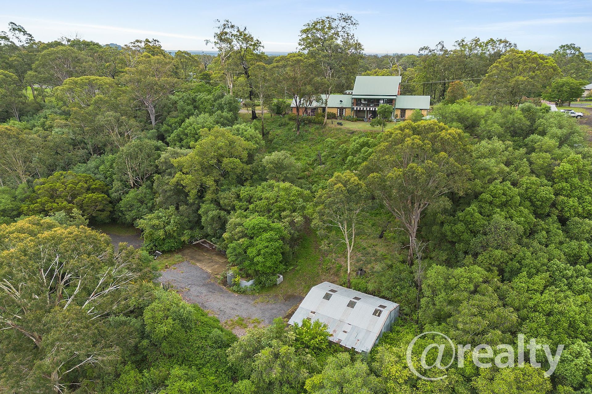 ✅ Dual driveways – one leading to the home, the other to the lower section with slab & shed