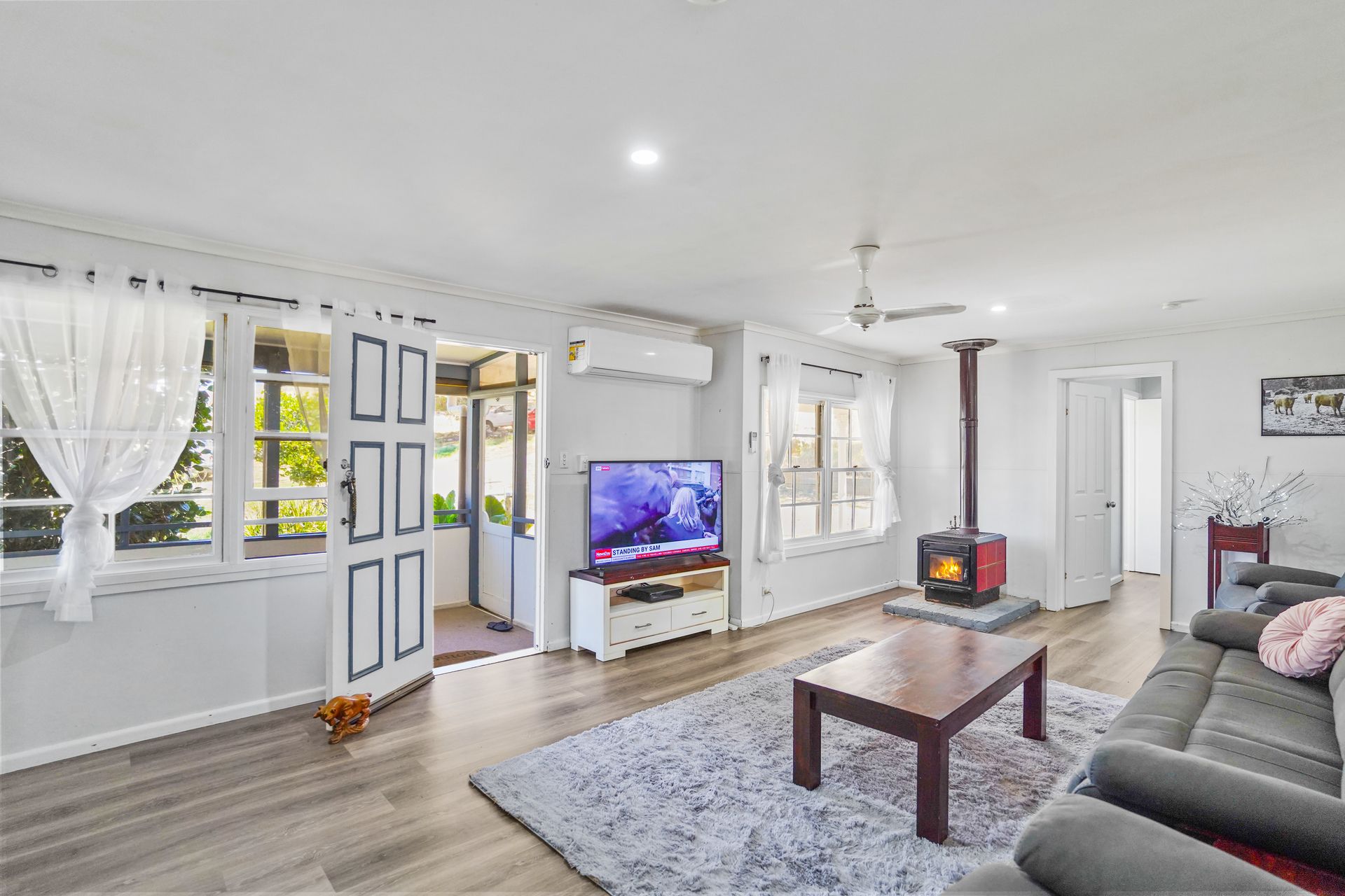 • Large living area with split system and wood fire