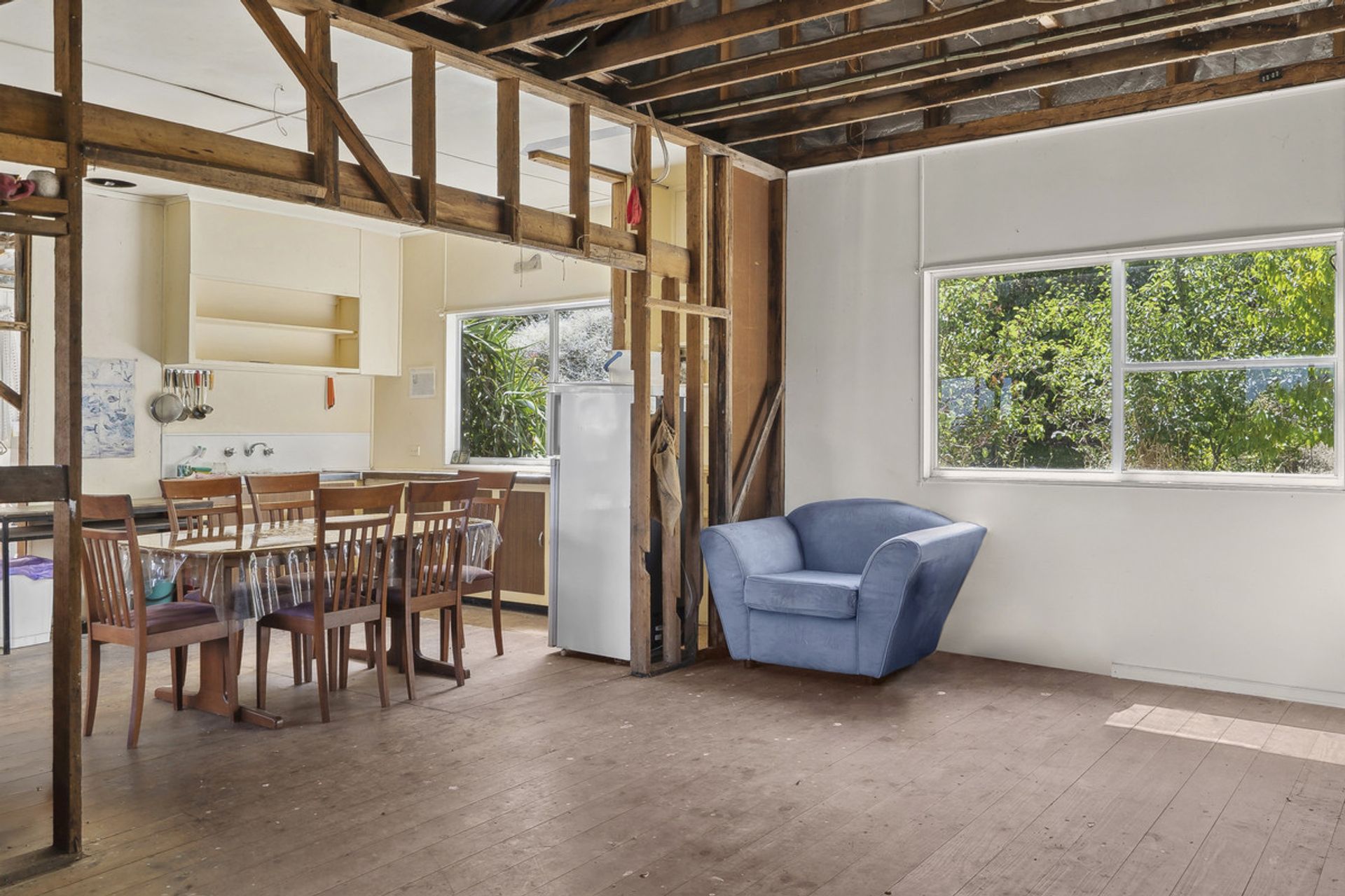 • Hardwood & Pine Floorboards: Inside, you'll find a mixture of hardwood and pine floorboards that give the space a timeless charm. These original features add character and style, making it an ideal project for those with a passion for restoration.