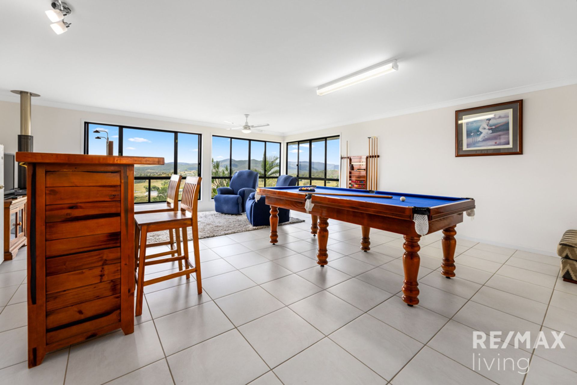 Designed to maximize natural light and panoramic views, this home features an expansive, elevated front deck, an ideal space to soak in the beauty of the landscape. Inside, the open-plan layout seamlessly connects multiple living areas, including a spacious main living area, a secondary lounge, and an inviting games room complete with a fireplace.