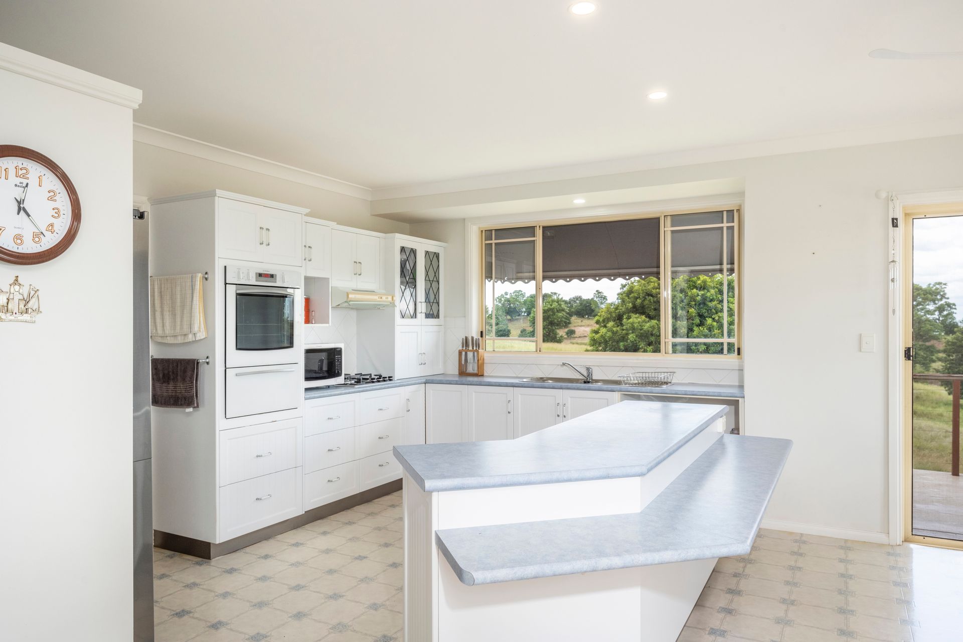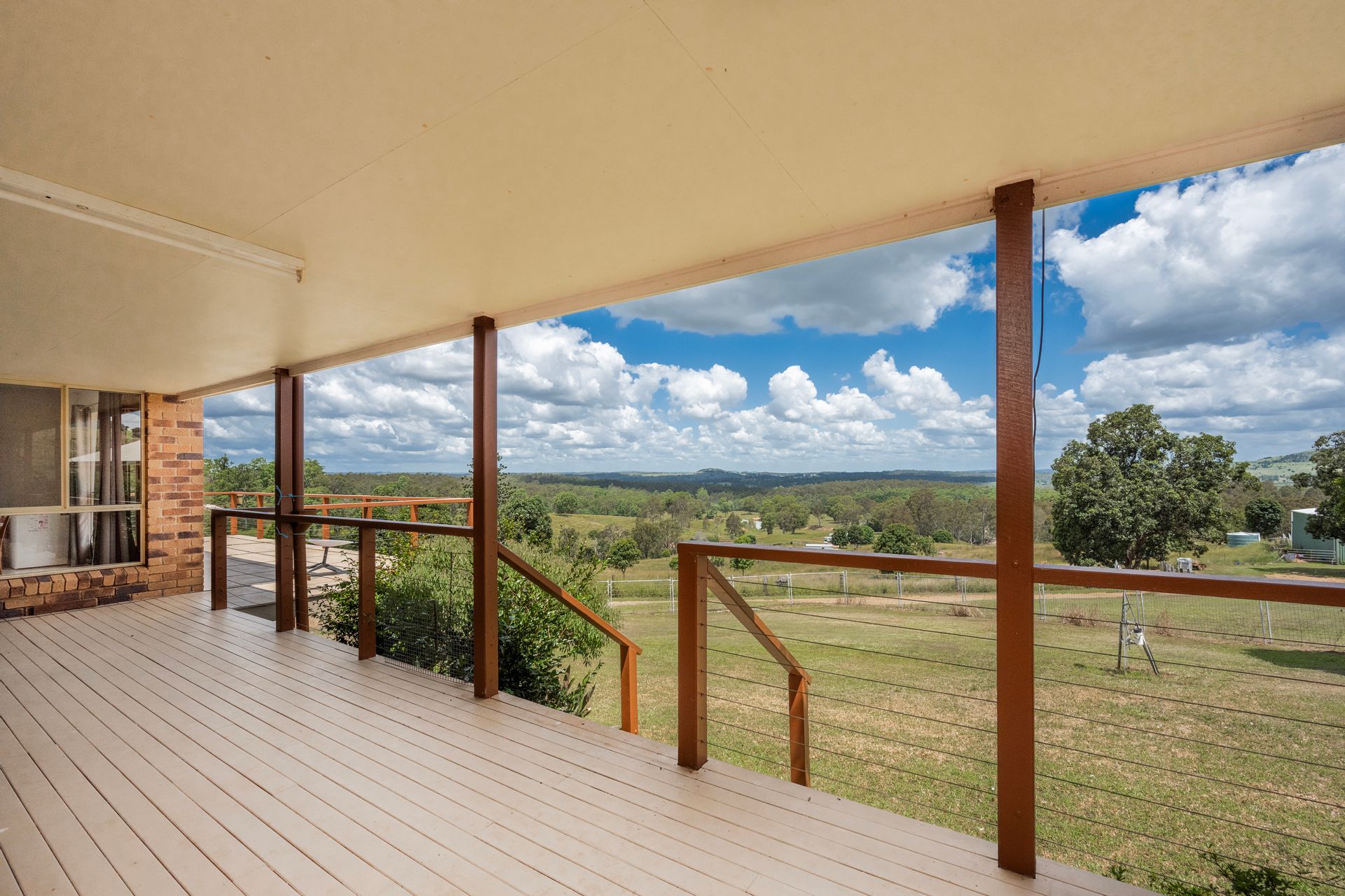 • Built around 2000, the home is built into the hill with raised scenic views. The house has five bedrooms. The main one has an ensuite. A large office, separate toilet, second bathroom, and a large storage room that could be a sixth bedroom. A modern open-plan kitchen with a built-in pantry and island bench, dining room, and living room. The home has an elevated wrap-around verandah with access to bedrooms, living, and dining rooms, providing fantastic views of the valley and rolling hills.