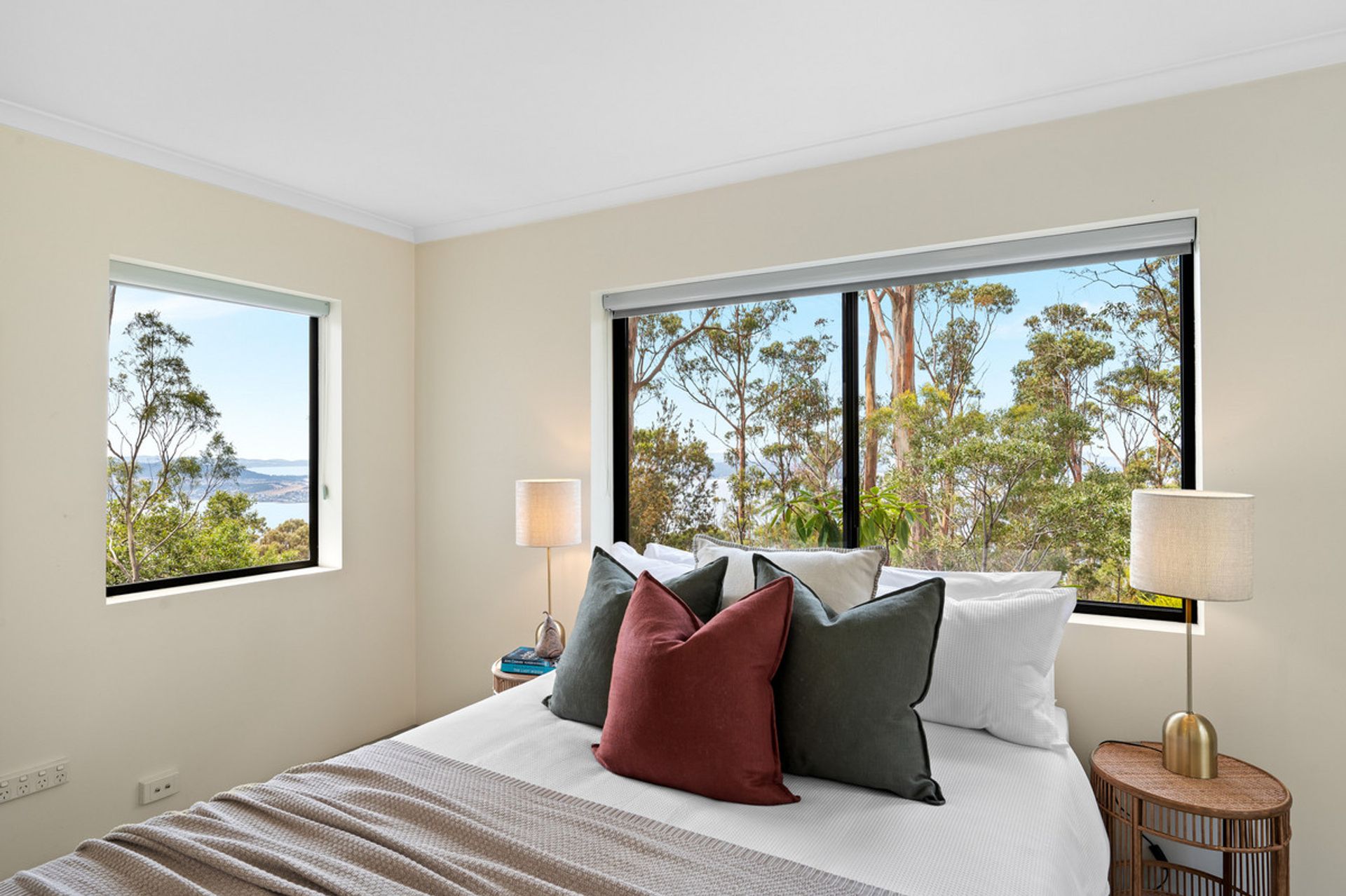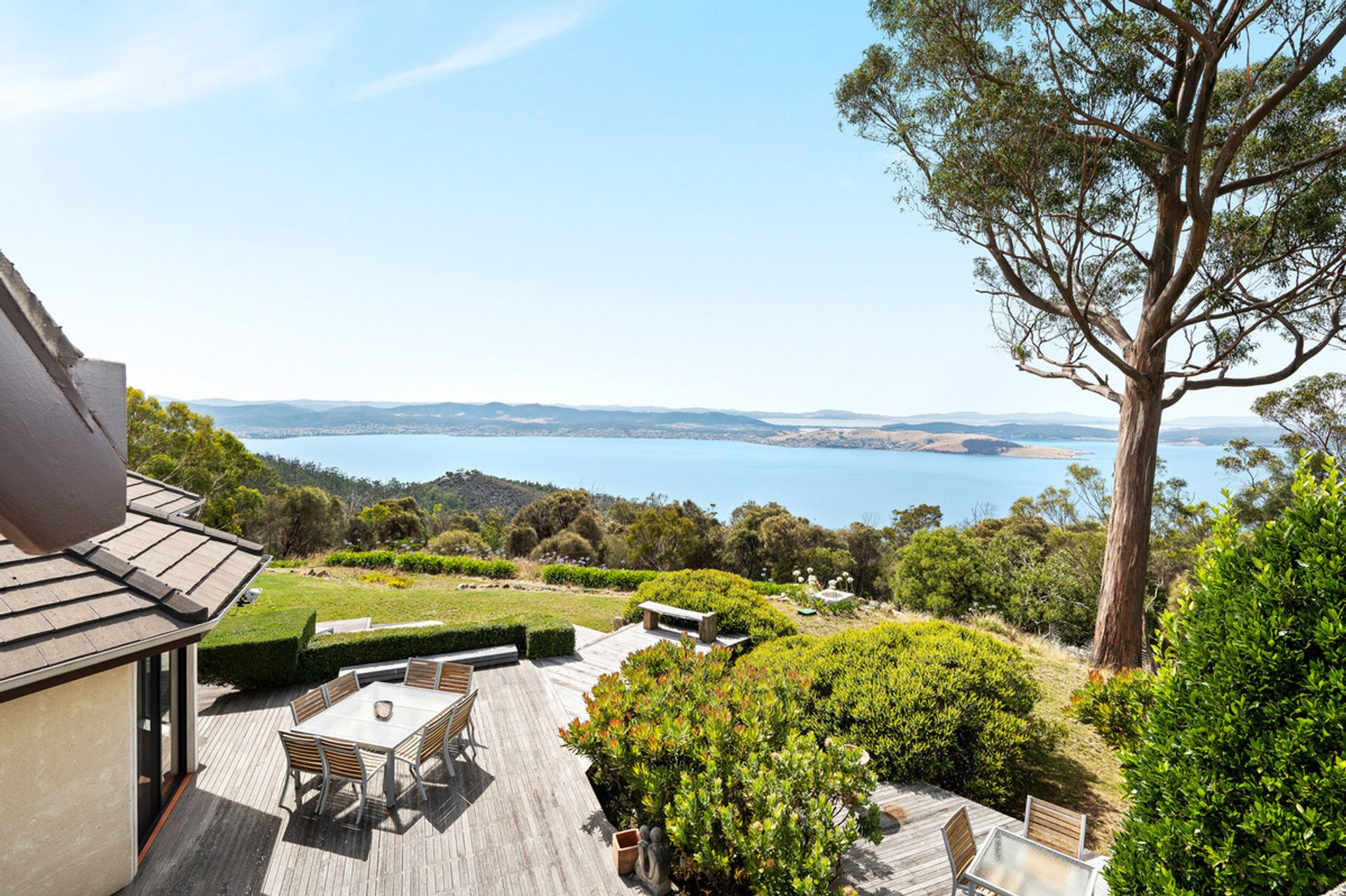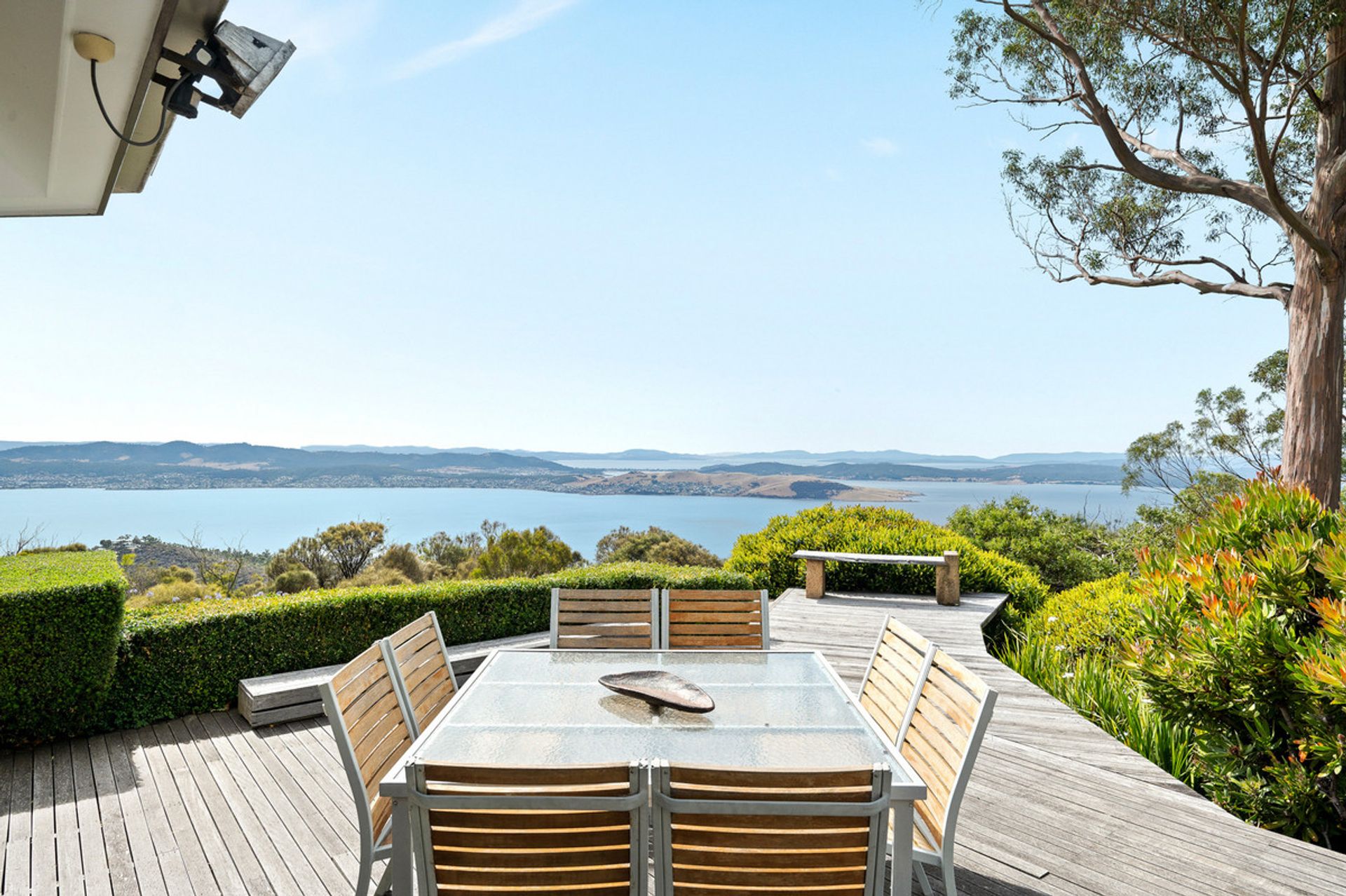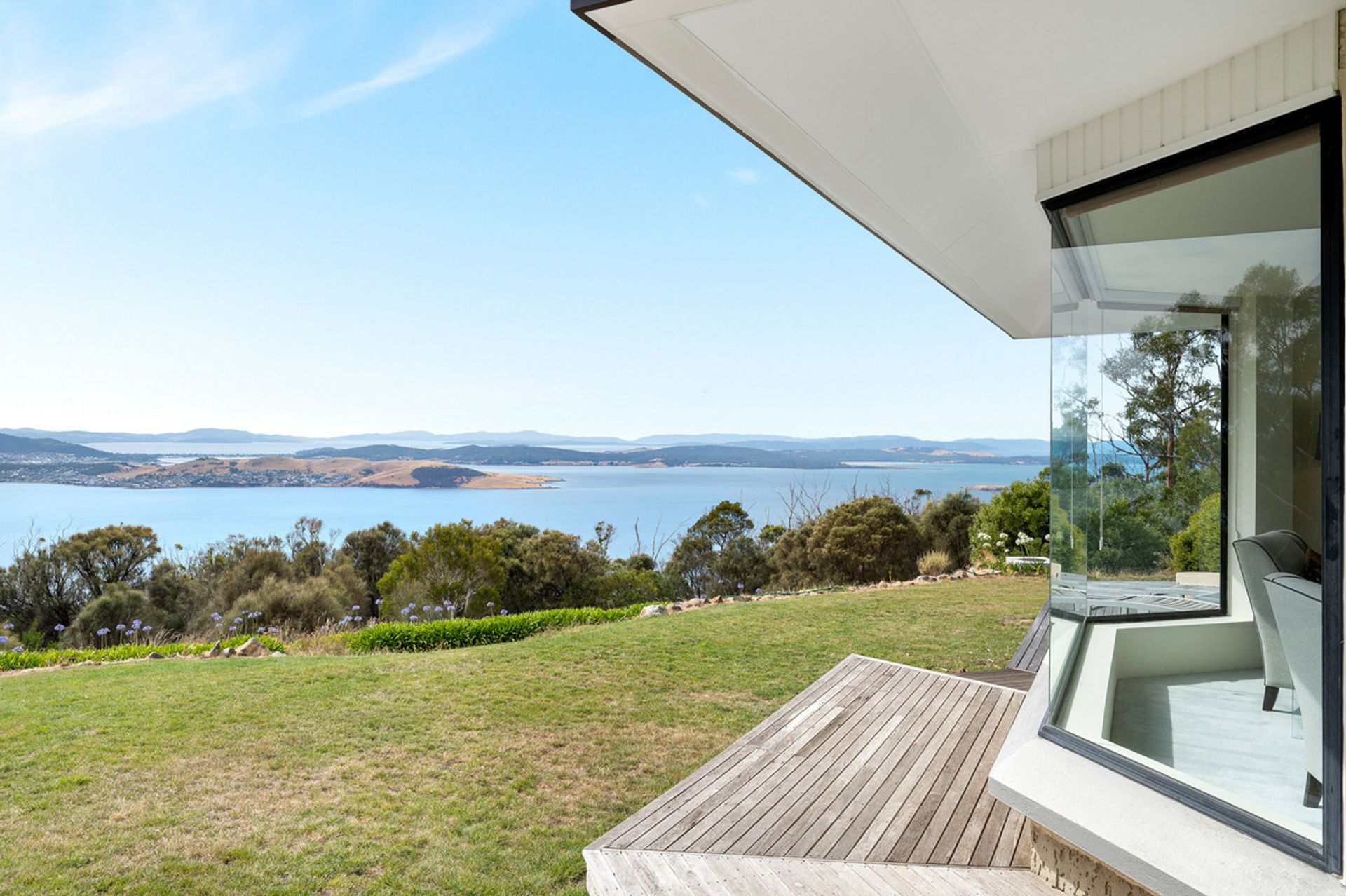 Glass sliding doors open from this area onto the expansive deck to create seamless indoor/outdoor living and a relaxing and sheltered vantage point from which to admire the breathtaking water views. Extending the living space for larger gatherings of family and friends, this deck also contains a hot tub with arguably the best view of any hot tub in Tasmania.