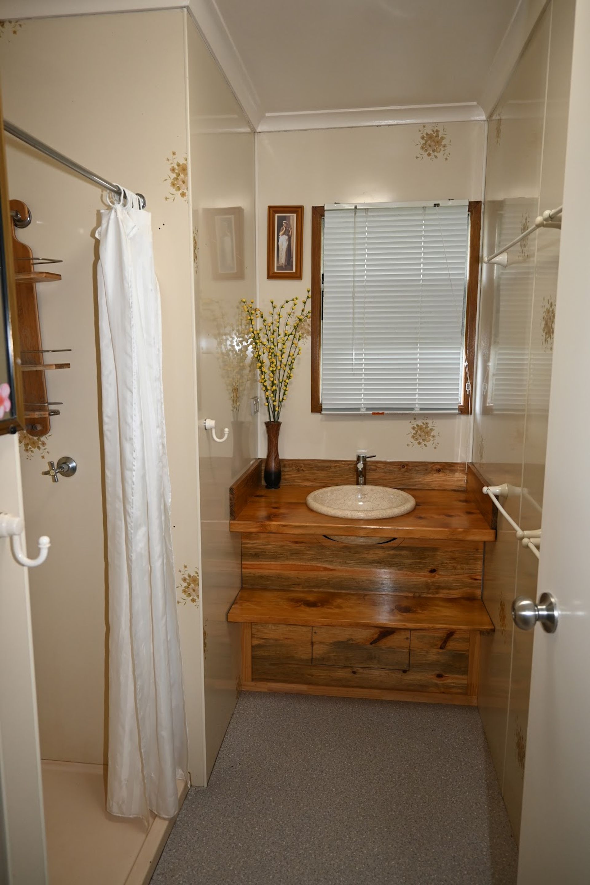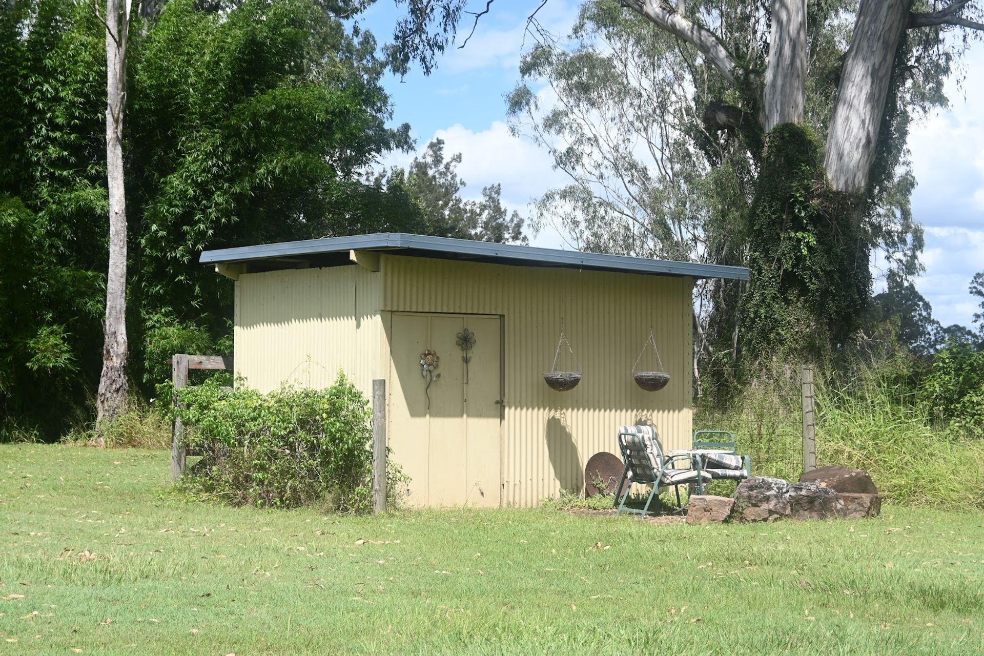 The property has 2 large water tanks, taps throughout the block for easy watering, 2 dams, dog proof fencing on three sides, a pump to the river, (permit not required) established gardens and fruit trees, 2 dams, several taps for watering and a small jetty on the river.