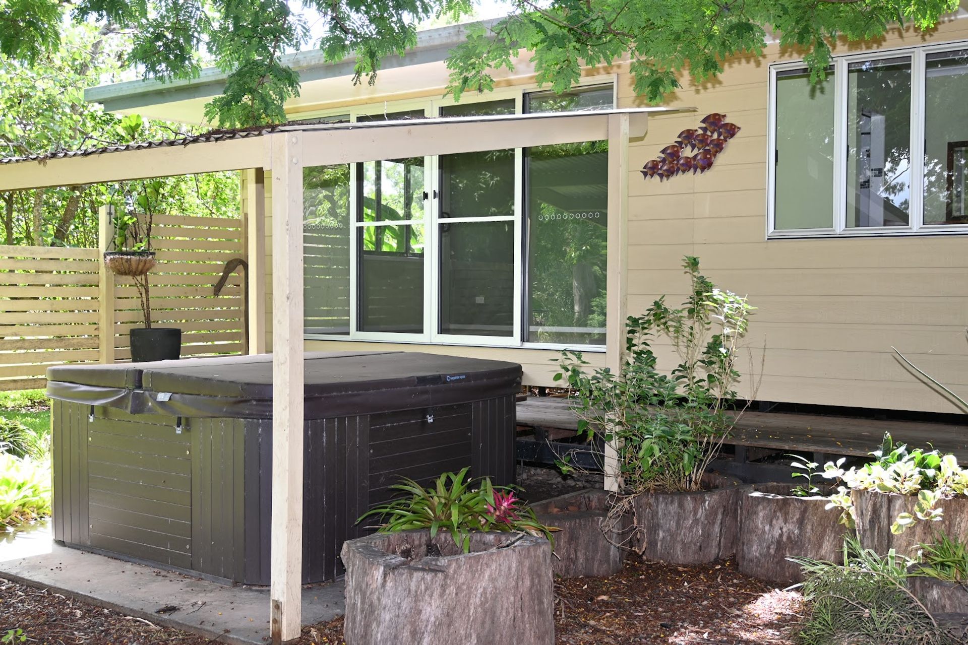 The huge outdoor entertainment deck features its own outdoor kitchen complete with stove, oven, BBQ, sink and is fully screened making entertaining friends and family easy and fun, whilst providing beautiful vistas in both directions along the Mary River. The perfect place for relaxing after a long day and watching the sunset. For more outdoor space there is also a large gazebo set amonst the gardens.