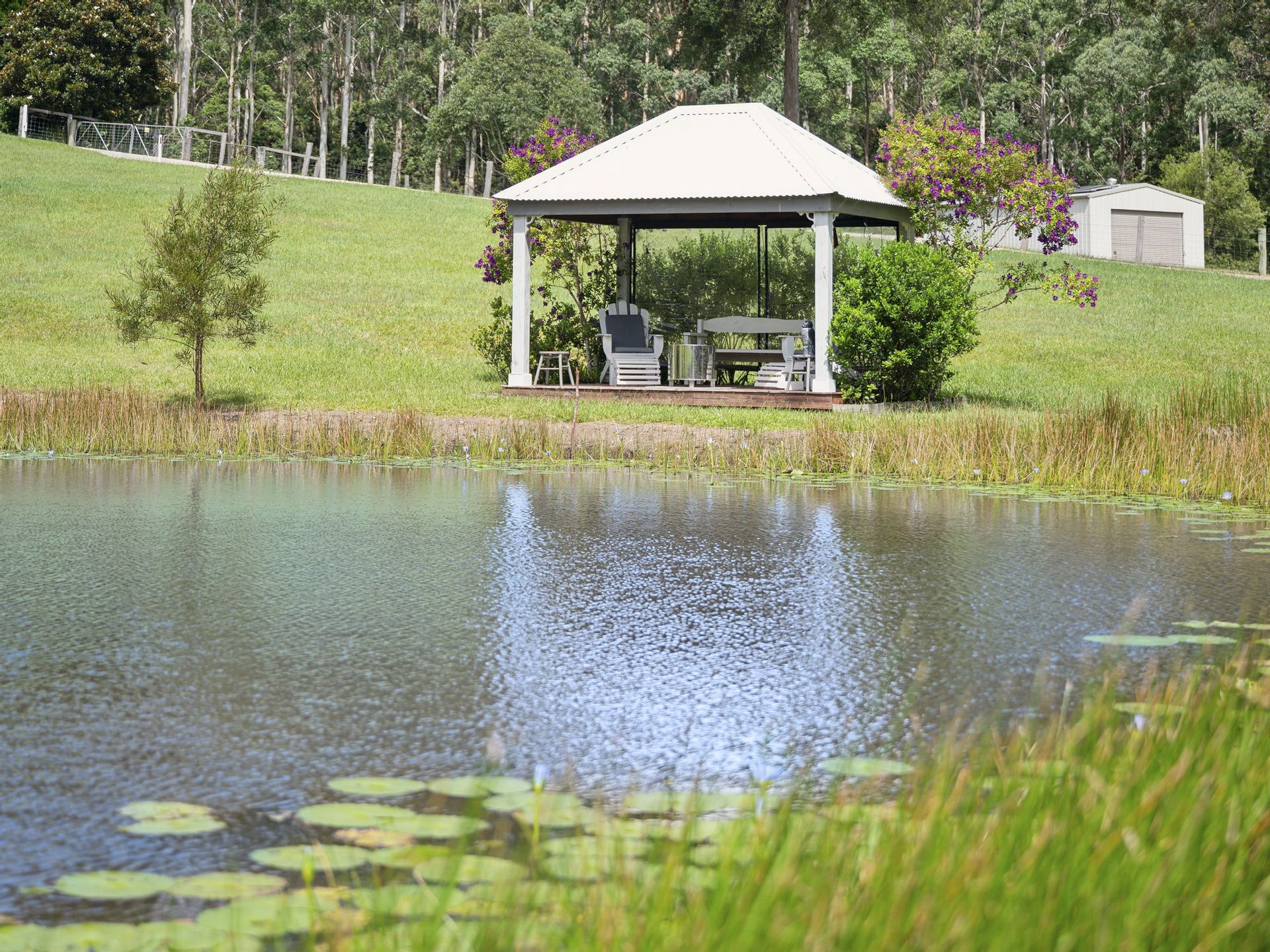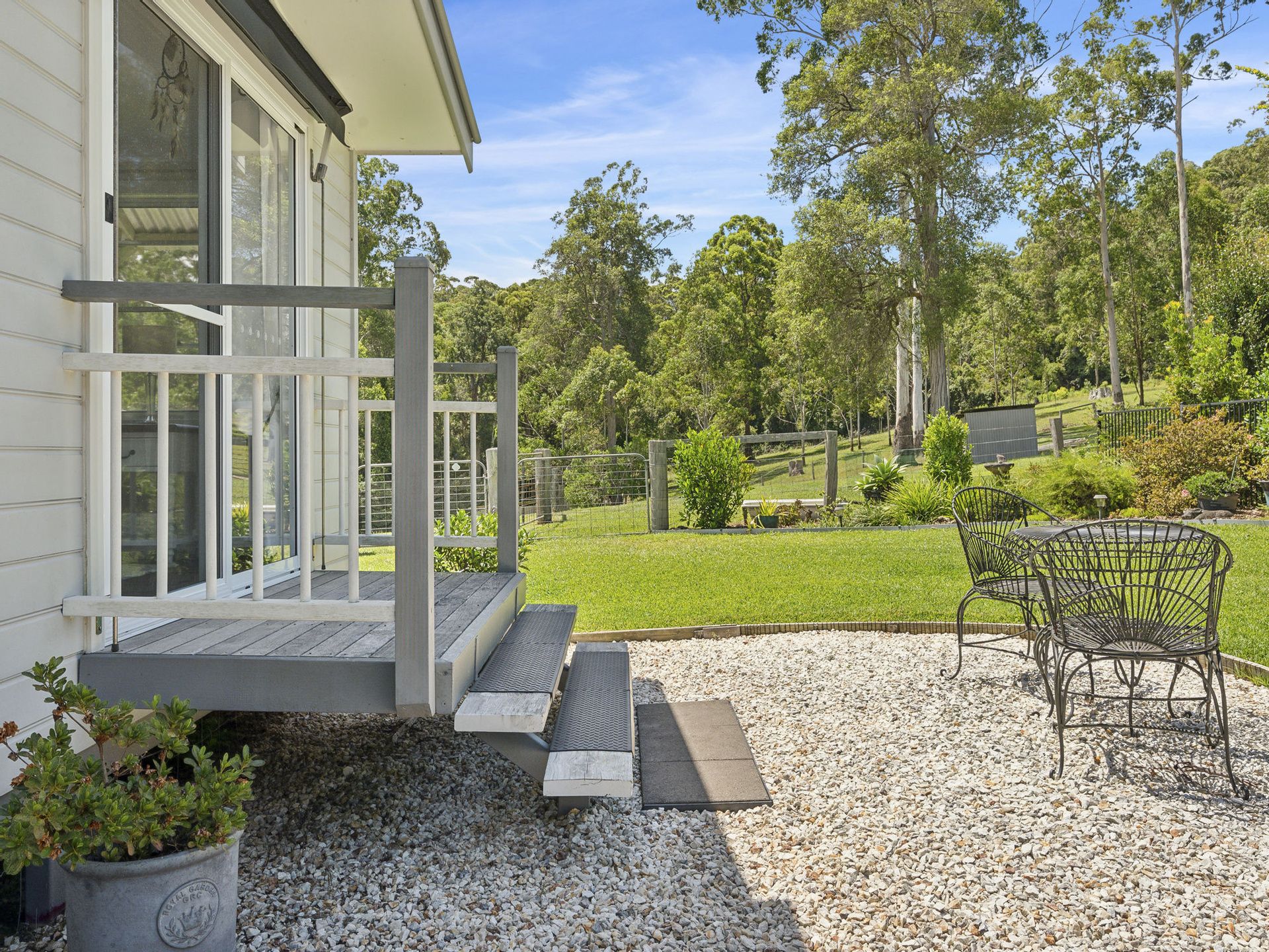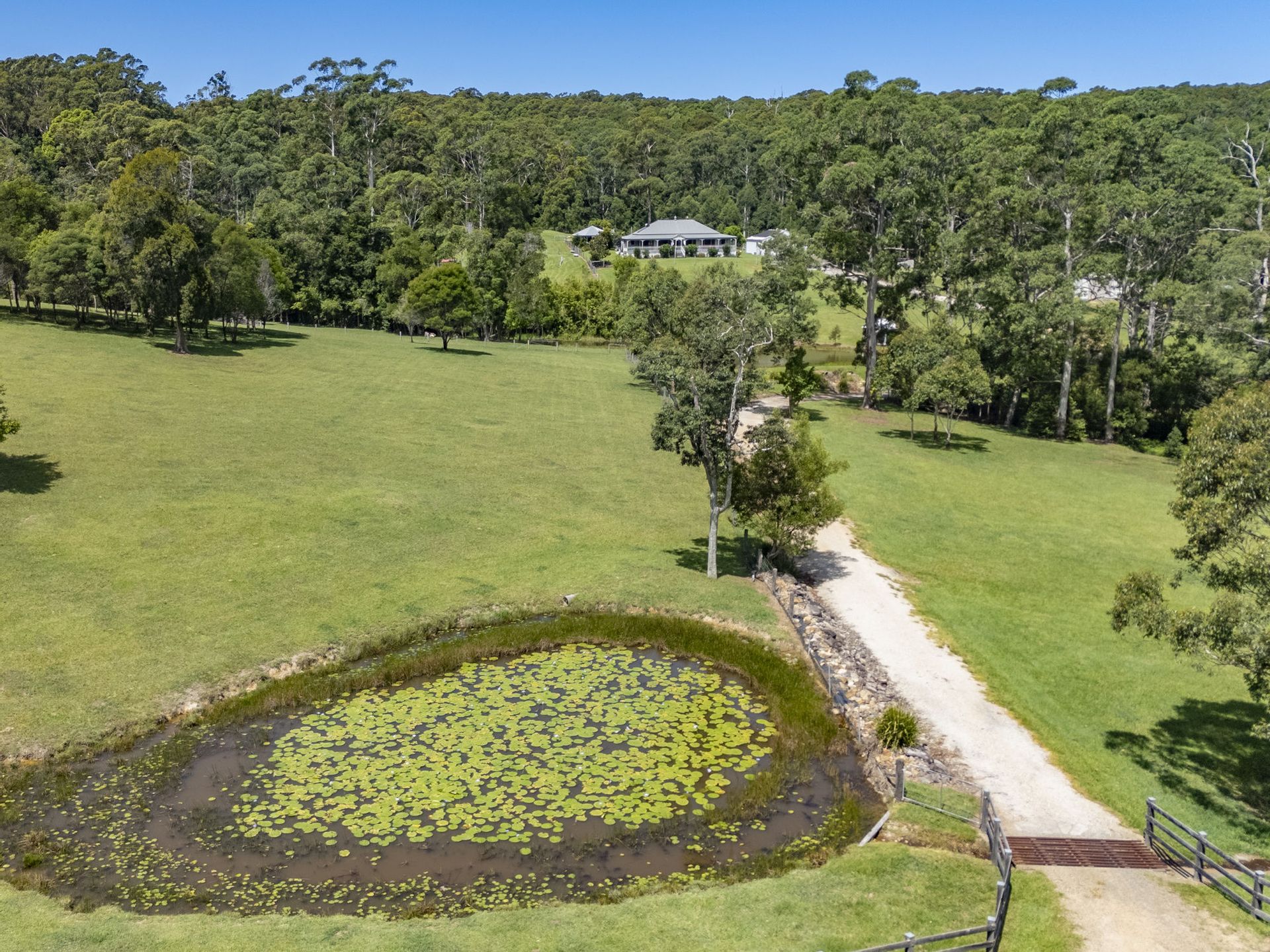 The 102.8 acres(41.6ha approx.) spreads across both sides of Mardells Road ensuring your privacy and guaranteeing no neighbours within sight ! Comprising of 70 acres(approx.) where the home sits being a combination of newly fenced, parklike, lush grazing land with 2 dams, stockyard, cattle crush & loading ramp and approx. 50 acres of native bushland with beautiful walking trails. Also conveniently placed near the home you will find a green house, plentiful orchard, raised garden beds and small cultivated veggie patch awaiting next seasons plantings. Situated on the opposite side of Mardells Road the remaining 30 acres(approx.) is found, newly fenced rich pasture improved grazing land with shady stands of trees, a long stretch of Bucca Creek frontage and boasts a 2nd set of cattle yards, crush and the 3 bay farm shed.