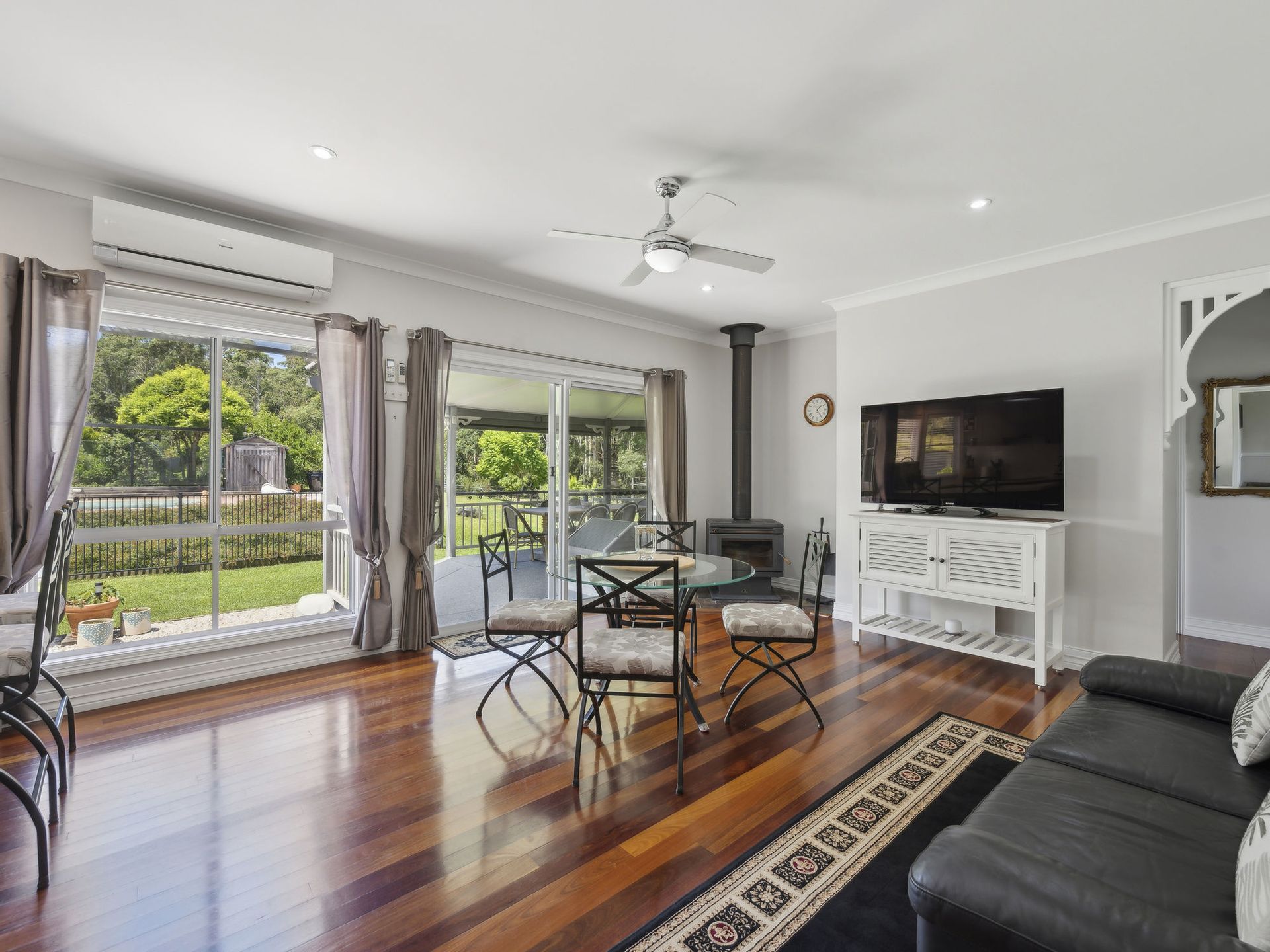 The heart of this very special home is the sensational kitchen which has been totally renovated with features that include beautiful stone benchtops, farmhouse kitchen sink, induction cooktop with Schweigen exhaust fan, full kitchen of under bench easy close draws, extra cupboards & pantry space and 2 draw dishwasher. Off the kitchen is a sunny breakfast/family room with ceiling fan, air-con and cosy wood fire, the ideal place for a morning coffee and contemplate the day a head or the hub for the busy family on the go.