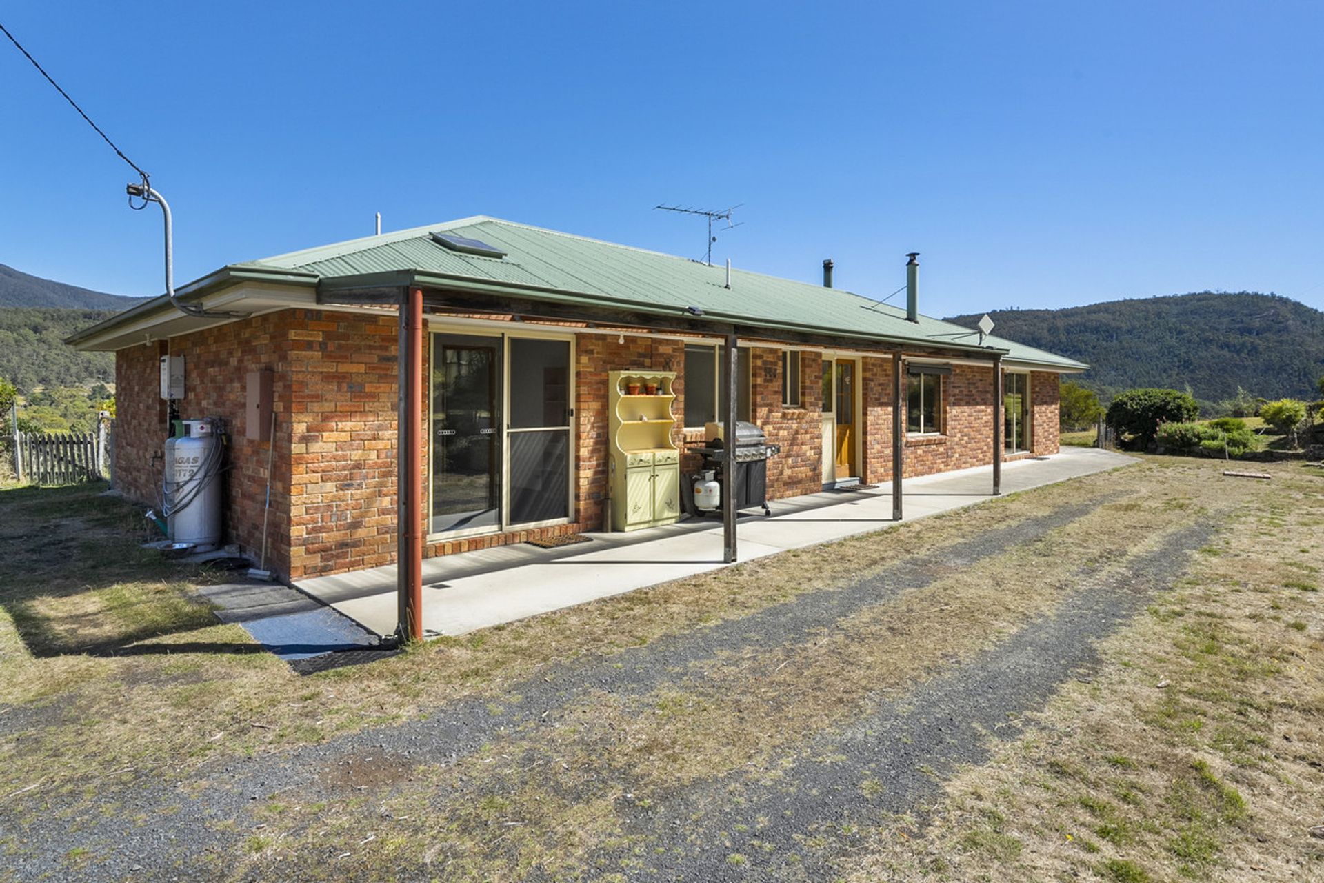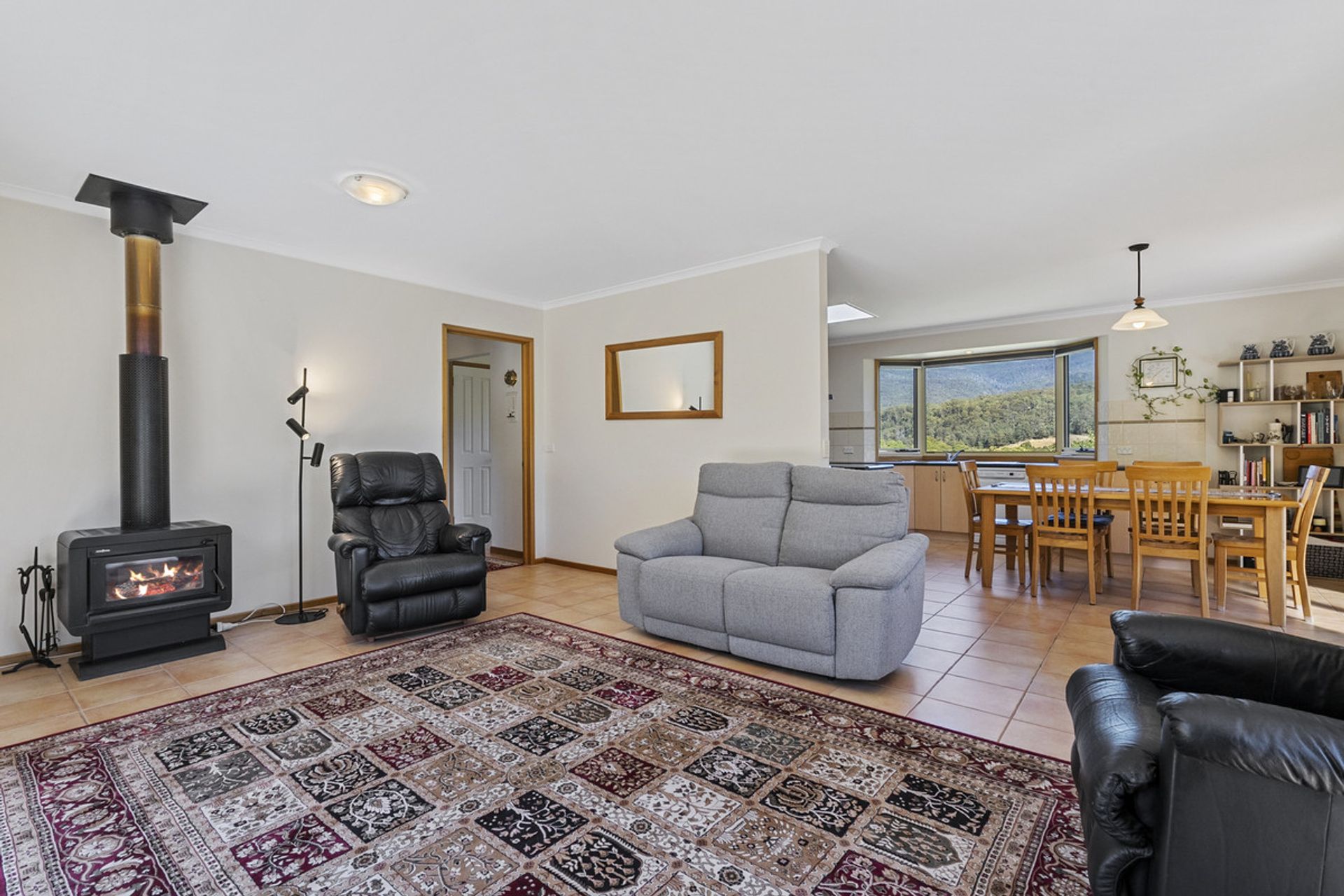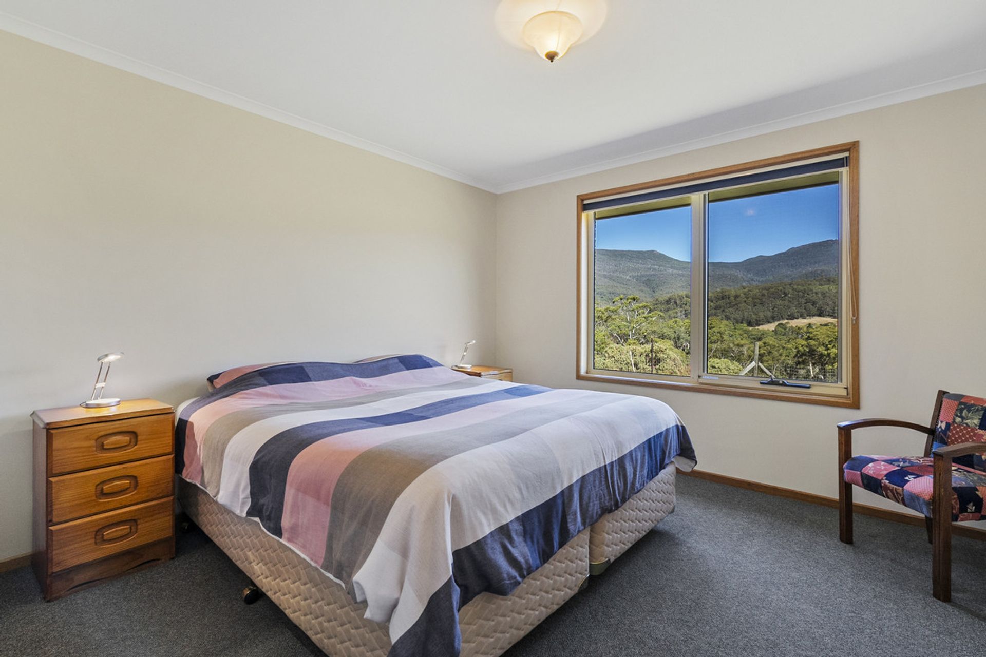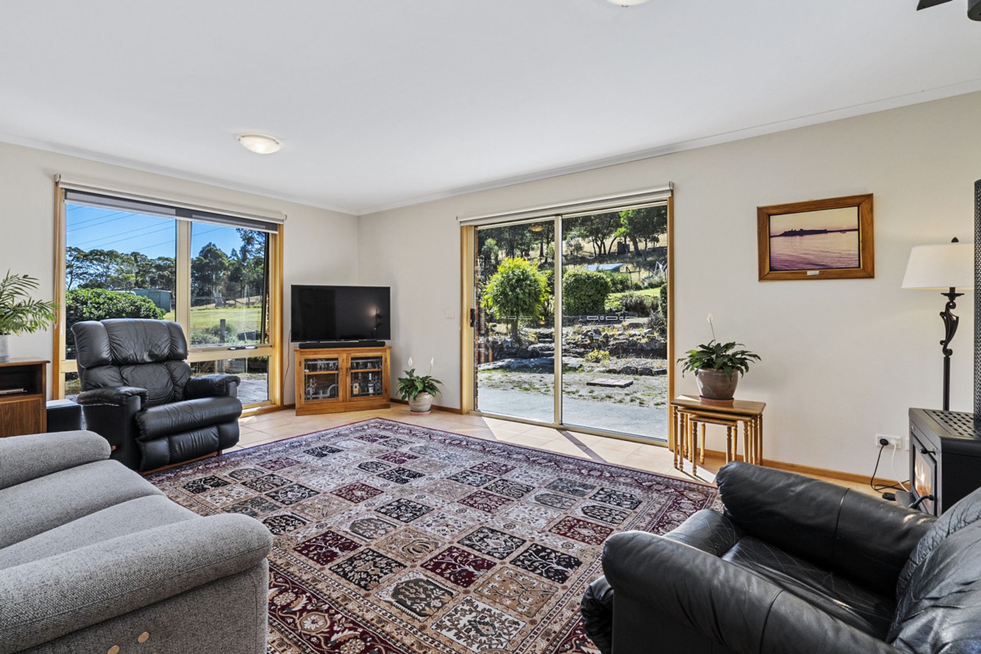 Built in 2002, the main residence has been thoughtfully designed to maximize natural light through expansive windows that also frame breathtaking views. The generous living area seamlessly flows into the dining and kitchen space, where a Stanley wood-fired stove with wet back hot water adds warmth and character and energy efficiency. The home features three well-proportioned bedrooms, while the family bathroom includes both a separate shower and bathtub for added convenience.