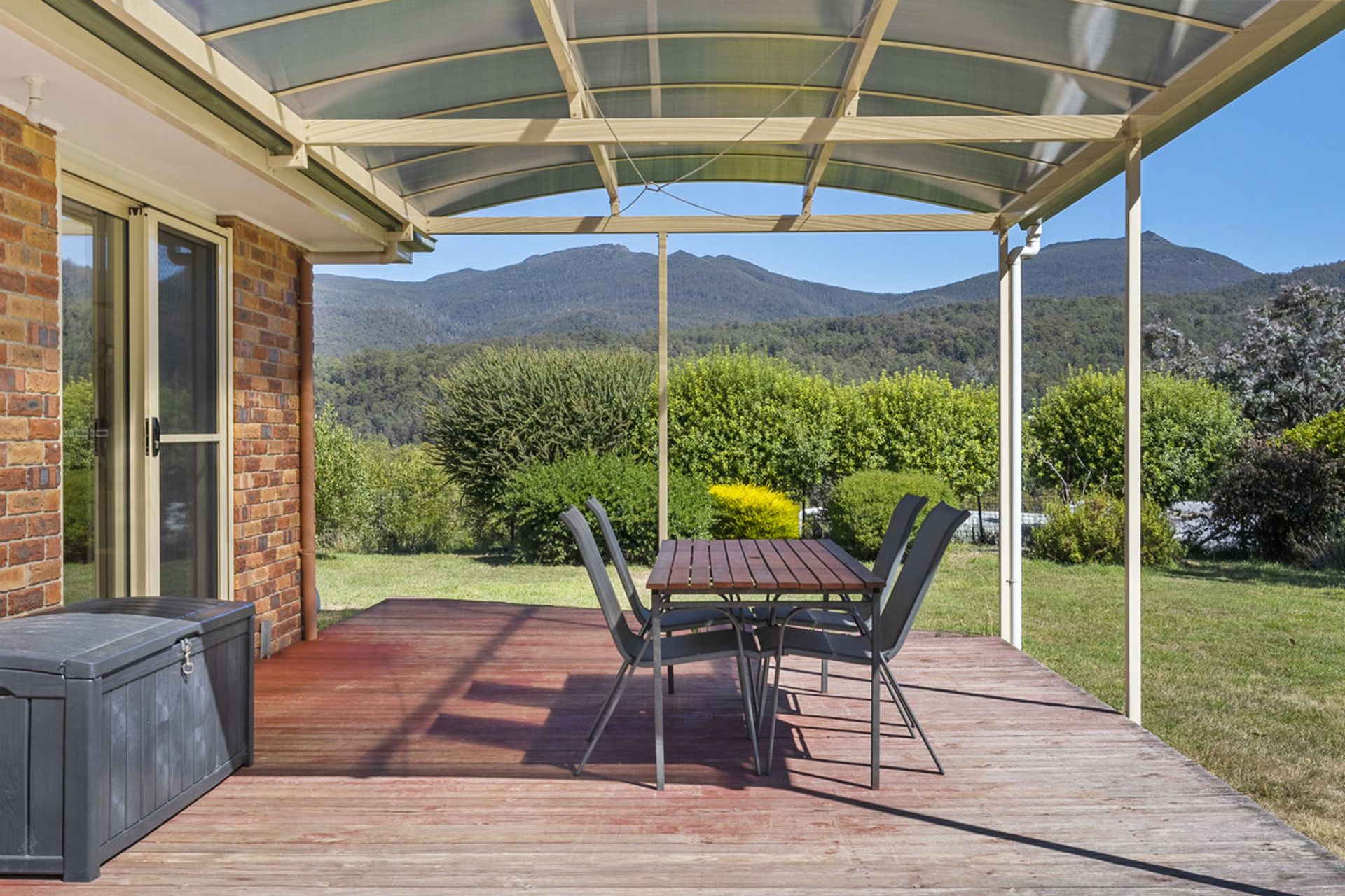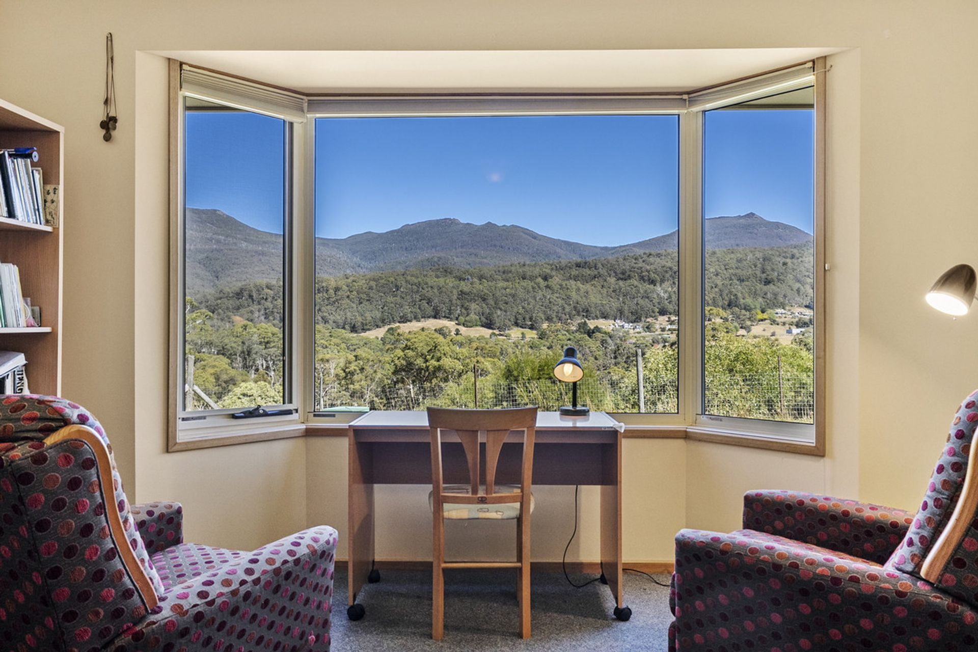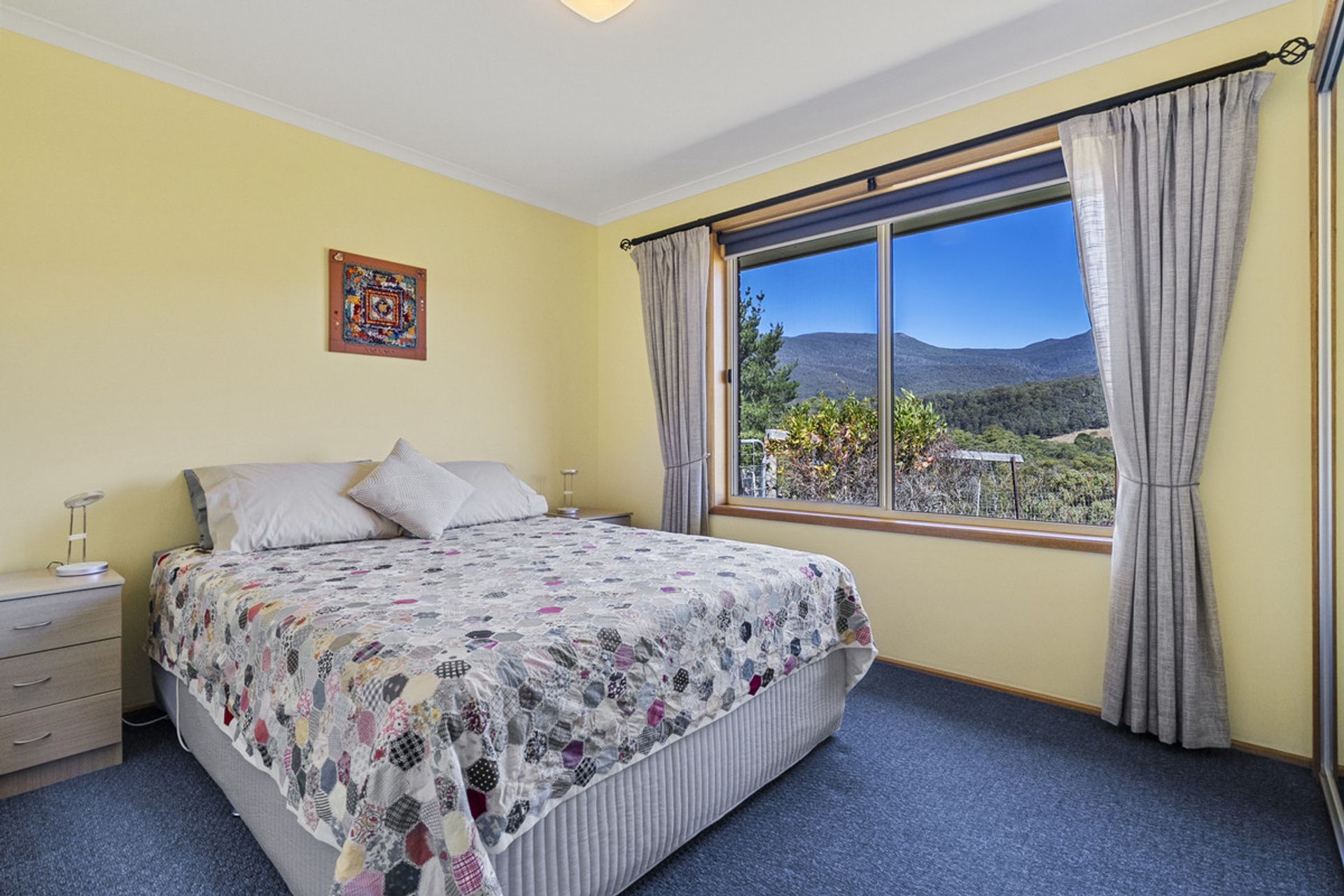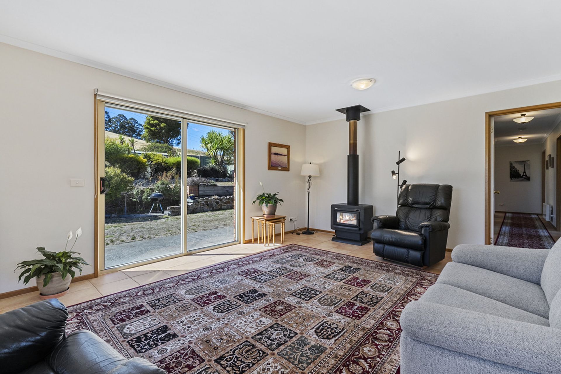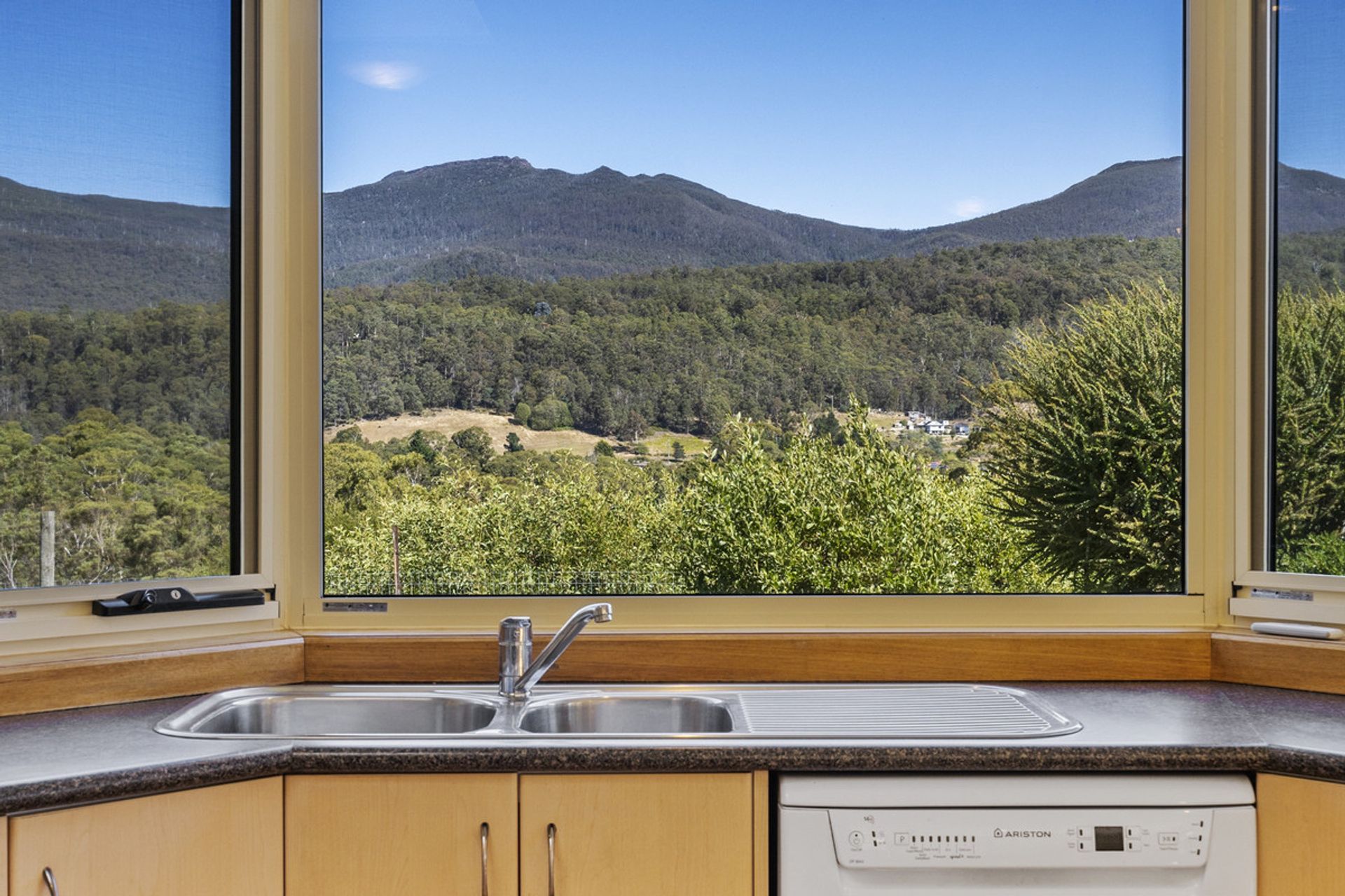 Built in 2002, the main residence has been thoughtfully designed to maximize natural light through expansive windows that also frame breathtaking views. The generous living area seamlessly flows into the dining and kitchen space, where a Stanley wood-fired stove with wet back hot water adds warmth and character and energy efficiency. The home features three well-proportioned bedrooms, while the family bathroom includes both a separate shower and bathtub for added convenience.