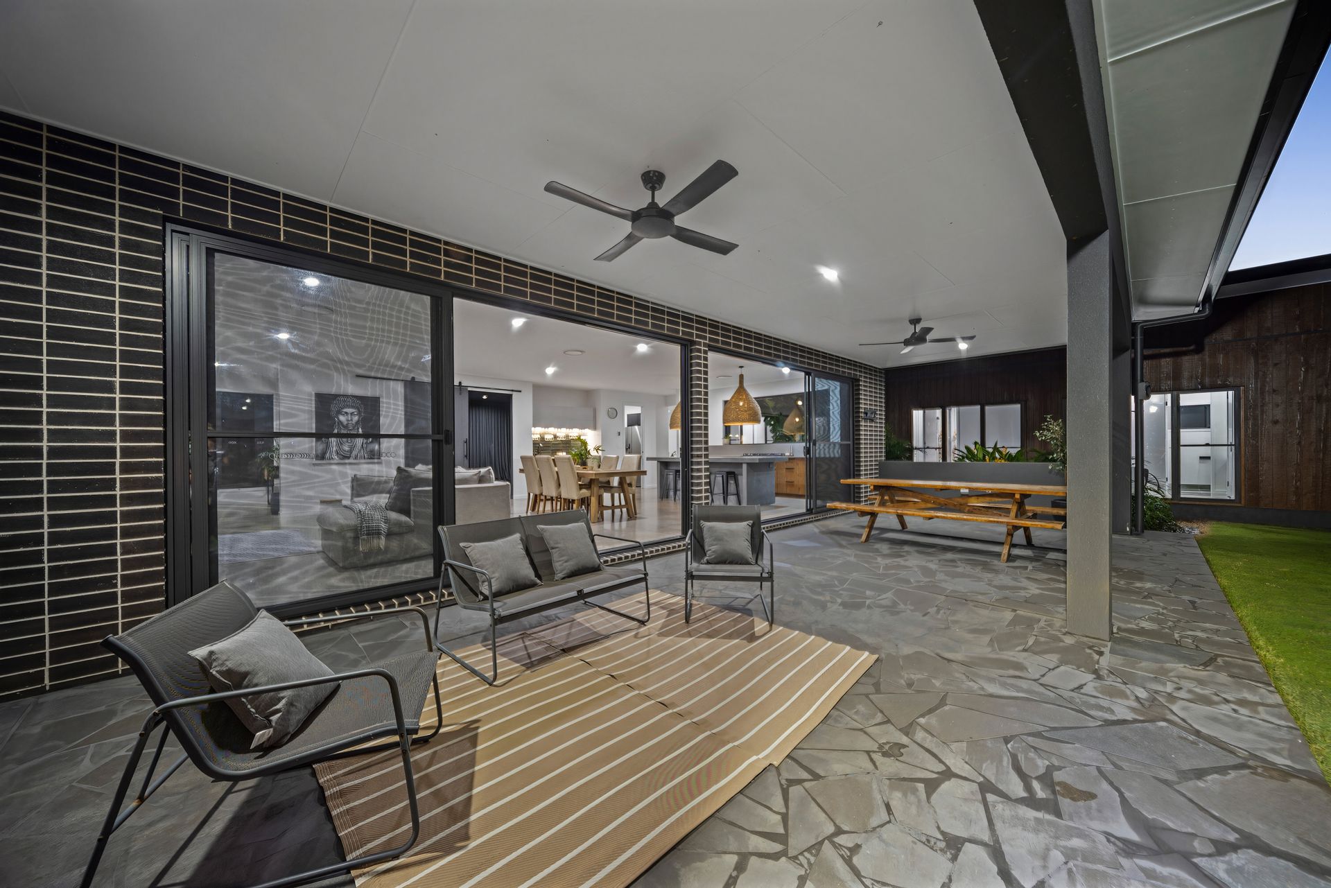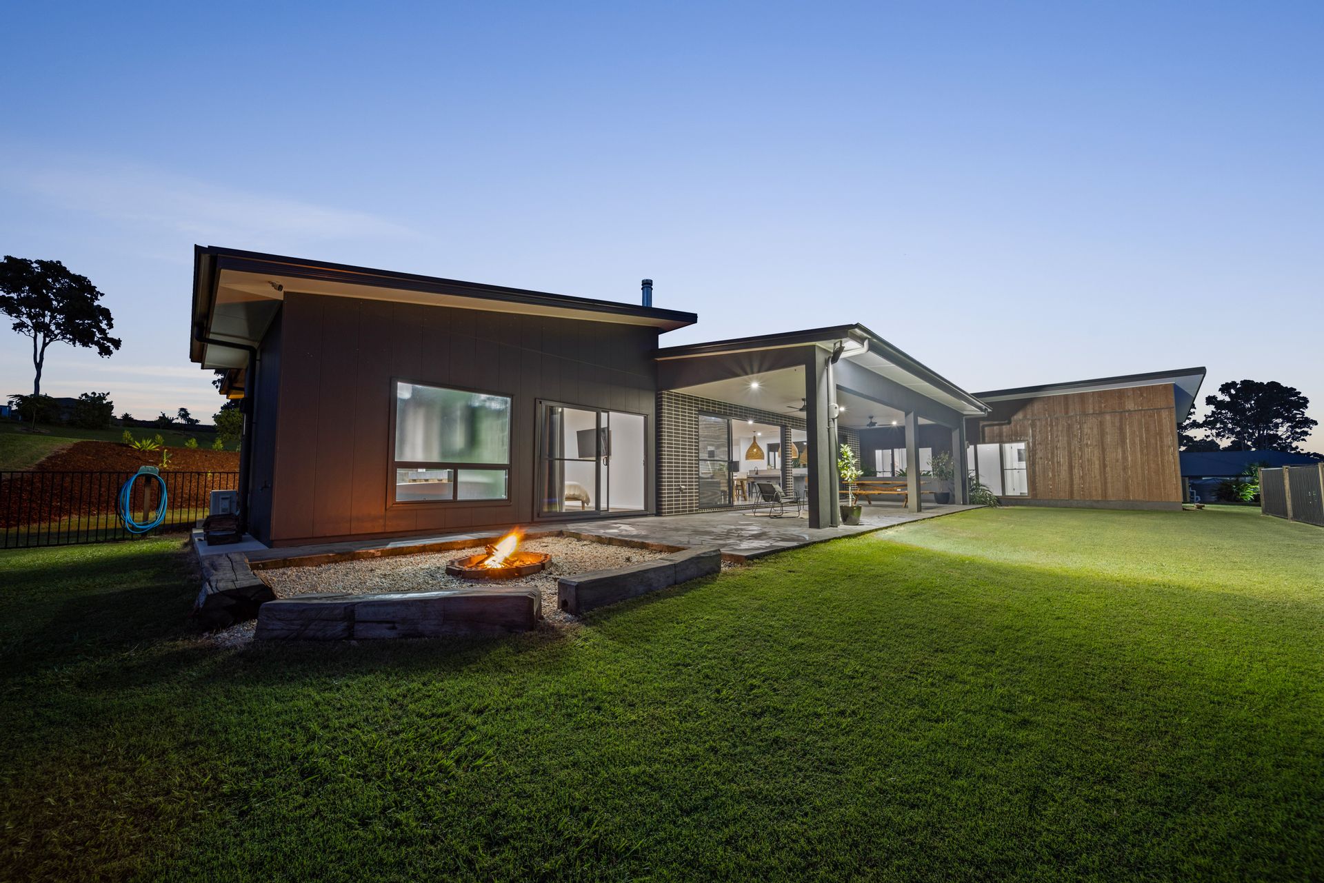 Framed by vistas of the borrowed landscape and adorned with a rich interplay of textures and tones, the residence unfolds beyond a bold linear exterior, revealing interiors graced with seamless indoor and outdoor design, meticulous stone finishes, timber accents, and more.