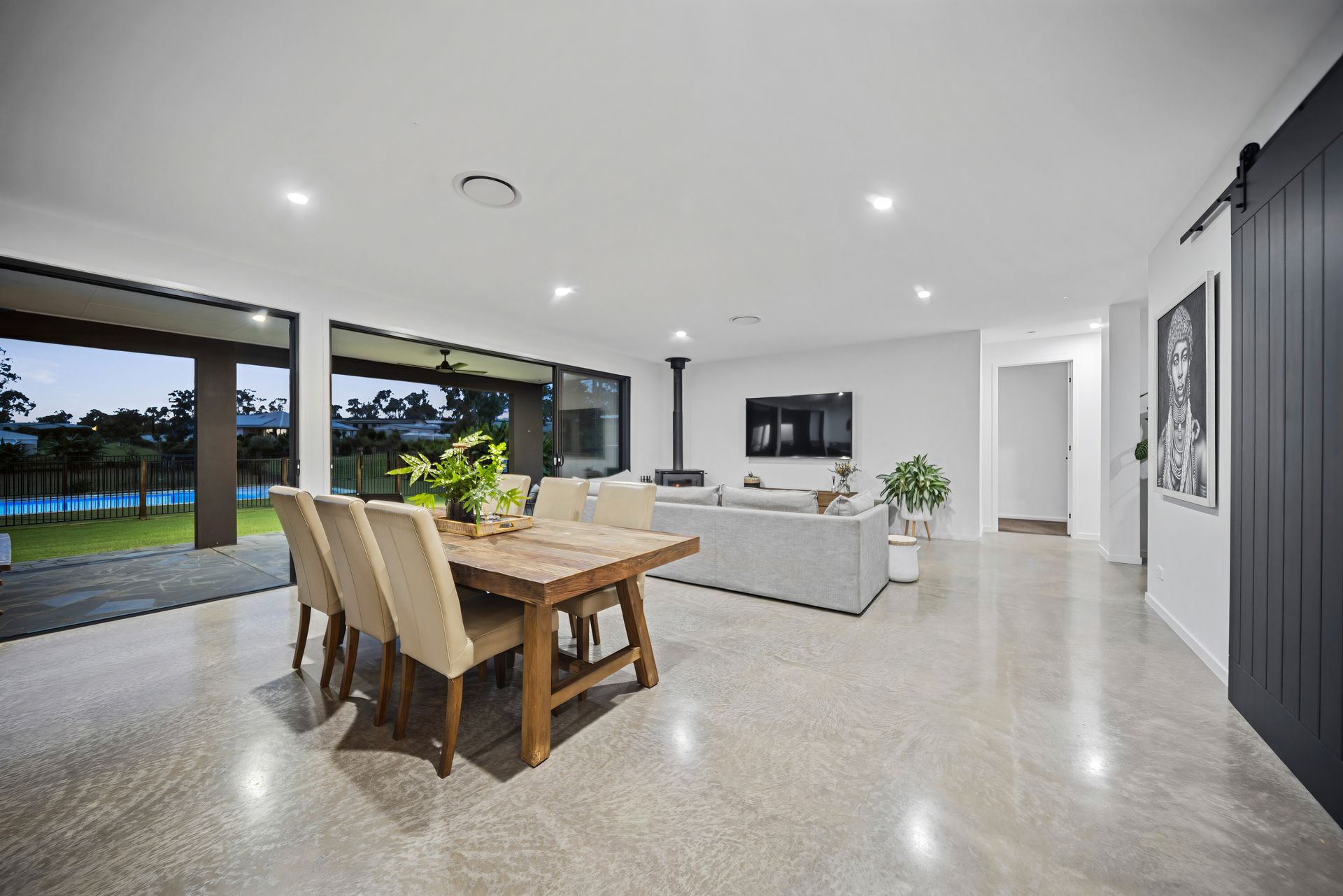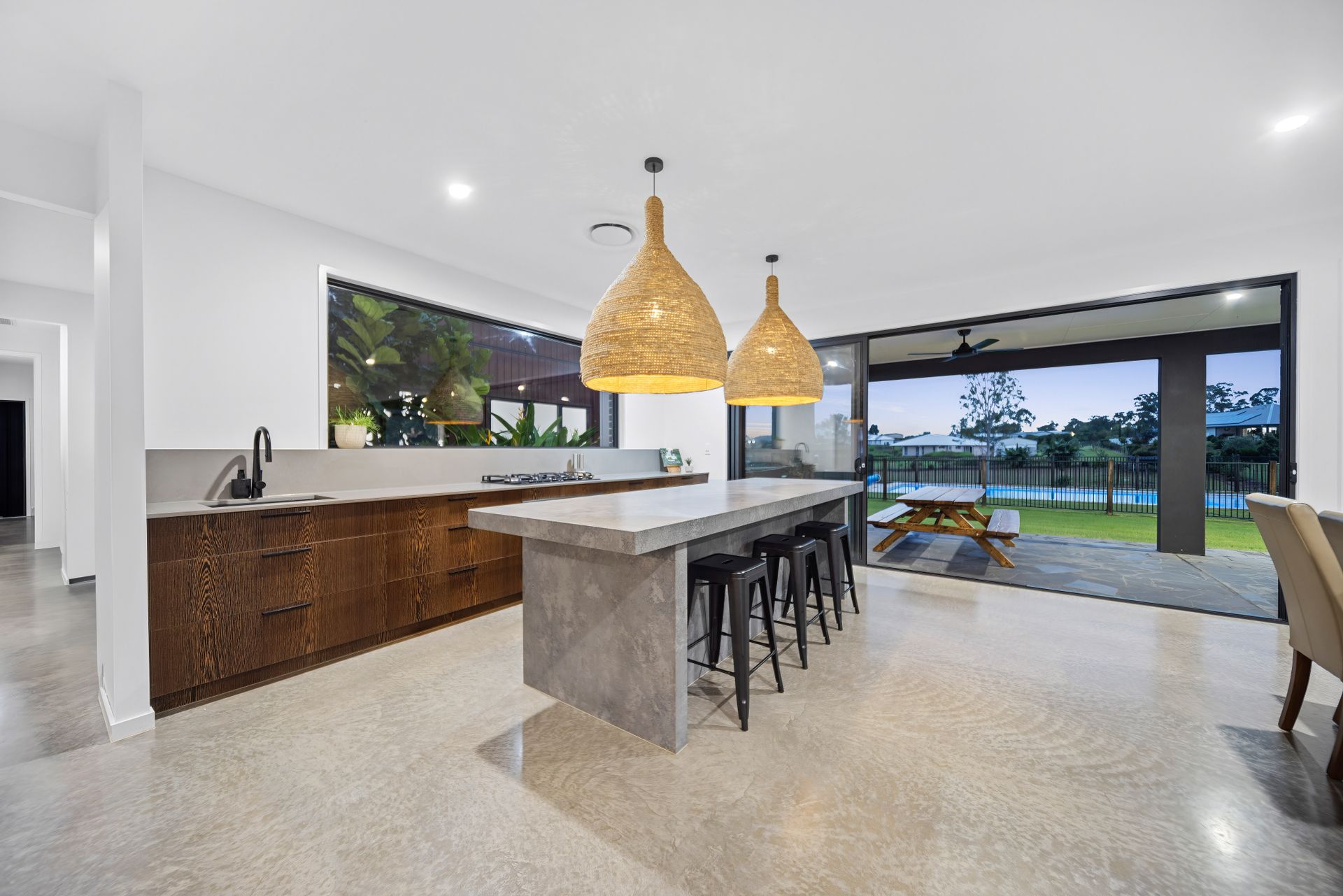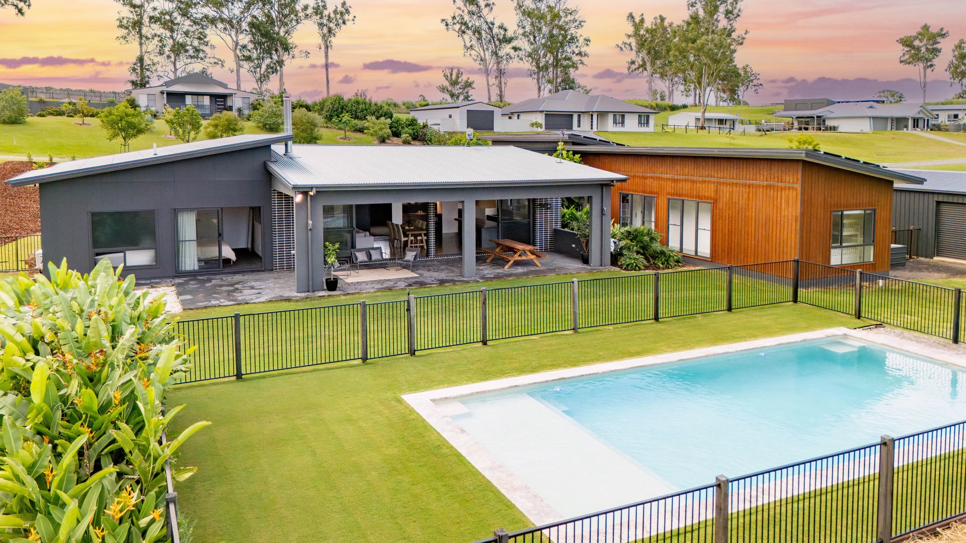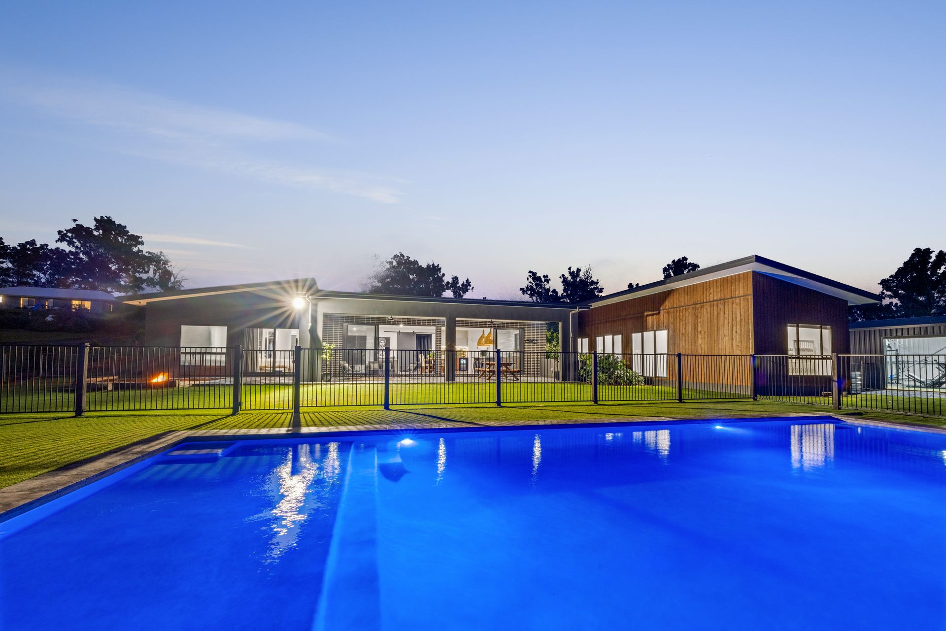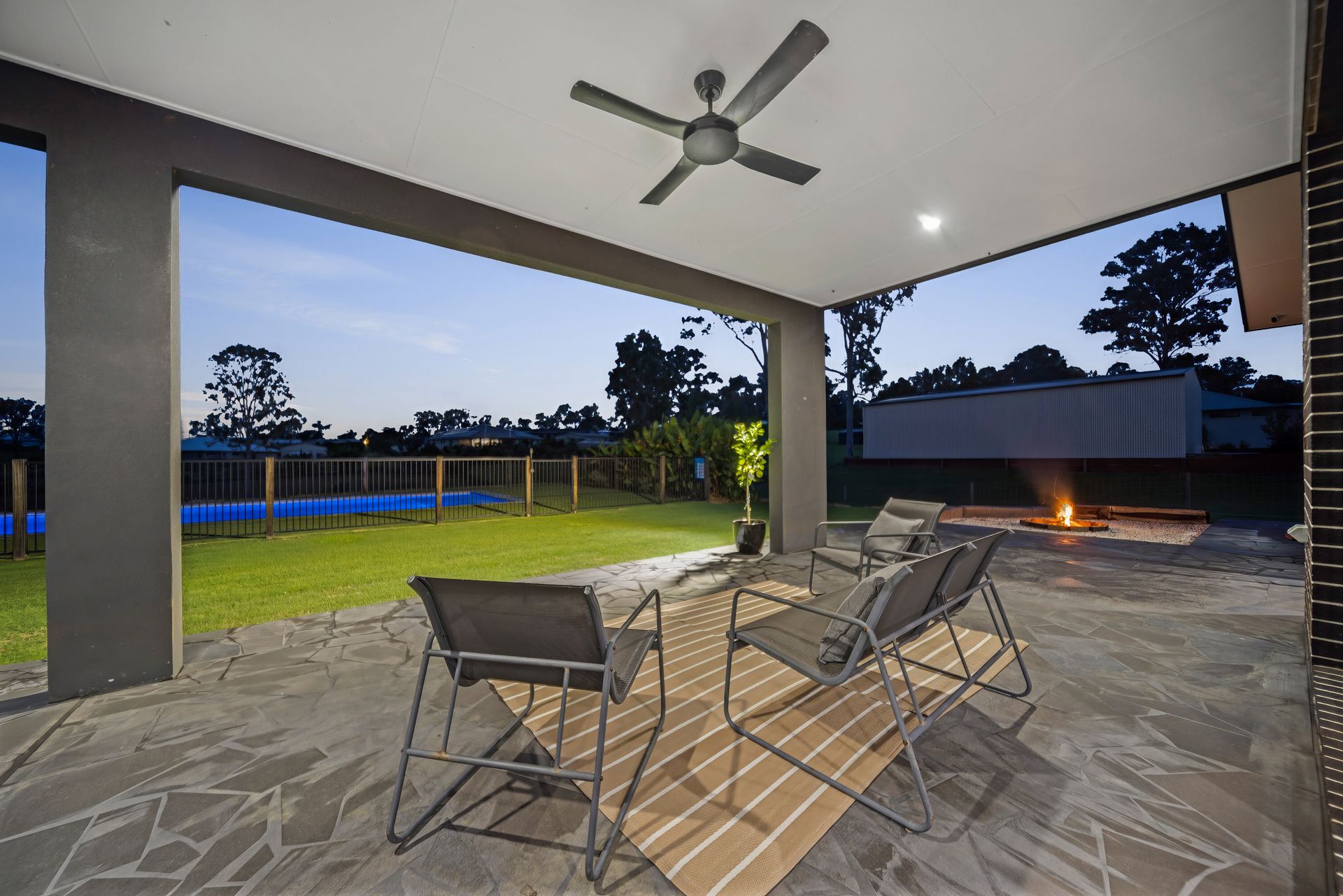 Embracing a blissful backdrop, the exterior setting forms a serene landscape, gazing over the 11m x 5m inviting pool, heated year-round by a 30kW pool heater that also cools through summer. The fully fenced yard captures refreshing south-easterly breezes, providing an idyllic environment for relaxation. Additional outdoor features include a vast 22m x 6m shed complete with three-phase power, lighting, and heating, offering ample storage and workspace.