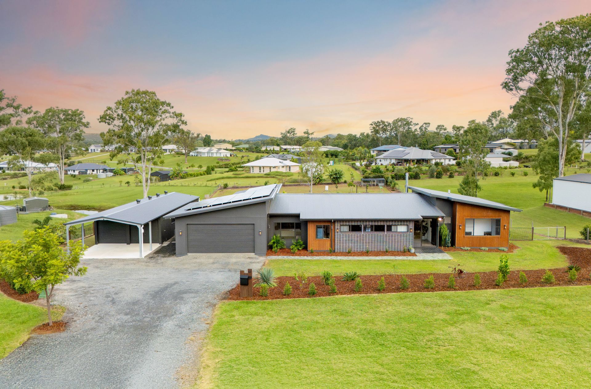 A home of unparalleled comfort, it boasts ducted air conditioning and heating throughout nine zones, two zoned temperature-controlled instant hot water systems, complemented by ceiling fans in every room. High ceilings and abundant natural light enhance the sense of space, while a 105,000L water tank ensures sustainable living. The property also features two garden sheds, a secure chook pen, a state-of-the-art hardwired security system, and an impressive 19.6kW solar system, promoting efficiency and cost-effectiveness.