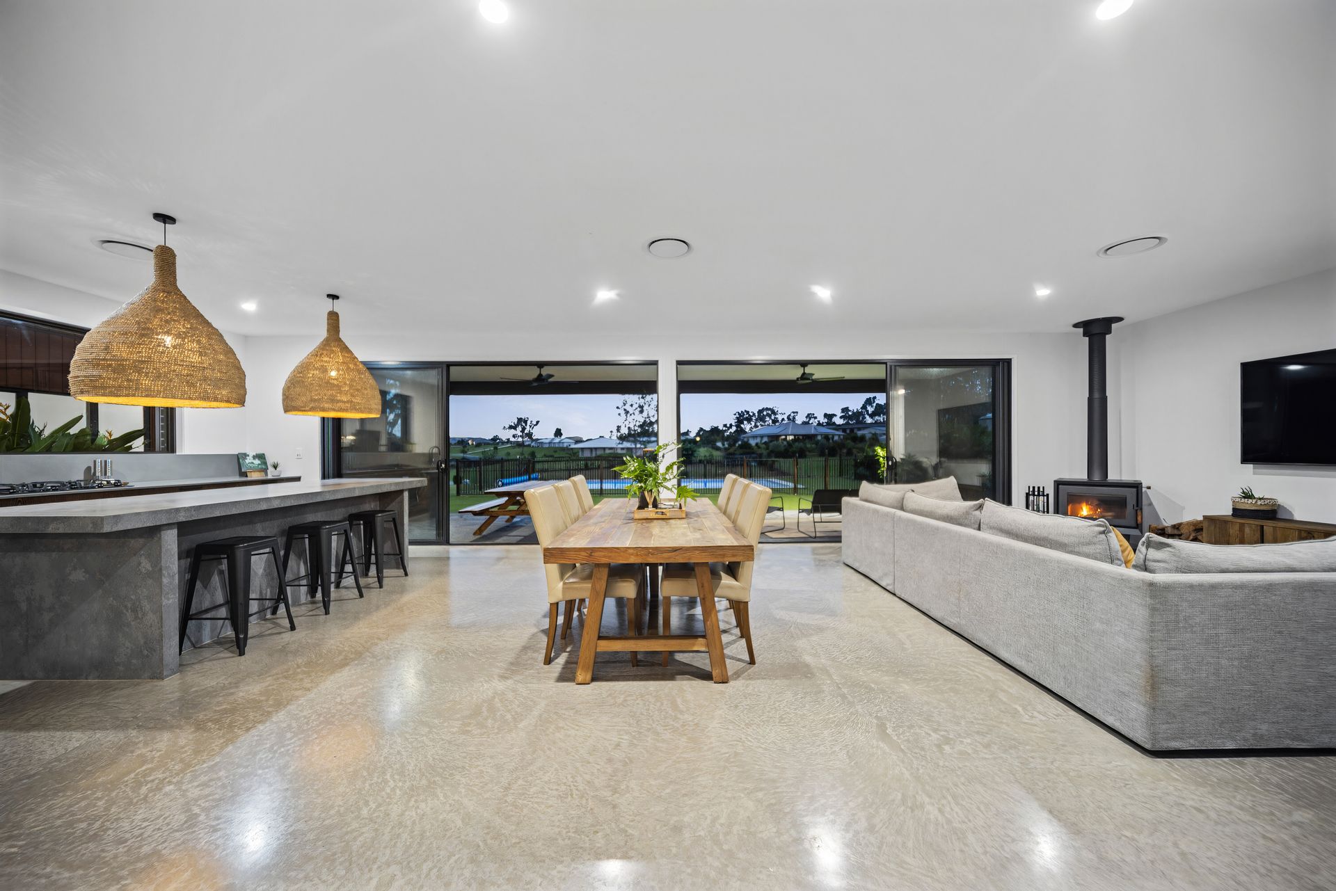 The charismatic ambience transitions across the floor plan, seamlessly servicing family living, enviable entertaining, and alfresco relaxation. The expansive lounge and dining area, warmed by a wood-burning fireplace, flows effortlessly into the gourmet kitchen and outdoors to the awaiting alfresco terrace. This culinary haven features a premium 900mm gas stove, gas hot water, and an expansive butler's kitchen, ensuring effortless meal preparation and entertaining. A dedicated bar further enhances the experience, making this home an entertainer's dream.