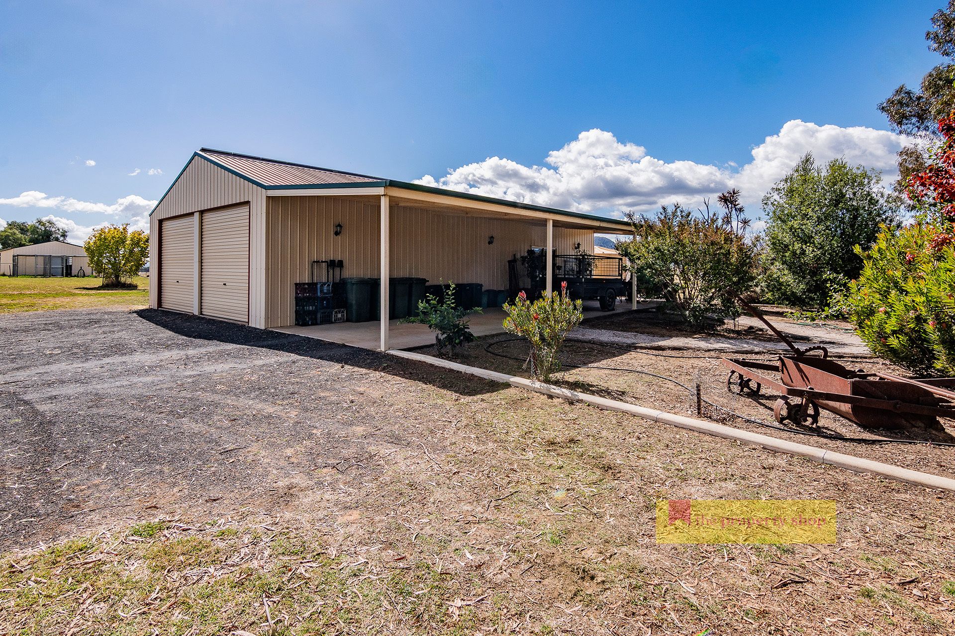 - 15mx8m shed, with concrete floor, ceiling fans, single phase power & solar power connected. With an additional 15mx4m awning attached for an additional 2 car spaces.