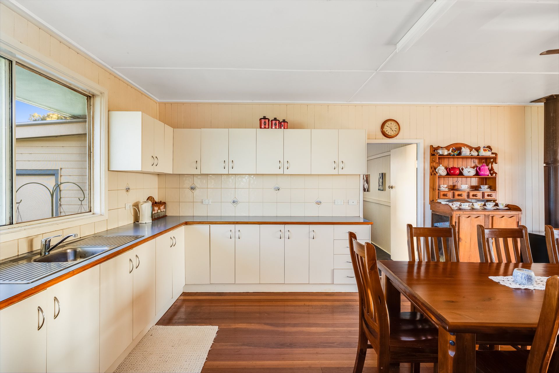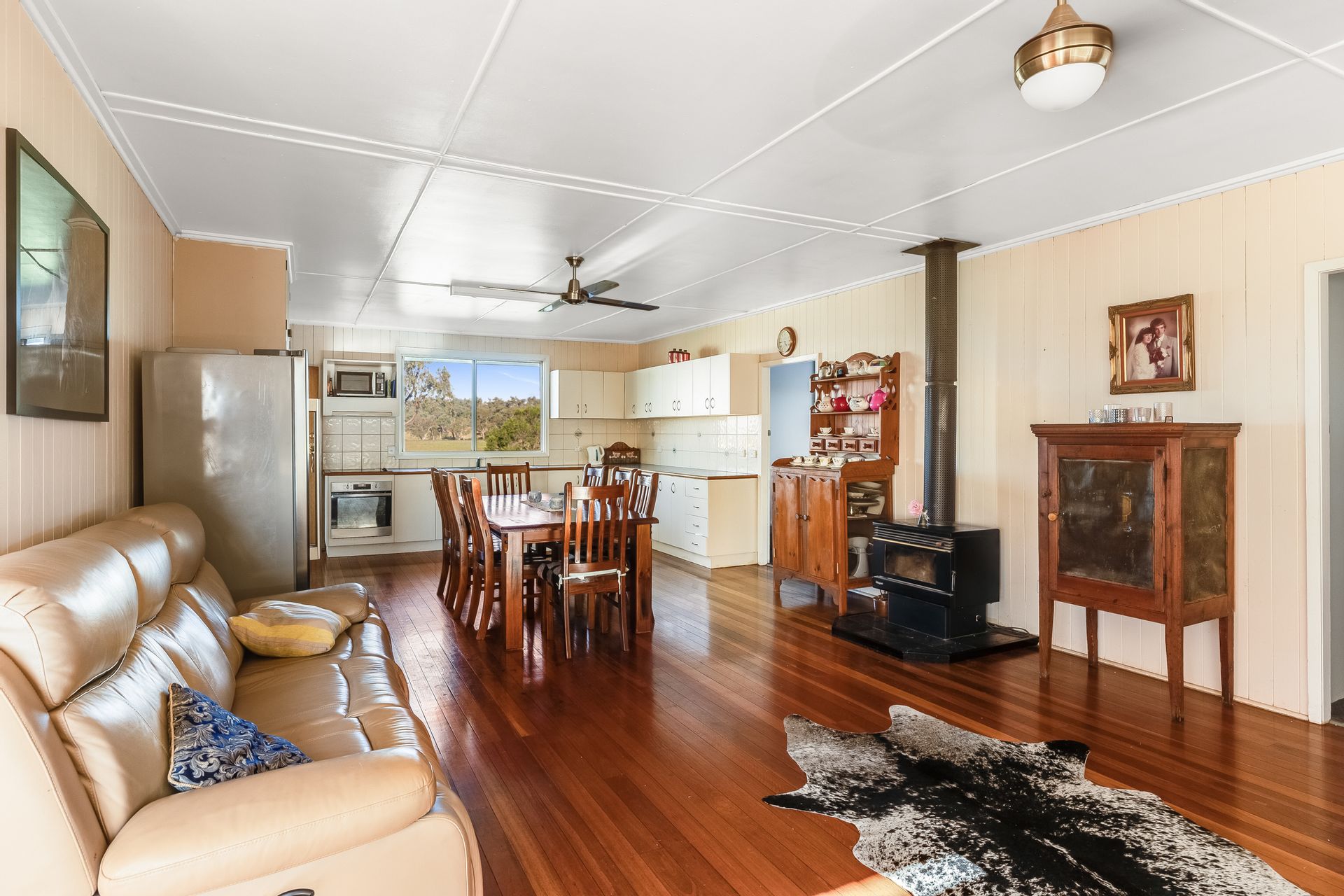 • Open kitchen/living with polished timber floors