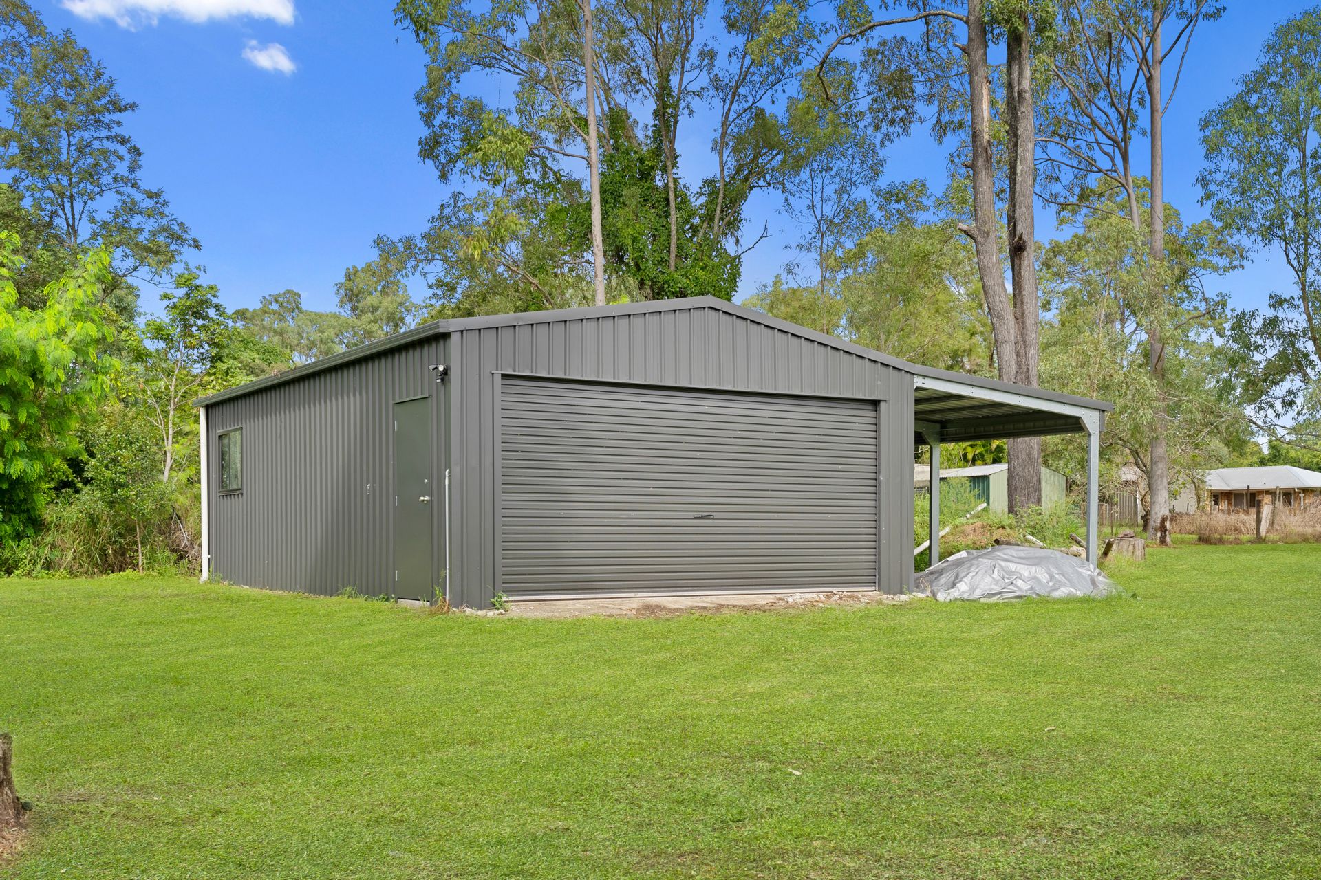 | 5 car accomodation in total, Powered 2 bay shed, under-roof carport + 2 car carport