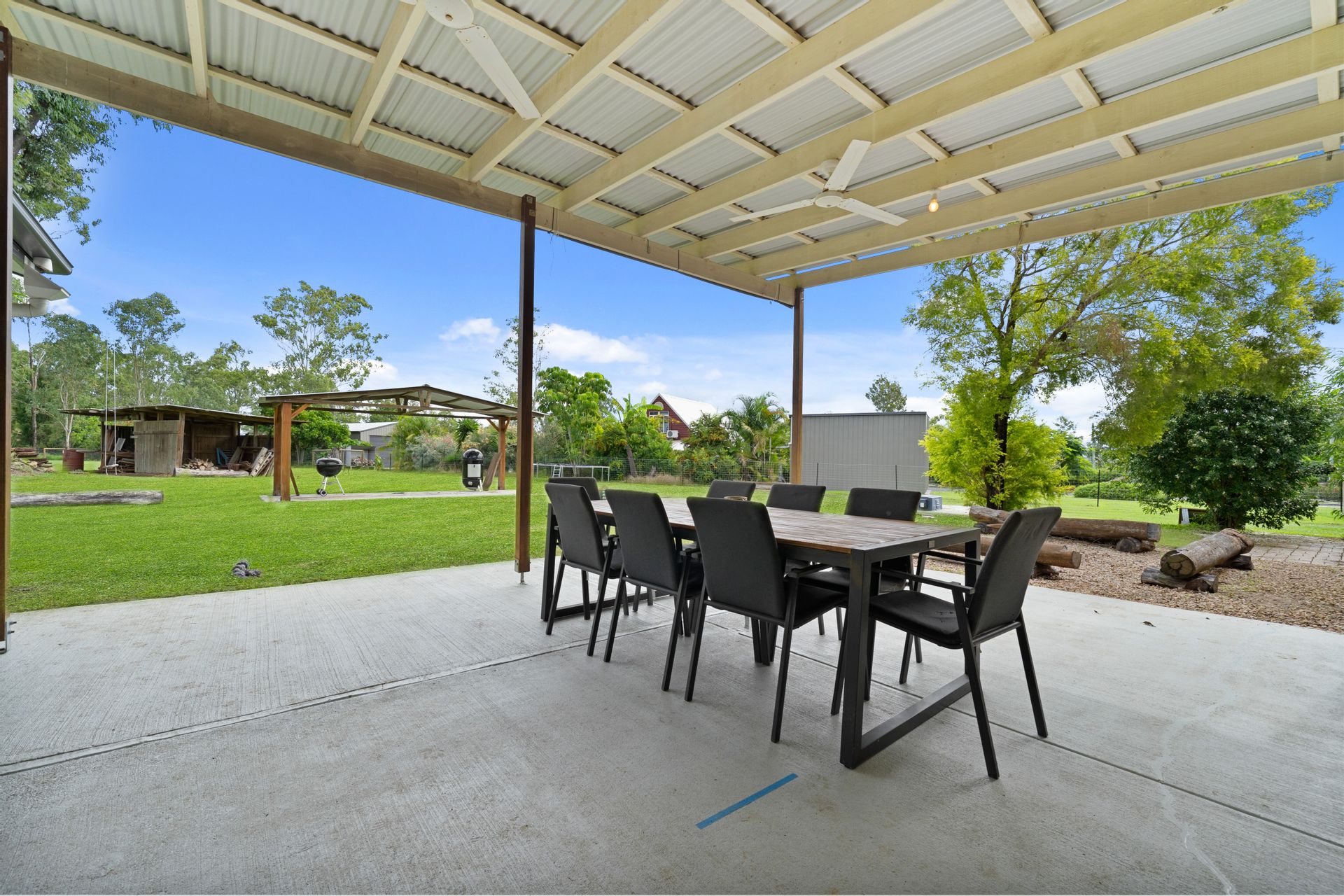 | A generous alfresco area, opening up from the kitchen and dining perfect for entertaining or enjoying the peaceful rural setting