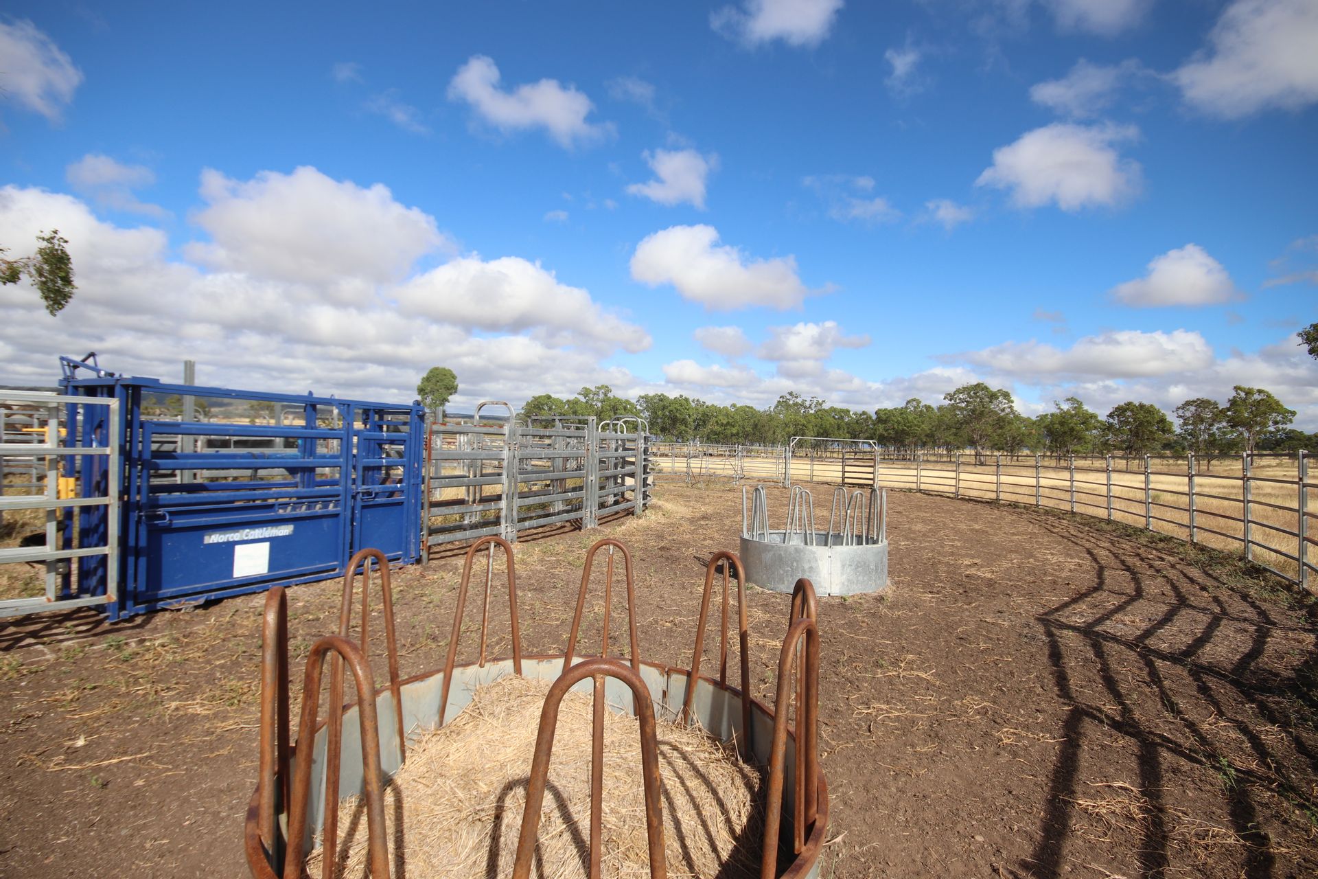 • Cable & steel panel cattle yards with single cattle ramp, round handling yard & Bud box forcing pen with a circular crush