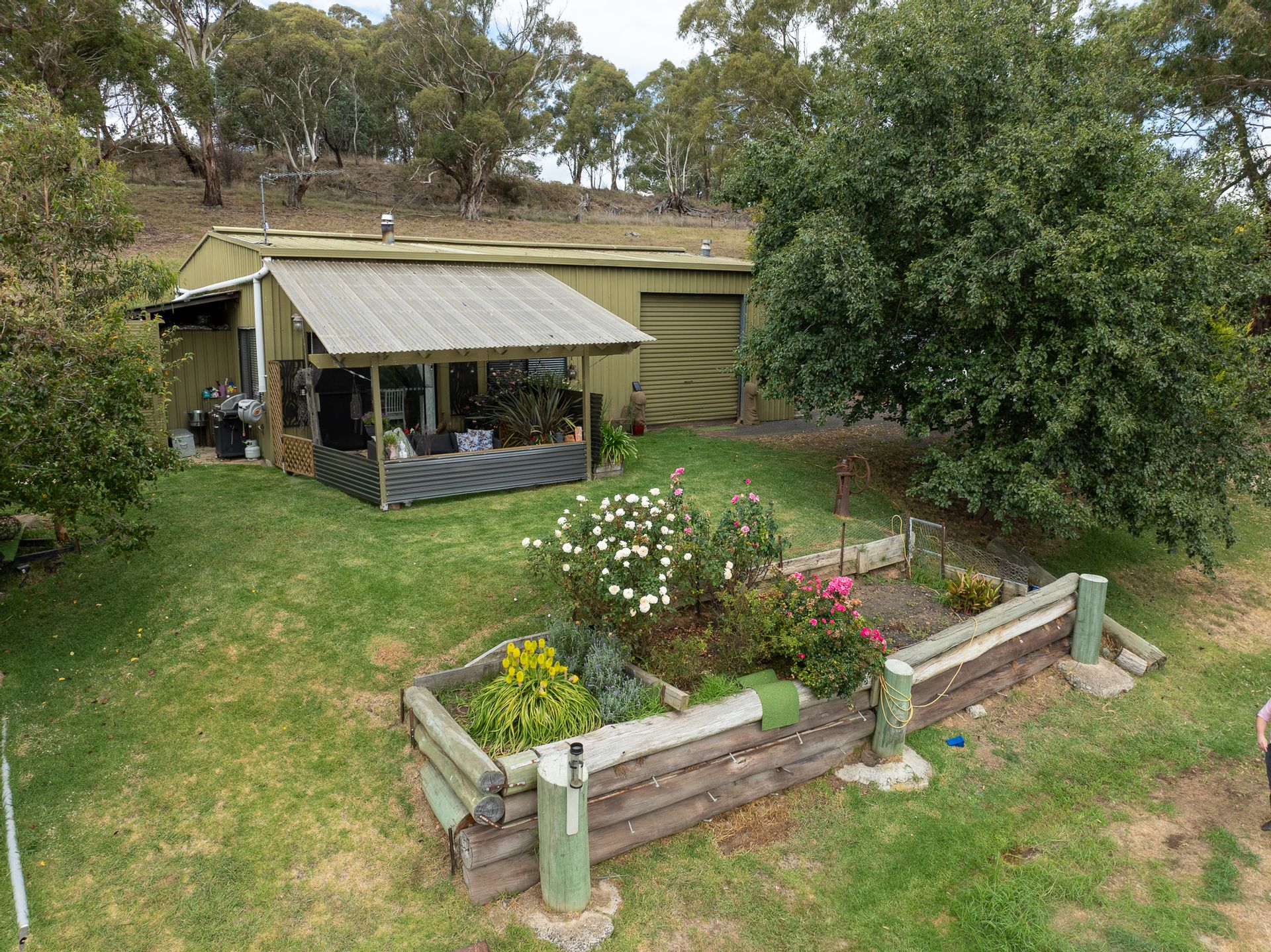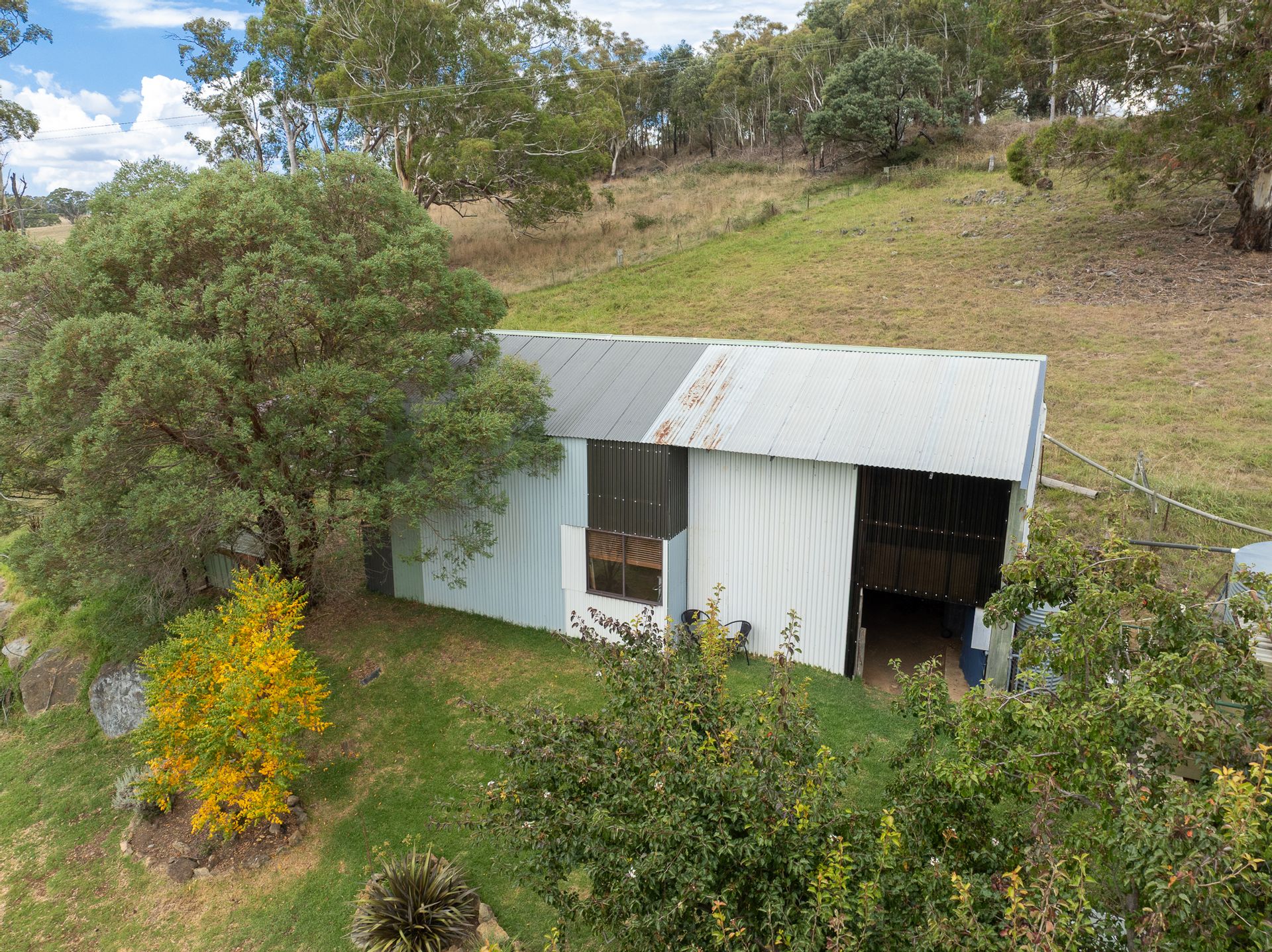 • Weekend accommodation, with two bedrooms, living area and amenities connected to septic. Three phase power connect to machinery shed, 240V power is connected to the accommodation allowing for easy access to mains power should you decide to build.