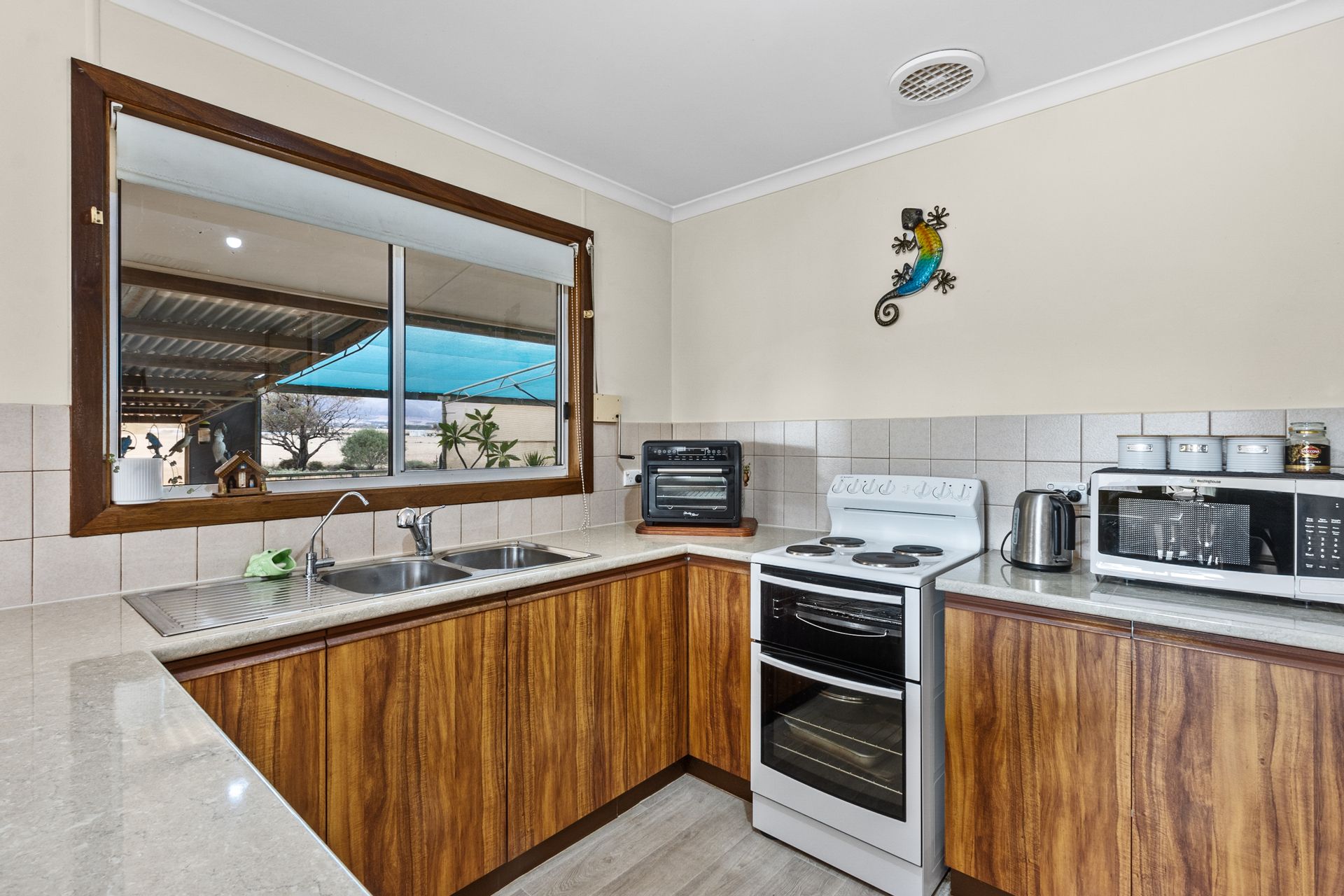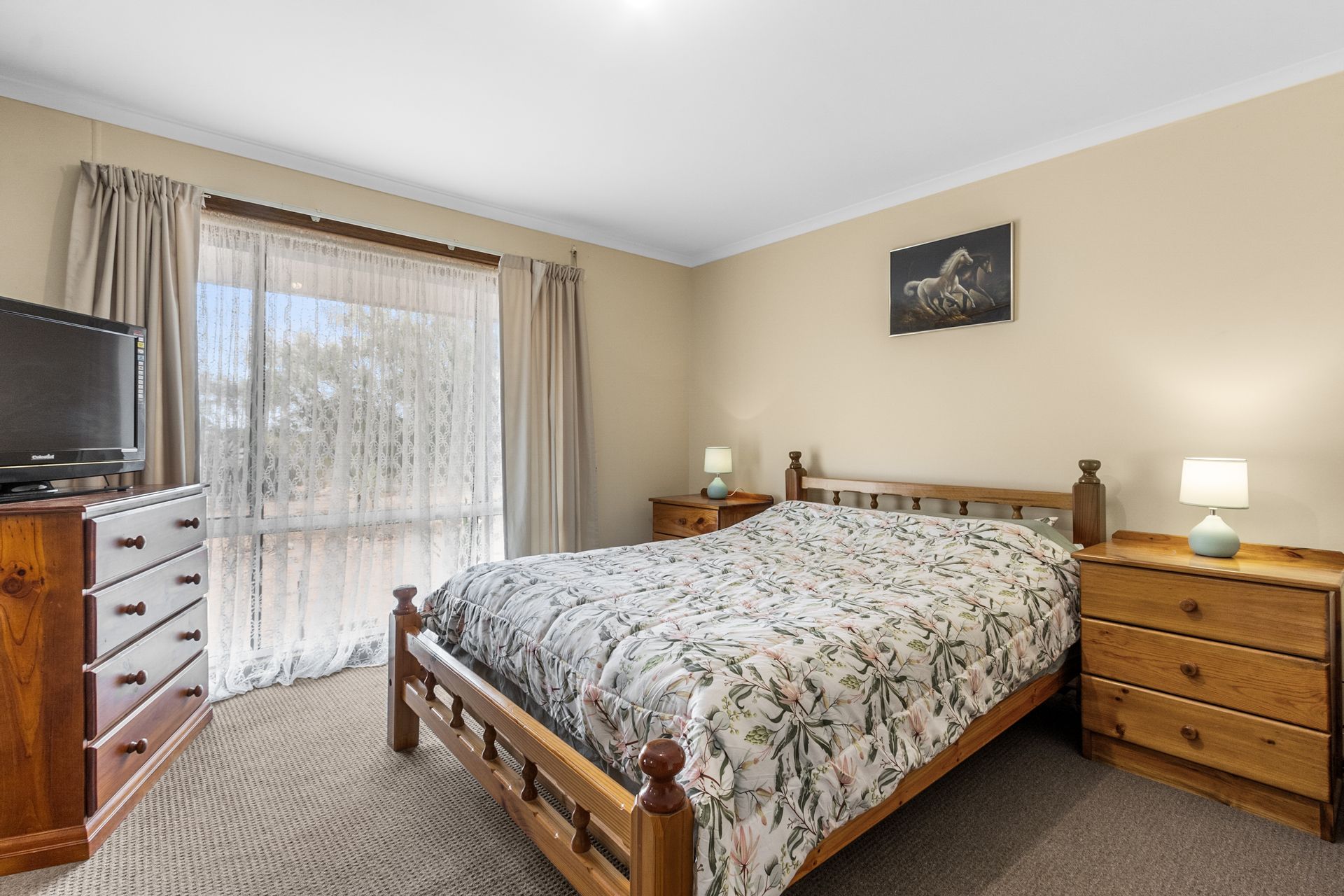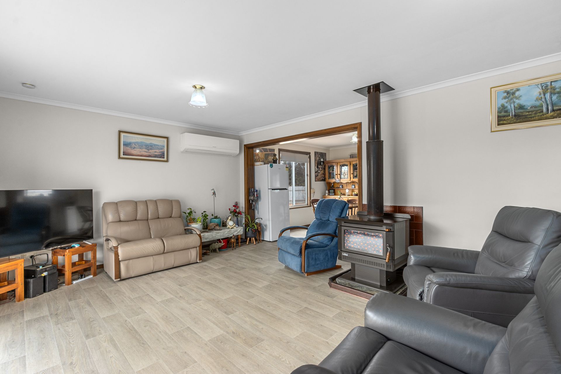 The residence features 3 generously sized bedrooms, including a master with built-in wardrobes for ample storage. At the heart of the home, the spacious lounge provides a warm and inviting atmosphere with a combustion heater, split system air conditioning, and ducted evaporative cooling-ensuring year-round comfort.