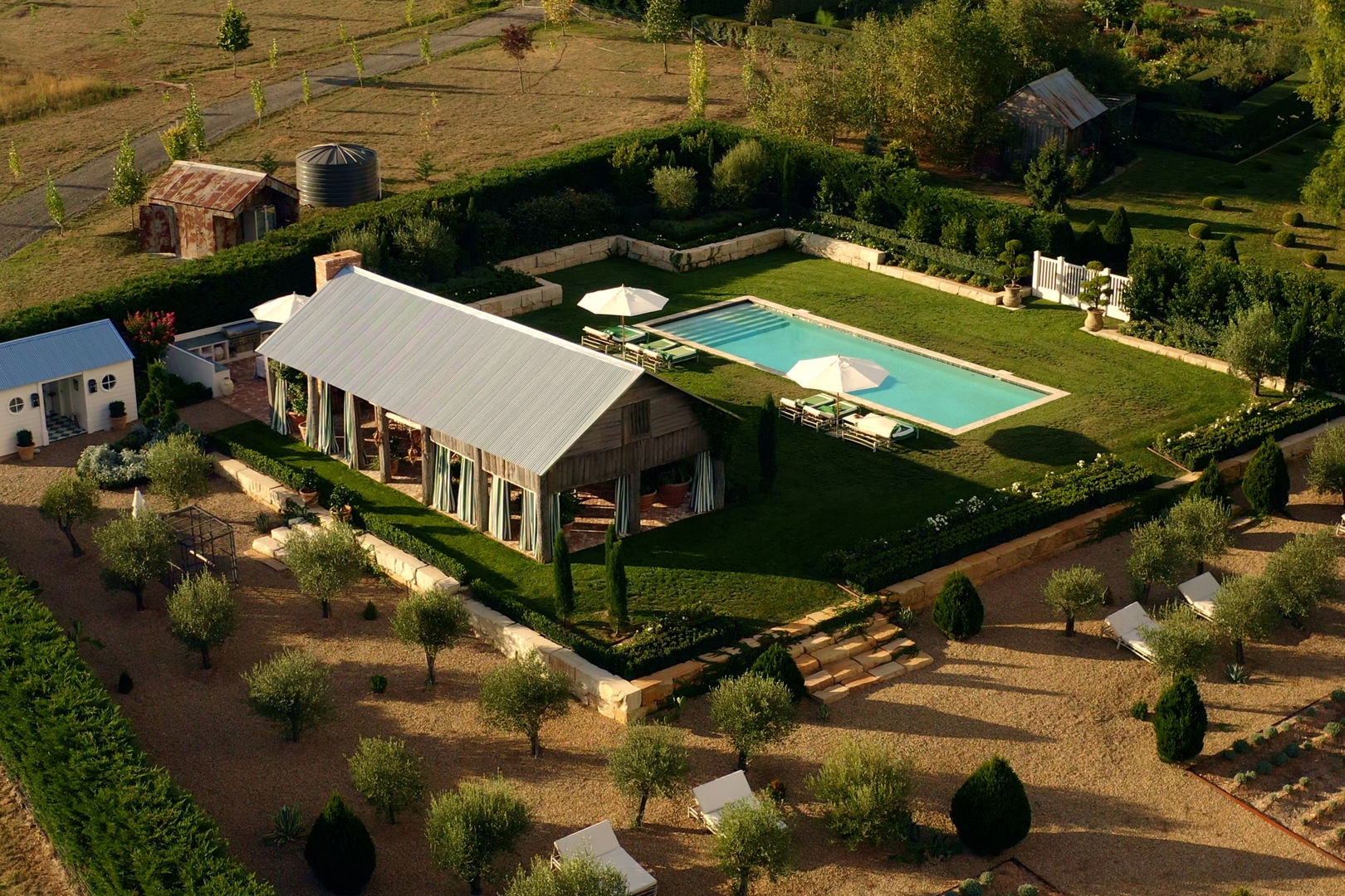 * Heated swimming pool with outdoor bathrooms, pool house and entertaining pavilion