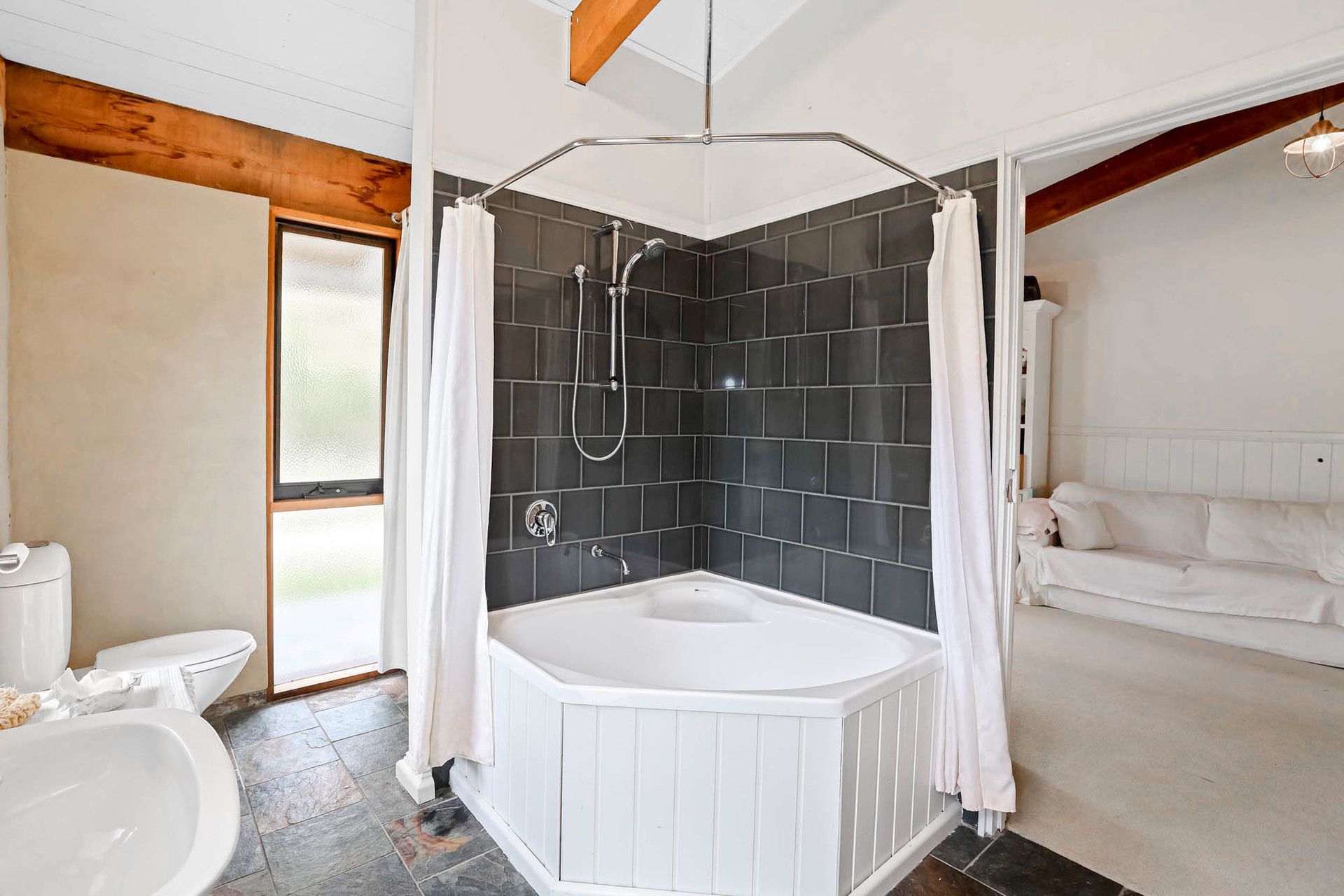 Set in the stunning hills of Ferndale, this impressive 54-acre property offers a peaceful and private escape from suburban life. Surrounded by natural beauty, it provides expansive rural views, accessible via a gently winding tree-lined driveway. The homestead features a wrap-around verandah, adding to its charm and connection with the outdoors.