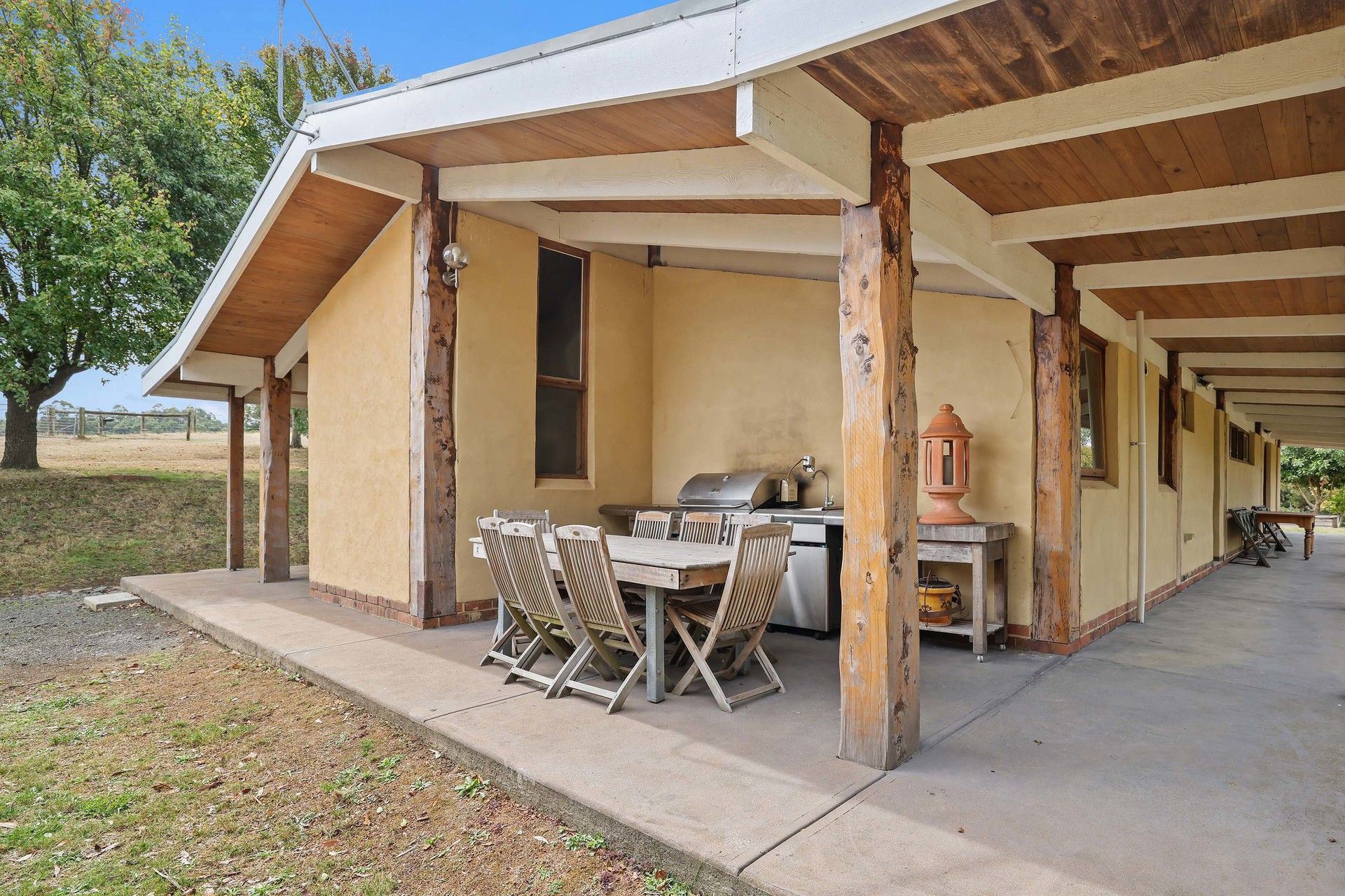 Built with solid mud brick, the home remains naturally cool in summer and warm in winter, while the solid fuel heating and 16-panel solar system ensure energy efficiency year-round. The covered BBQ and outdoor entertaining area is perfect for enjoying the tranquil surrounds and serene atmosphere of this most beautiful property.