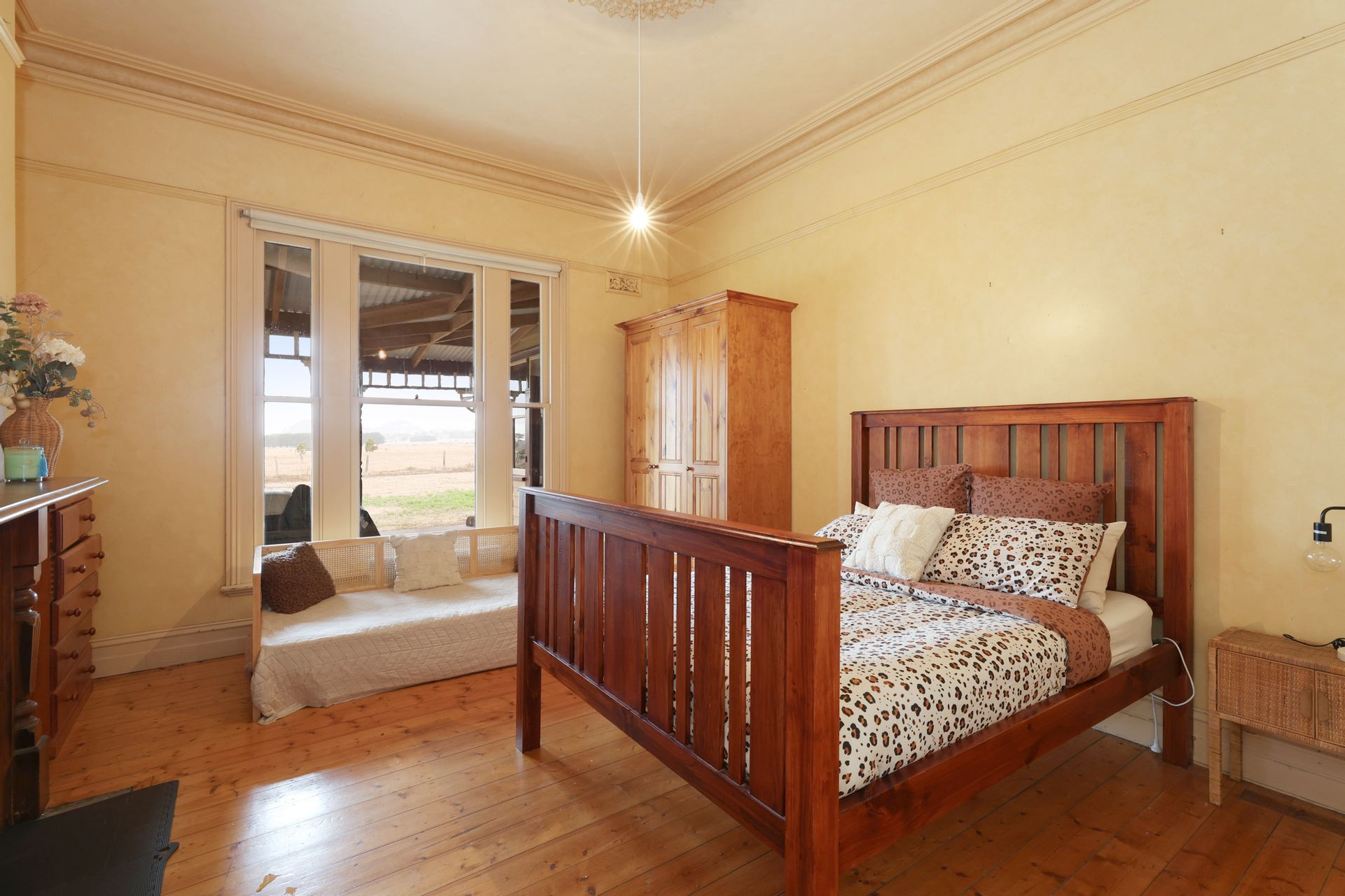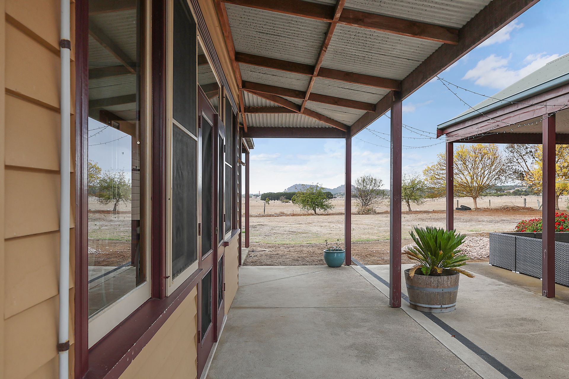 With 5 spacious bedrooms and 2 well-appointed bathrooms across two levels, there's ample room for both family and guests. Upstairs, the large master bedroom, featuring an ensuite and walk in robe offers lovely views of the rural landscape and beyond.