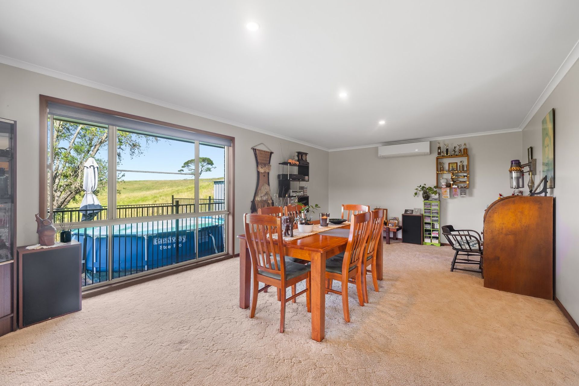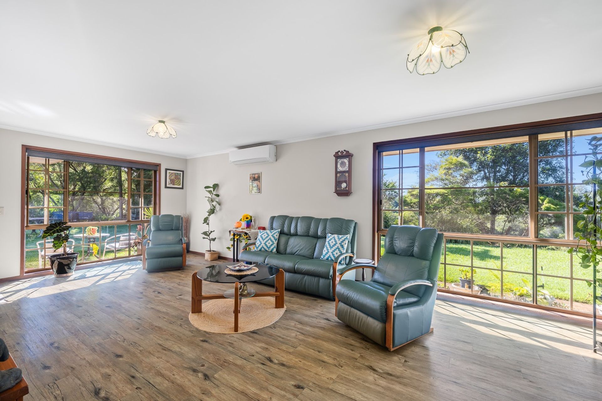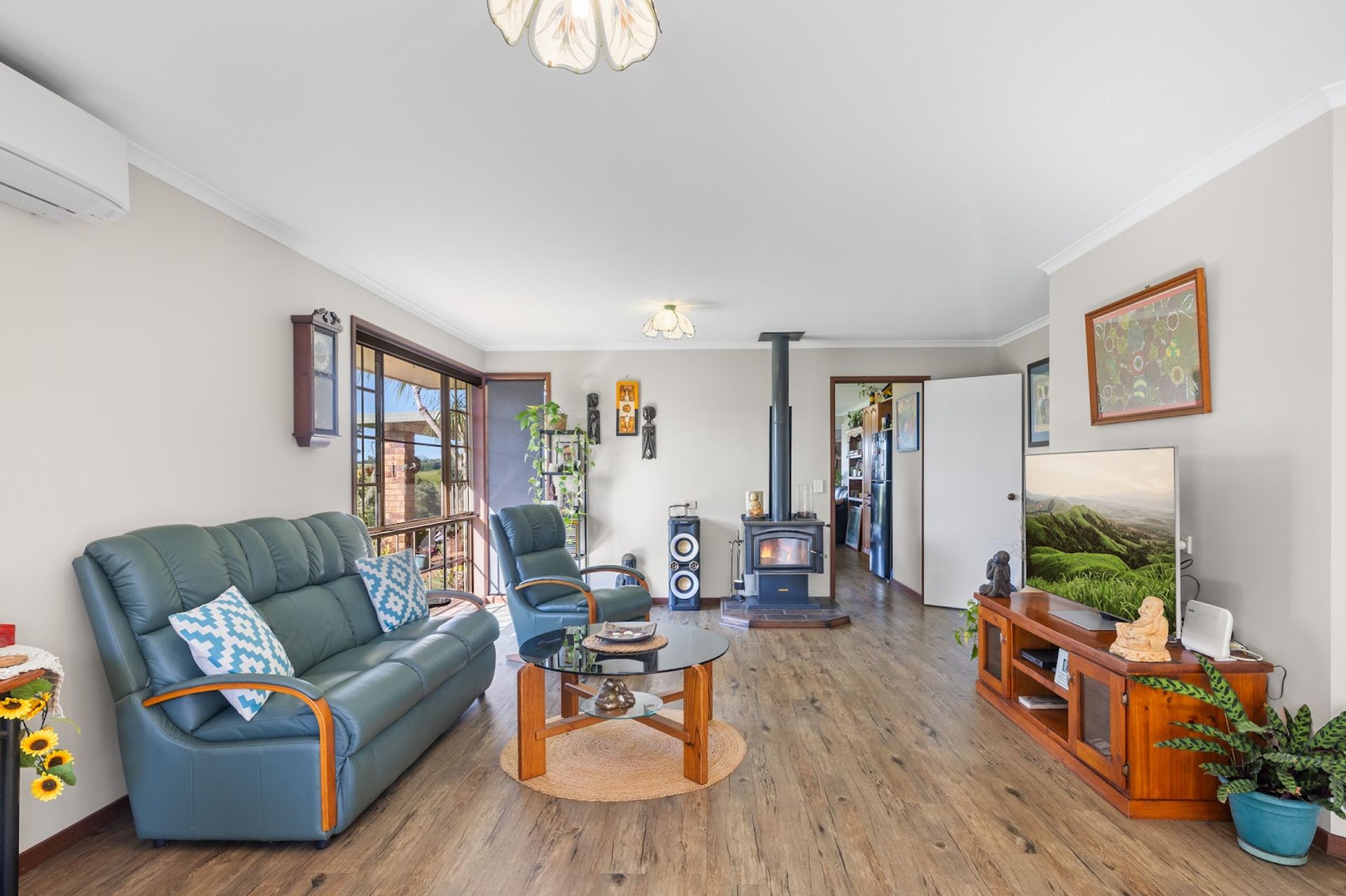 At the heart of the property is a solid 3-bedroom, 2 bathroom brick home, beautifully maintained and move-in ready. Inside, enjoy year-round comfort with a wood fire heater, split system air conditioning in both the living room and master bedroom, two modern renovated bathrooms, and insect screens throughout. Step outside and you’ll find a flat yard surrounded by native species attracting birdlife and a stunning long valley view.