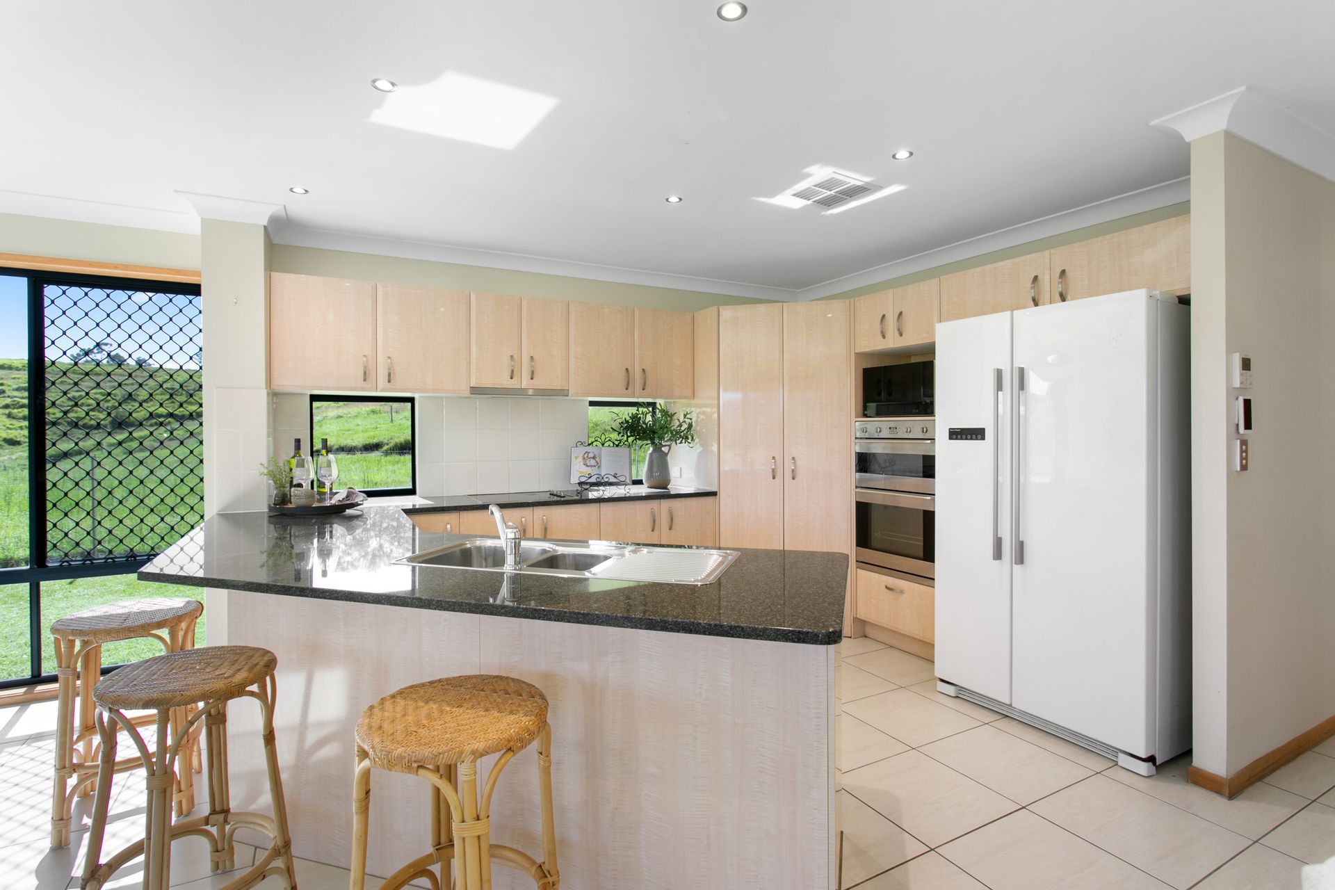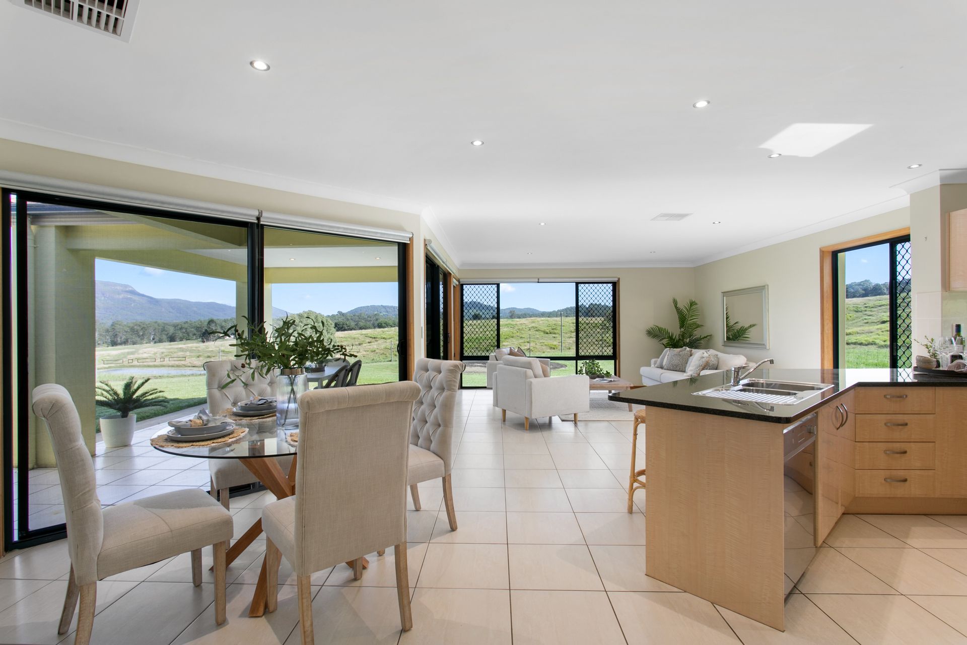 • Open-Plan Living - Light-filled living and dining areas with large windows and high ceilings offering panoramic rural views.