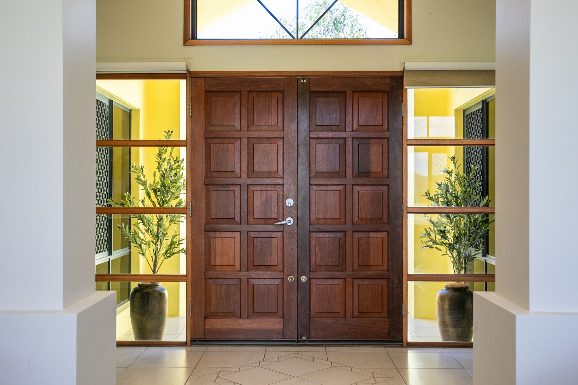 • Grand Entry - Elegant double doors open to a spacious foyer, setting a sophisticated tone.