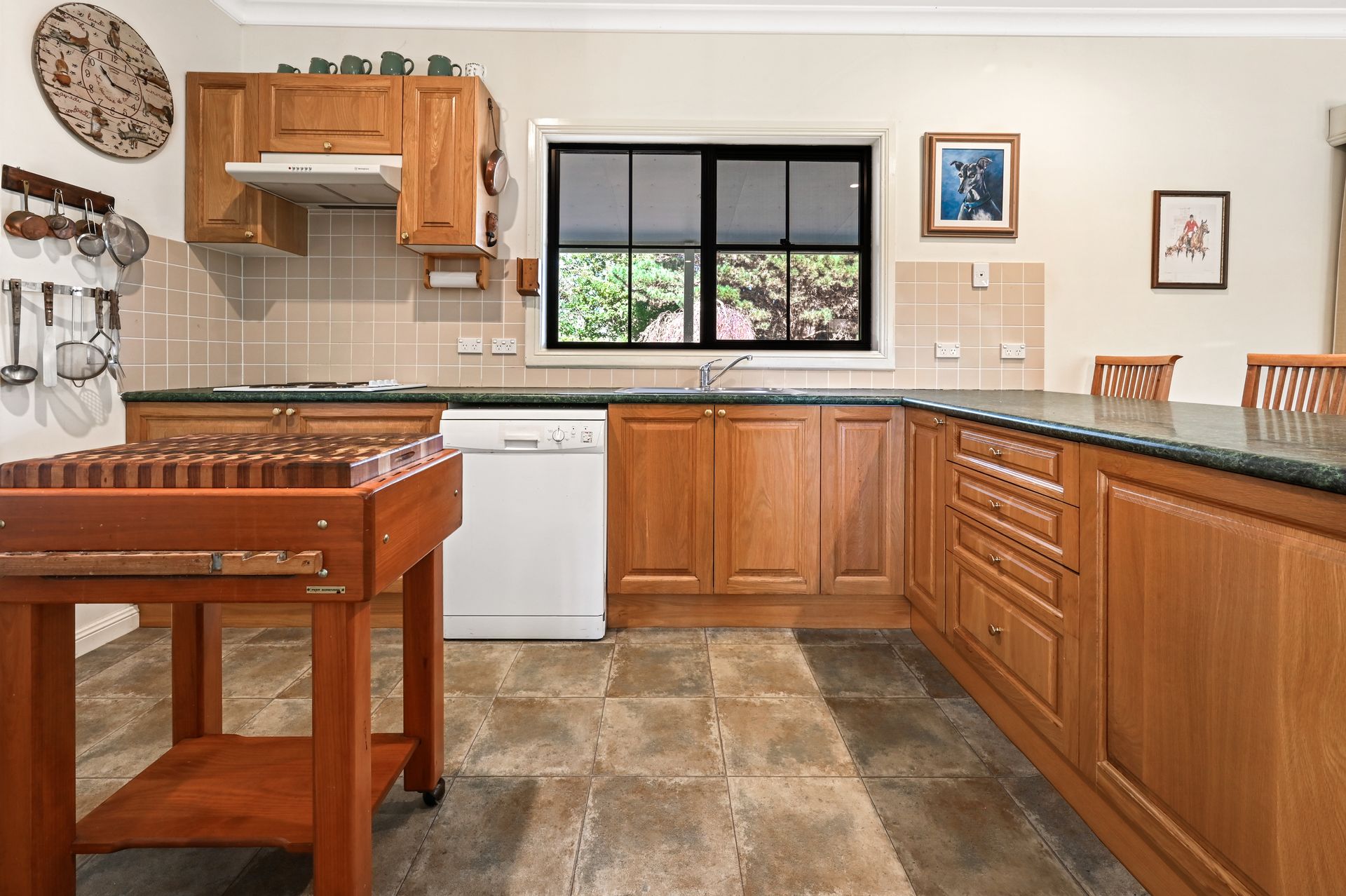 - Versatile timber kitchen with pantry, large fridge space, dishwasher, and a brilliant AGA wood stove