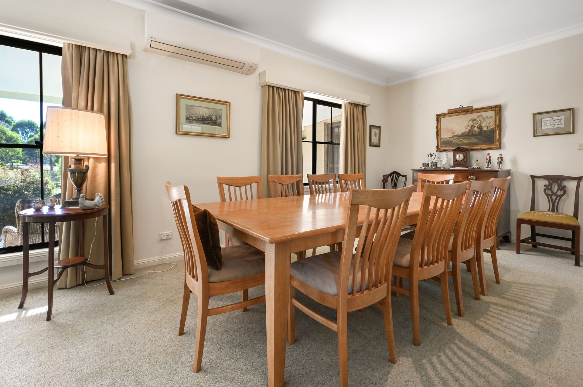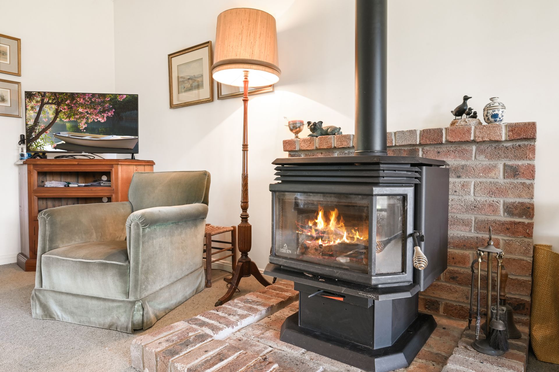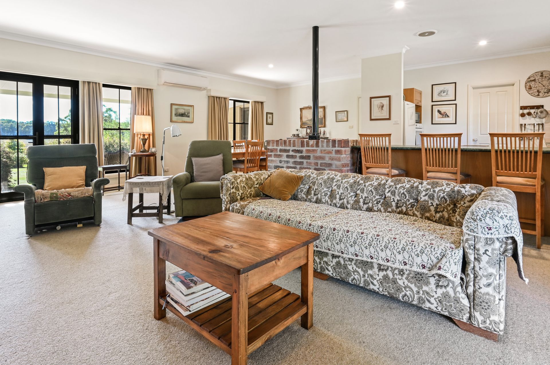 - A slow combustion wood fire with brick hearth and reverse-cycle air conditioning ensures year-round comfort.