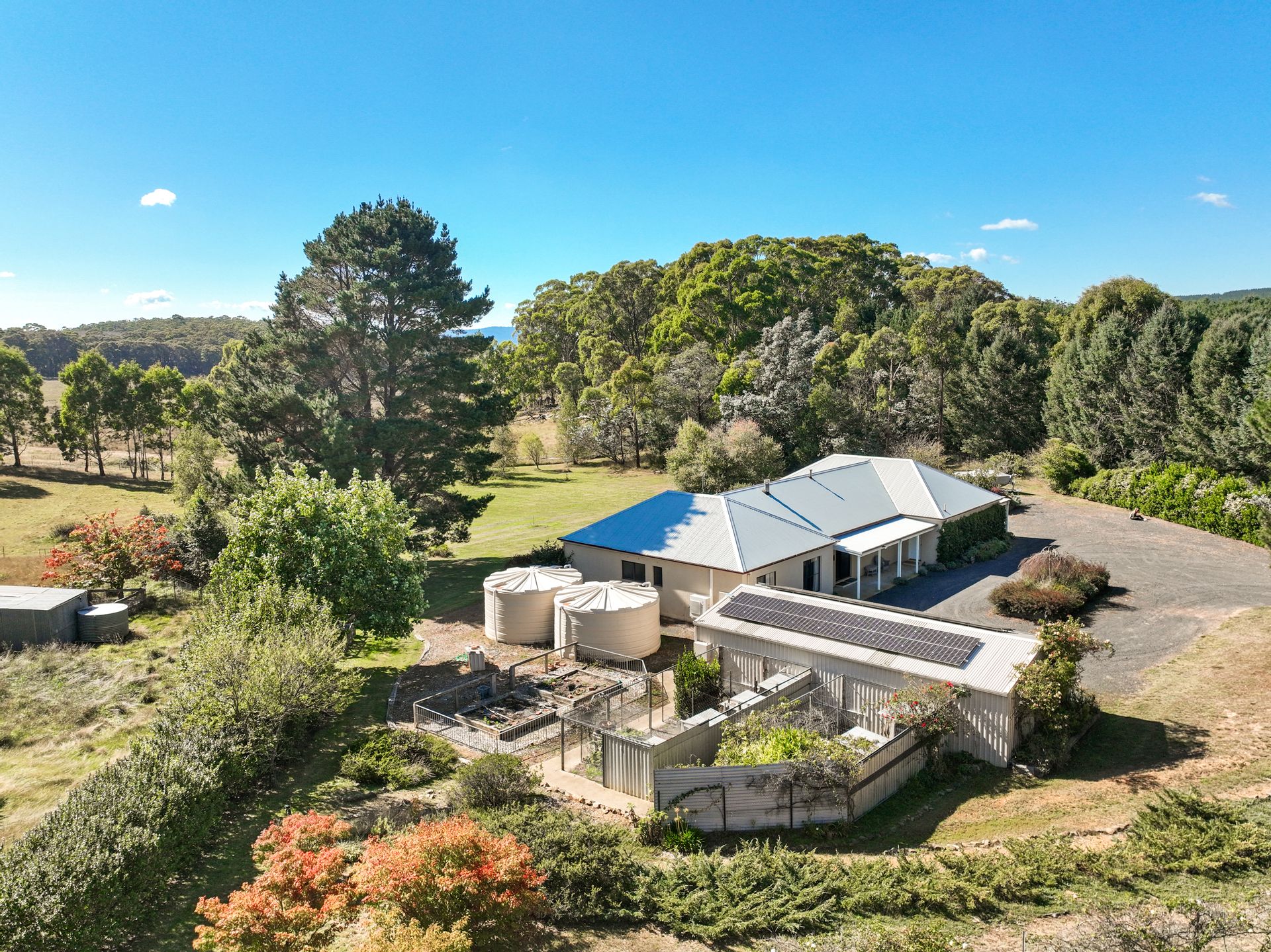 - Solar panels, rainwater tanks for home and garden use, and a bore - practical and sustainable.