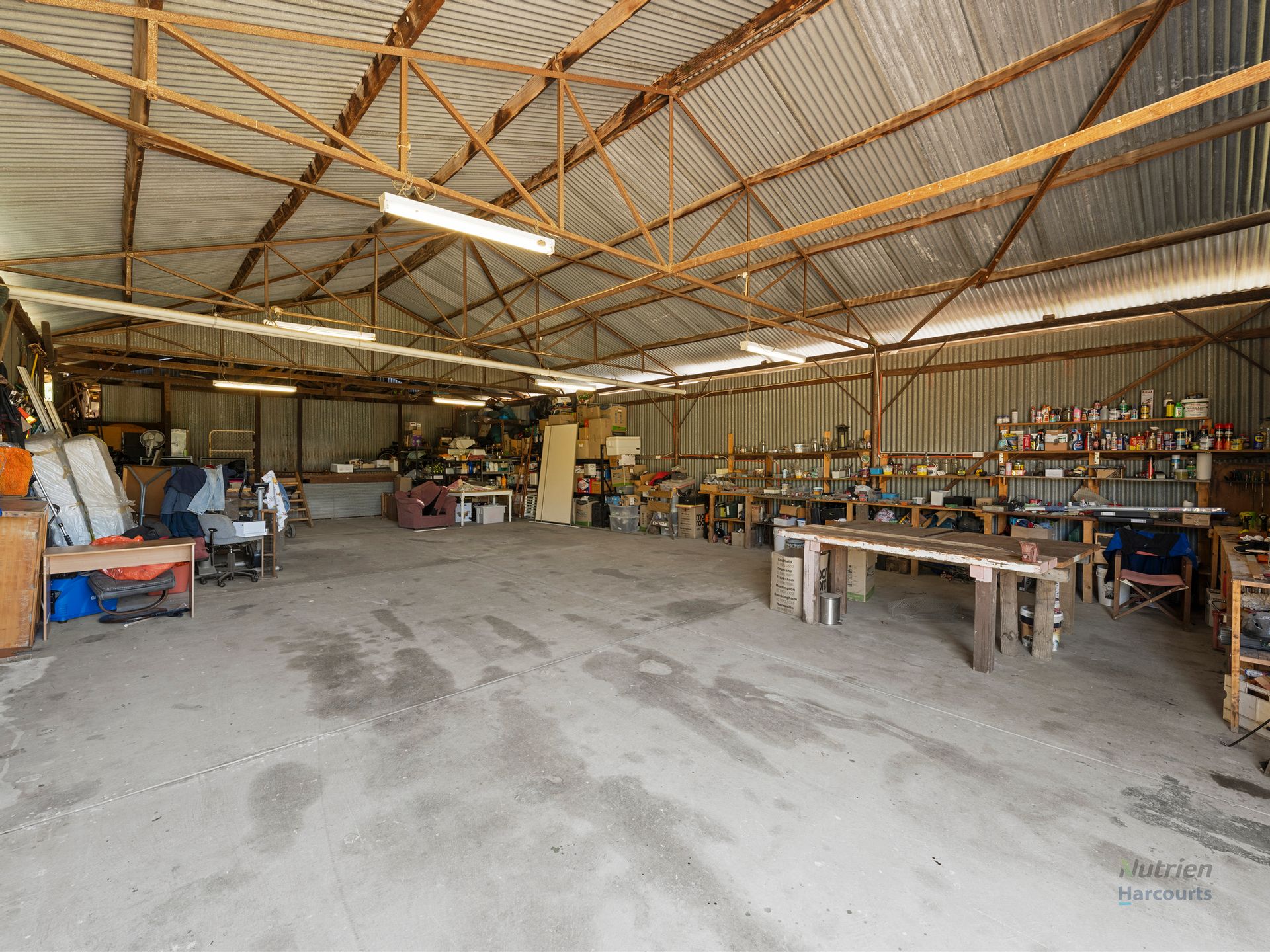 - Expansive shed/workshop with concrete floor and power