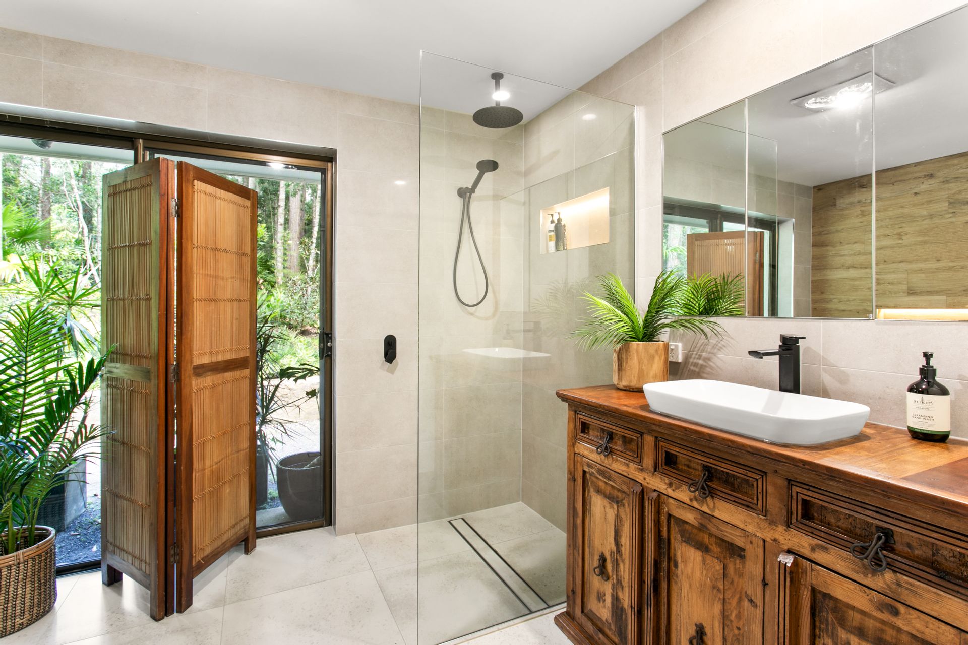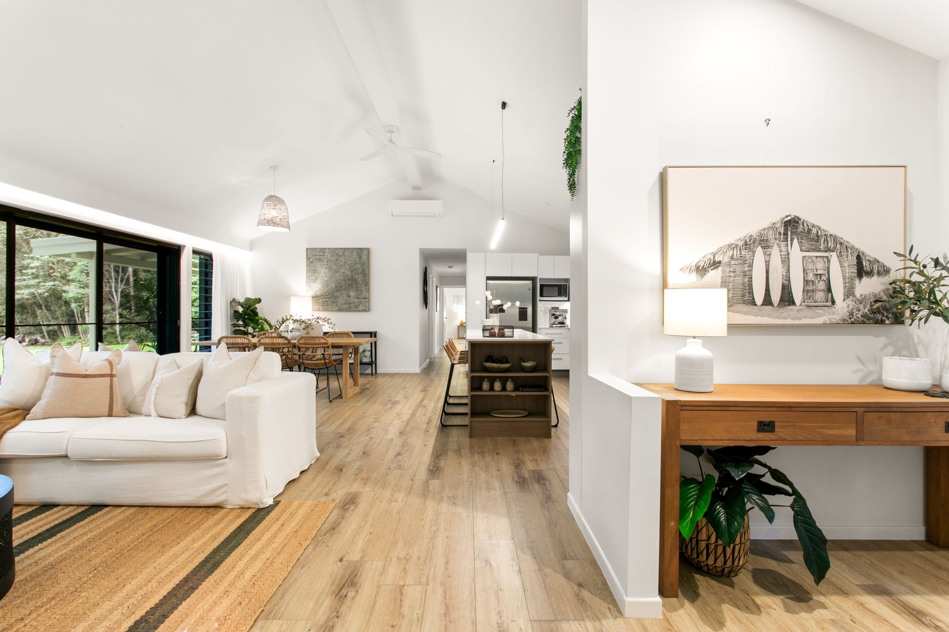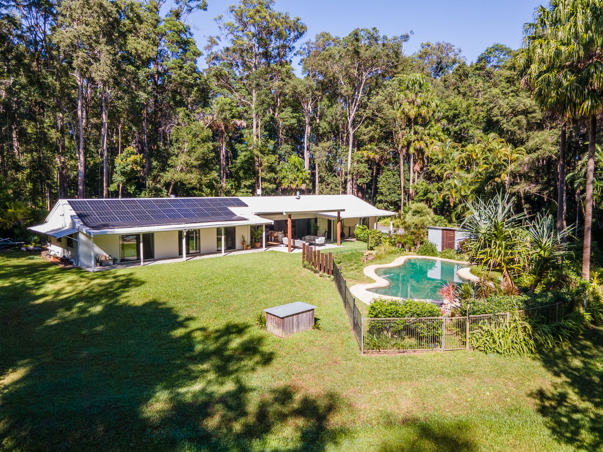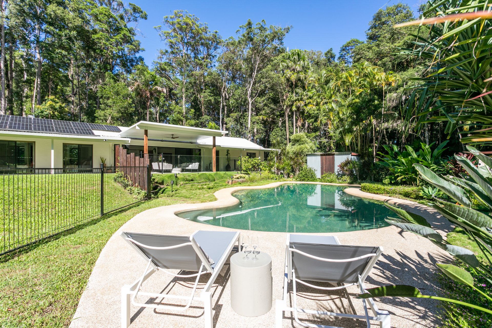 • Edible Gardens & Outdoor Spaces: Outside the kitchen window lies an edible garden bursting with fresh produce. From citrus, papaya, and avocado to herbs like lemongrass, turmeric, and ginger, you'll enjoy the bounty of nature. The property also features lychee, peach, Panama berry, elderflower, and blueberries, all adding to the rich variety of your own personal food forest.