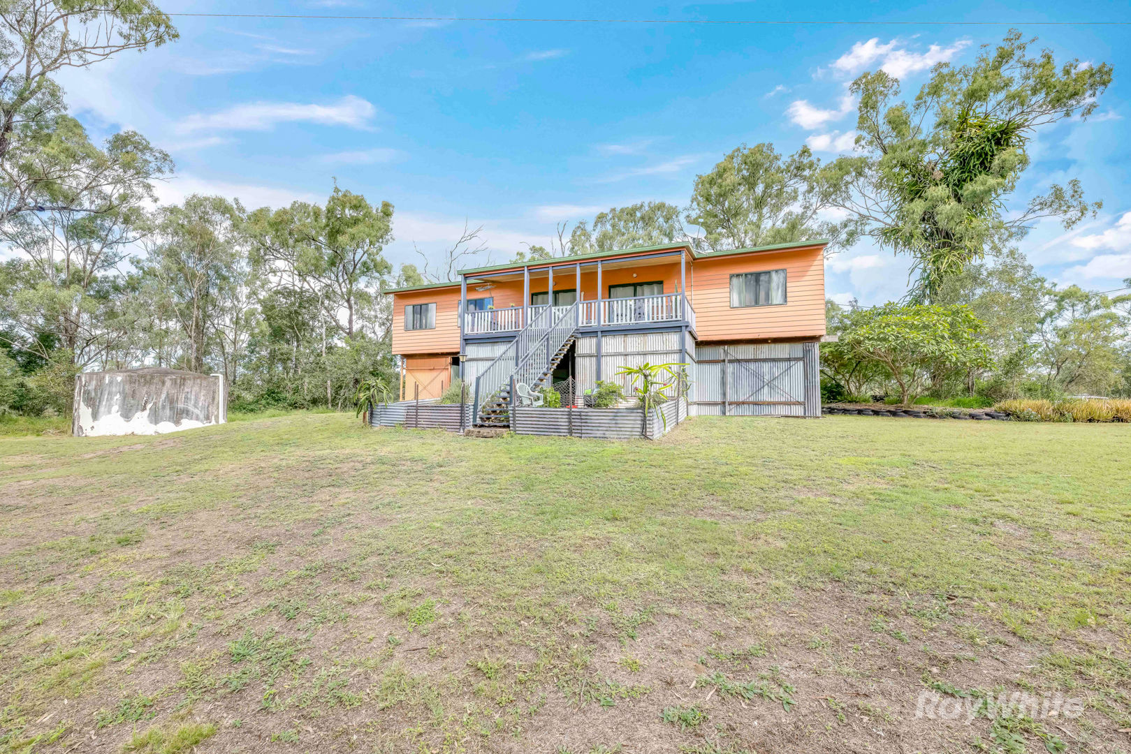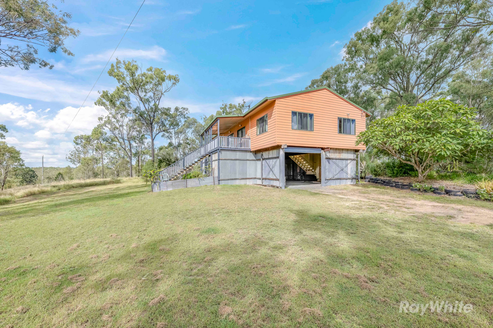 Inside, the high-set home is warm, functional, and full of country charm. Built in 1994 on steel stumps with 2.7m clearance underneath, there's potential to enclose the lower level and increase your living space. Upstairs, the open-plan layout includes a light-filled lounge, dining and kitchen area with timber floors, air-conditioning, and direct access to the veranda. The kitchen is well-equipped with an electric stove, island bench, breakfast bar, and a character-filled antique woodburning stove. There are five generously sized bedrooms, all with built-ins, plus a renovated family bathroom, separate toilet, and a laundry located downstairs.