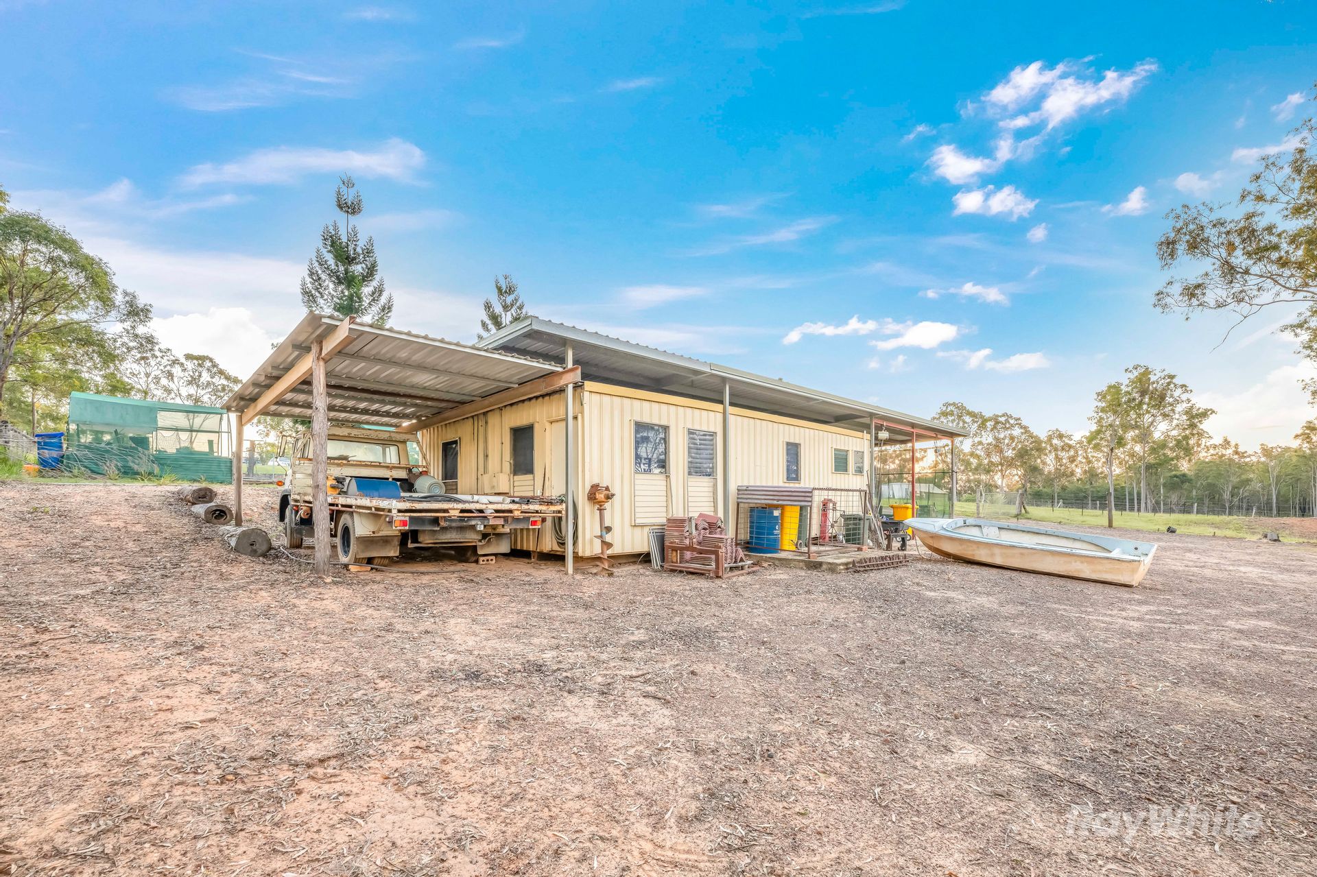 Perfect for hobby farmers or anyone seeking self-sufficiency, the land is boundary fenced with multiple paddocks, and features two dams, a bore, cattle yards, a truck loading ramp, and a greenhouse with veggie gardens.