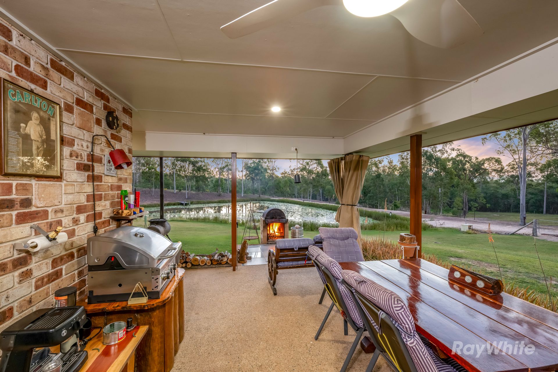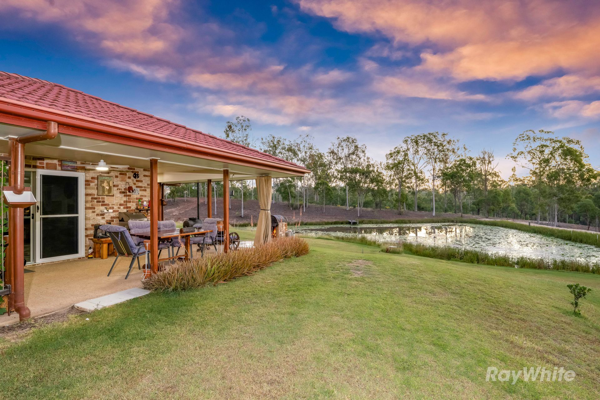 The stunning brick veneer residence is perched in an elevated position, overlooking a beautiful dam adorned with water lilies. Step out from the open-plan living area onto the wraparound veranda and take in the peaceful view-it's the perfect place for morning coffees, quiet evenings, or watching the wildlife drawn to the water's edge.