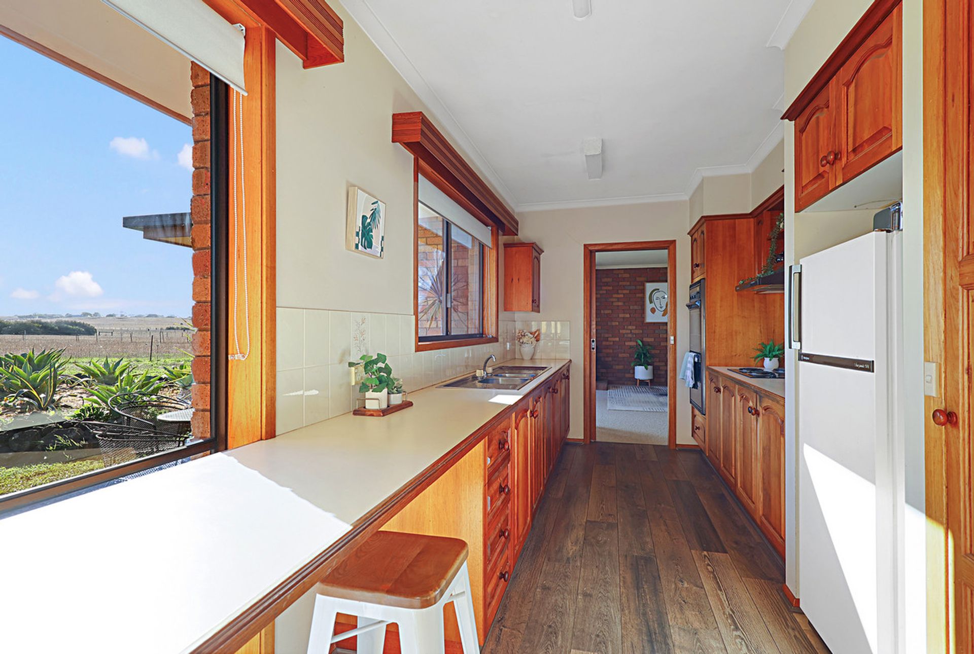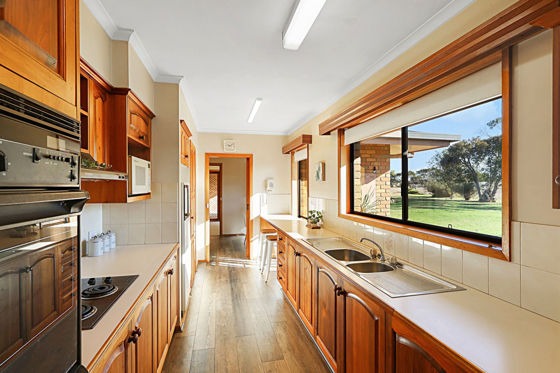 • Light and bright, north facing blackwood galley style kitchen with walk-in pantry and electric cooking with a small breakfast bar. Conveniently located dining room adjacent or alternatively second living area.