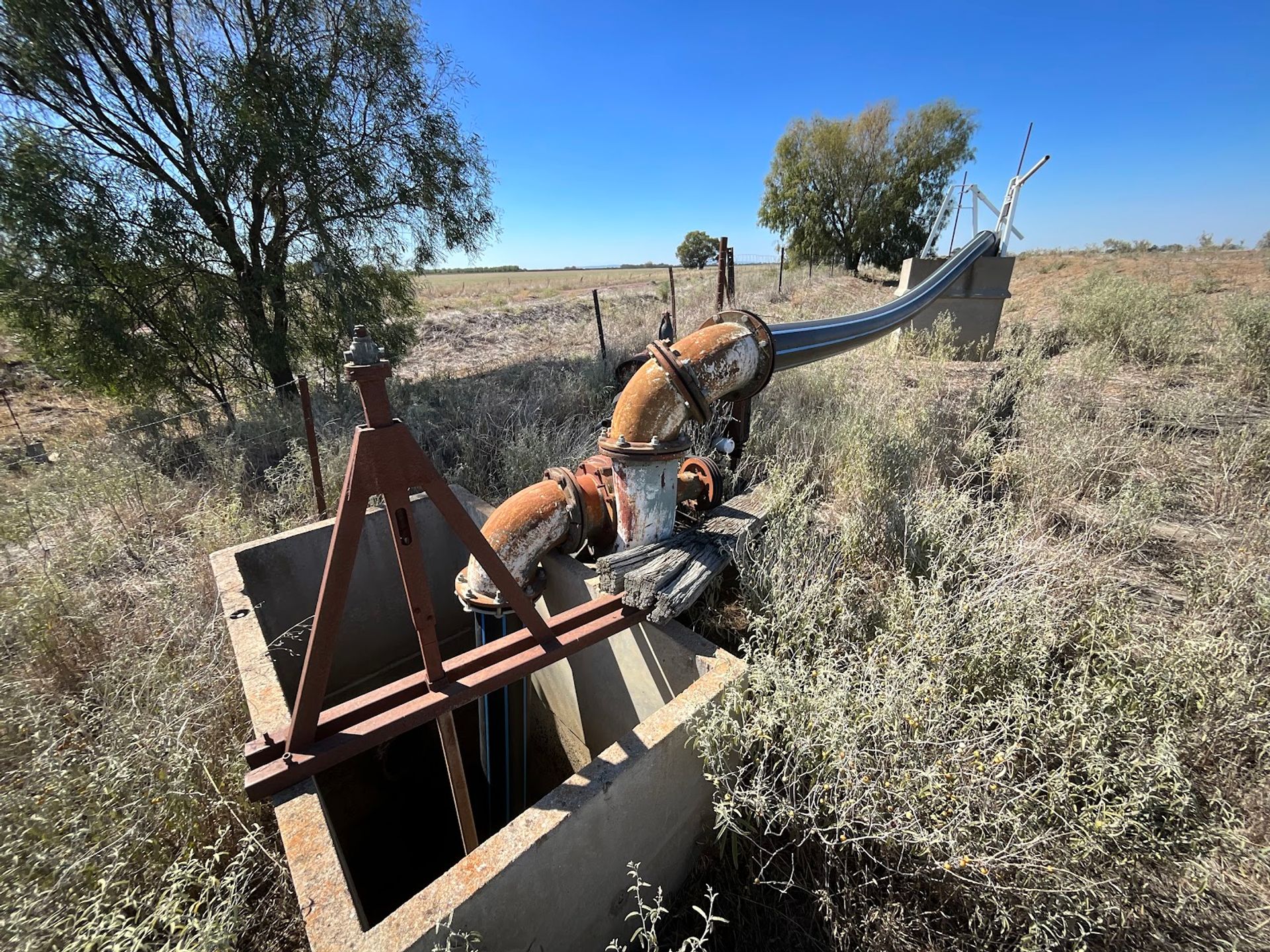 - Stock & domestic bore, 30,000 litre concrete and plastic water tank storage off-shedding