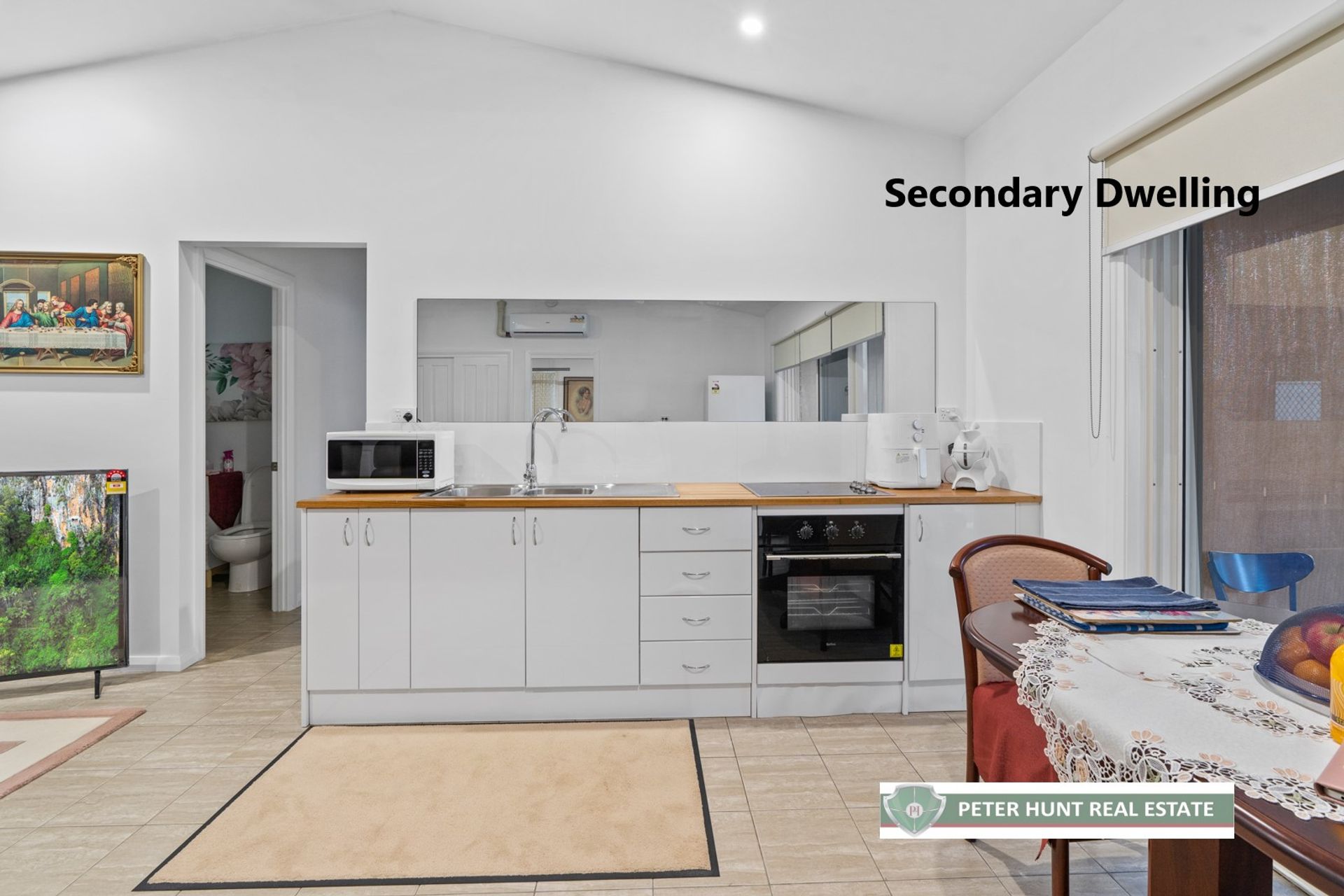 Perfect for in-laws, guests, rental property or Air B’nB’ income is this separate, brick dwelling with metal roof, privately located beyond a white Colorbond fence, for complete privacy and separation from the main dwelling: