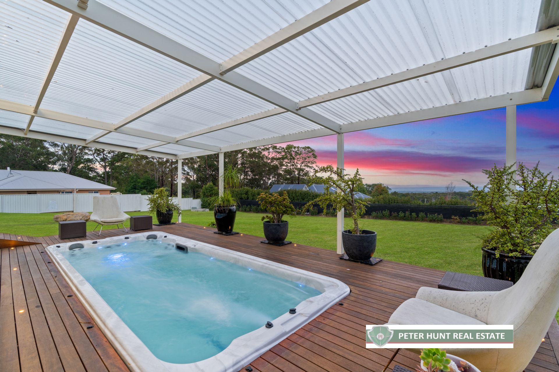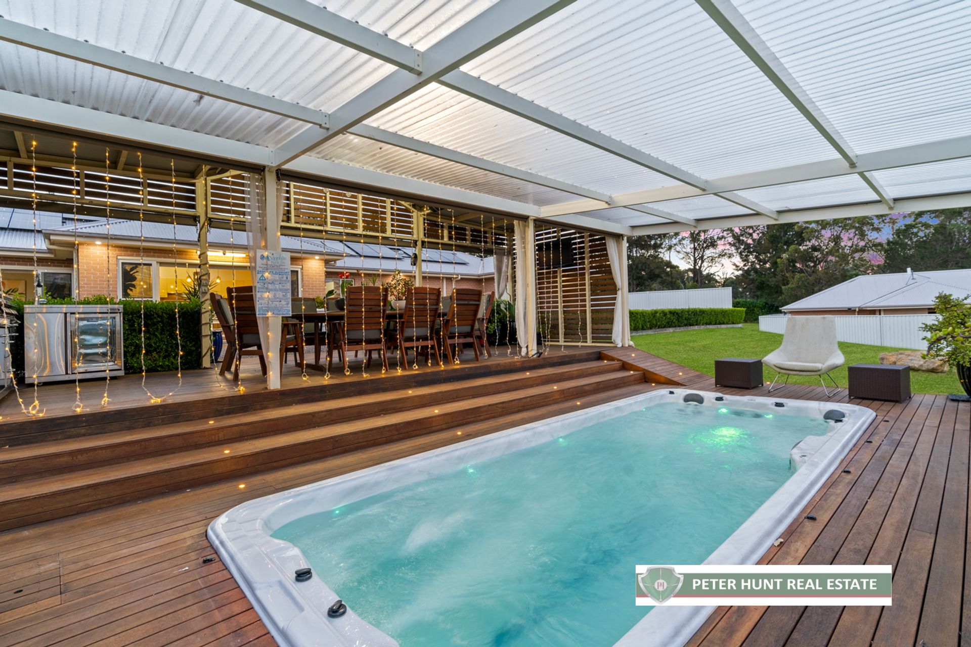 • Outdoor timber-covered entertaining pavilion with space for your BBQ, recessed lights and a luxurious swim spa, all with outstanding views.