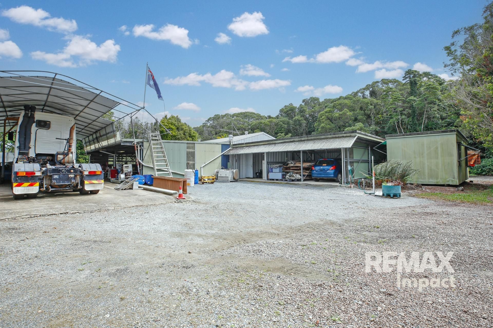 • High-clearance awning (approx. 4.8m) perfect for truck or RV storage