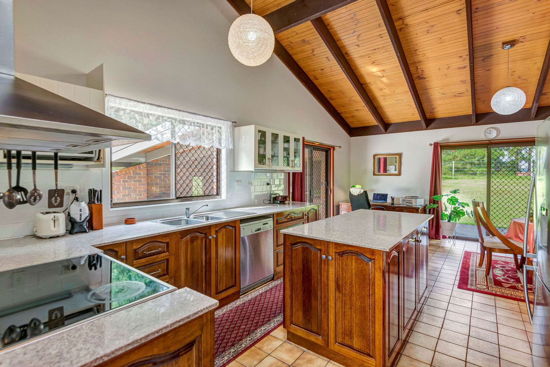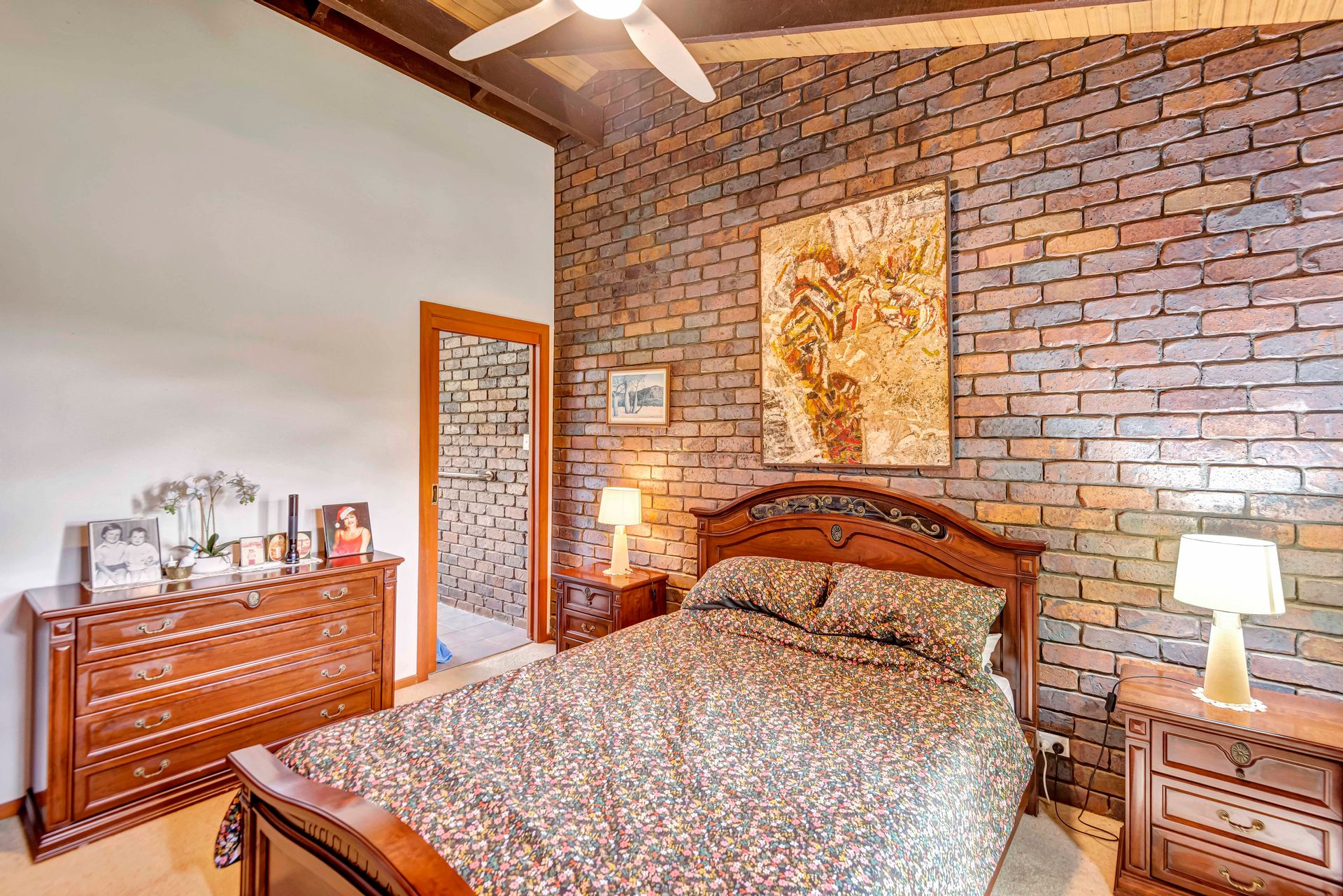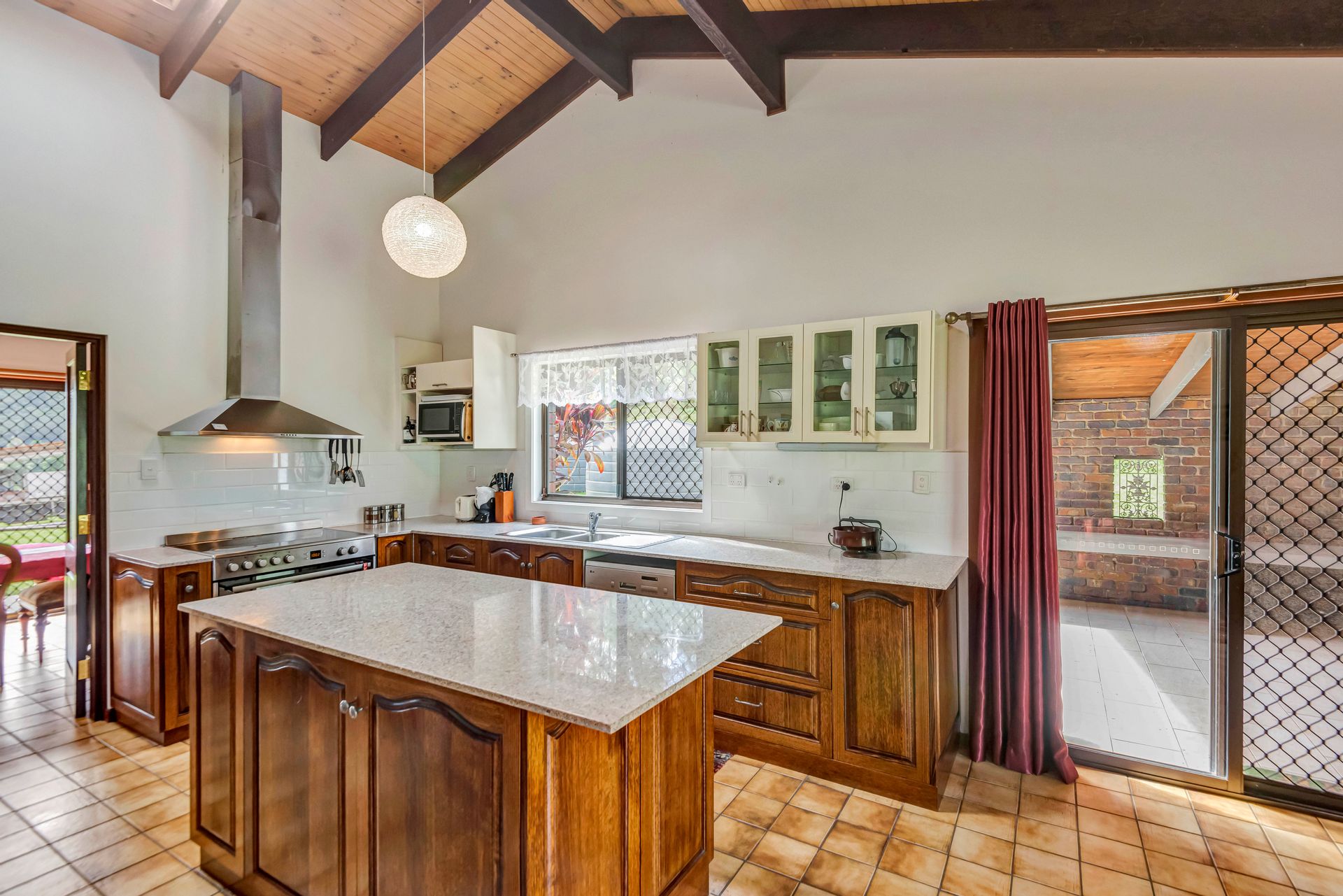 • Master-built brick and tile home with high raked ceilings and expansive living areas