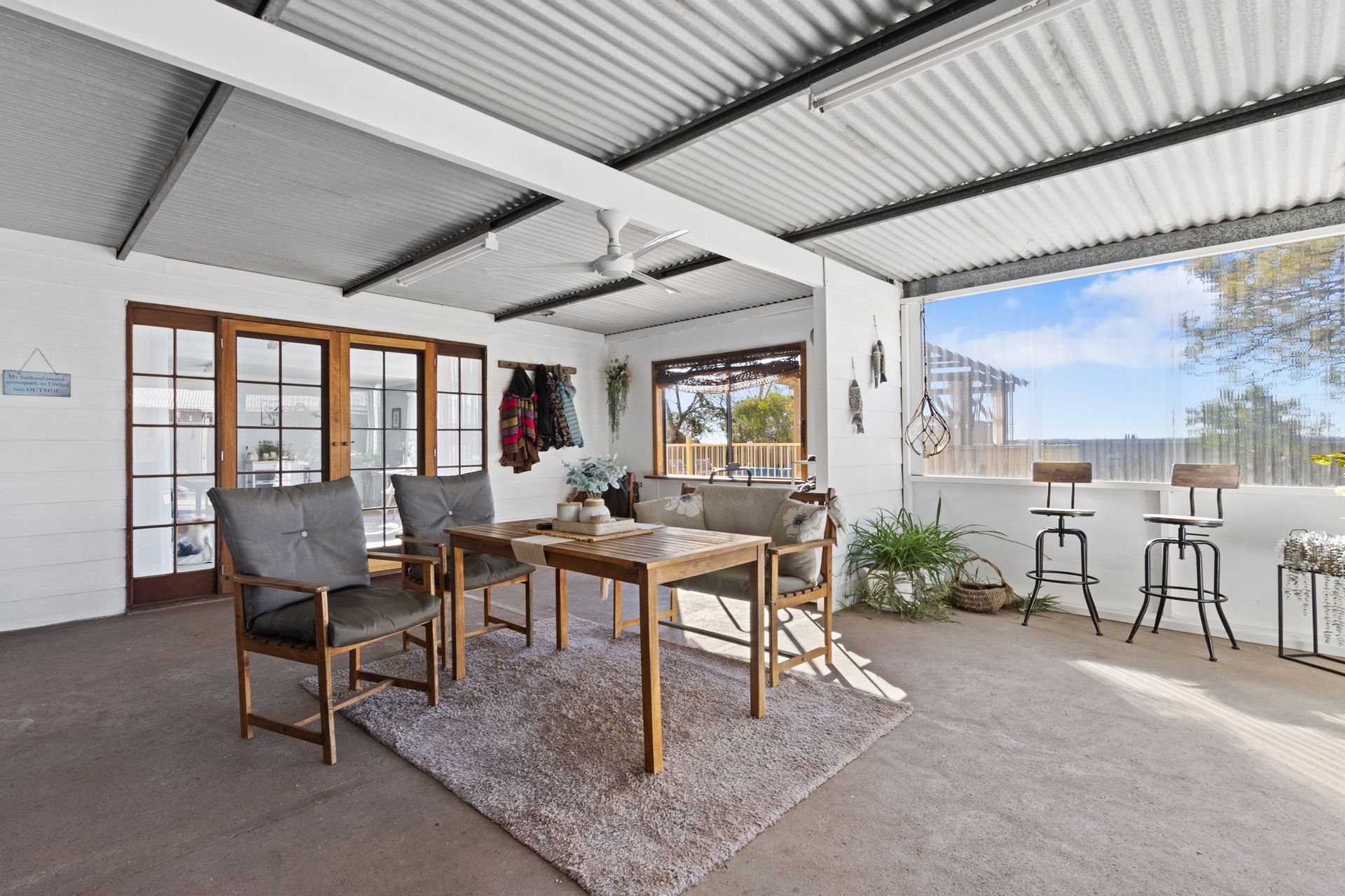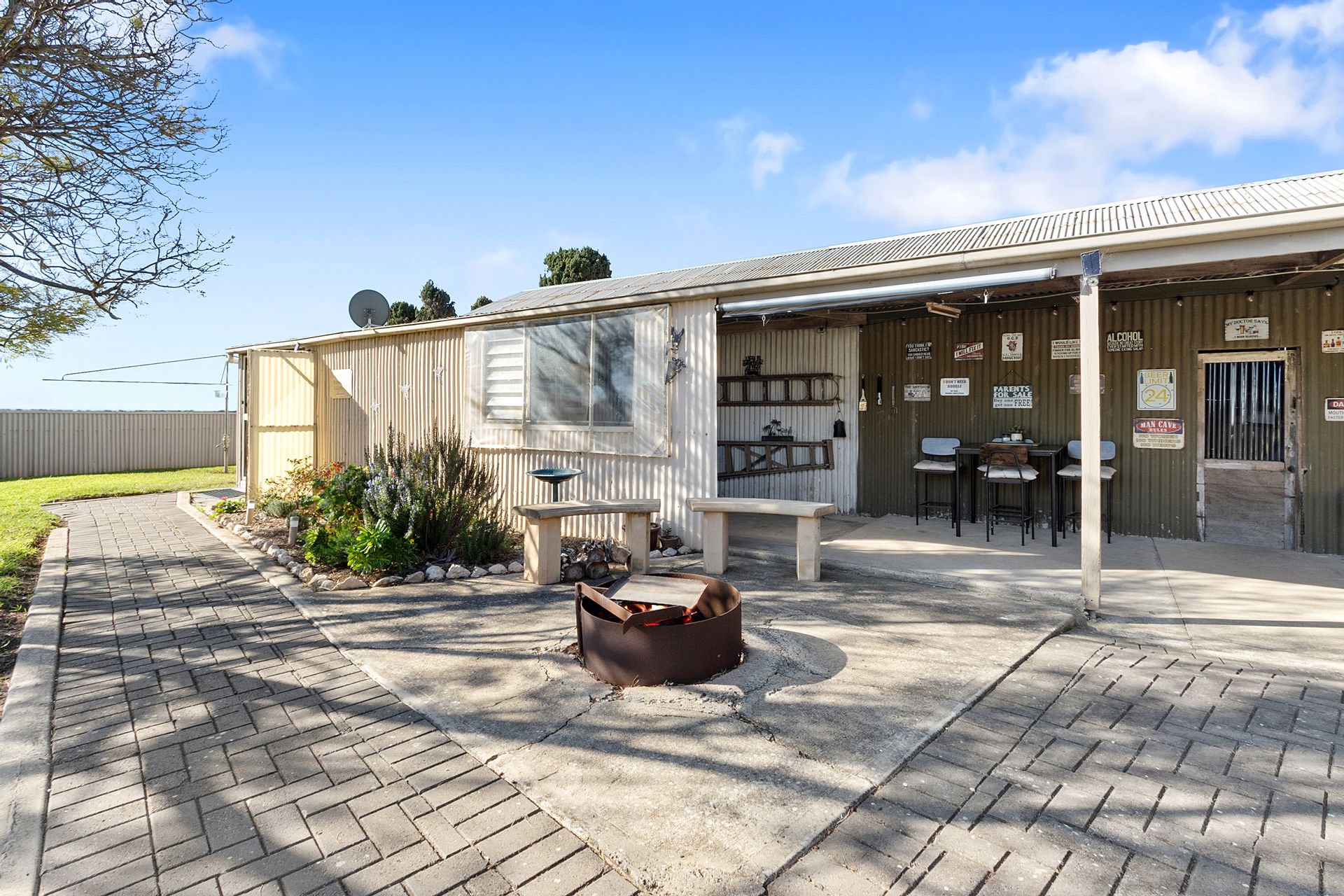 Similar size semi enclosed BBQ area adjoins the family/games room for relaxed entertaining as well as an outdoor entertaining area off the shed.