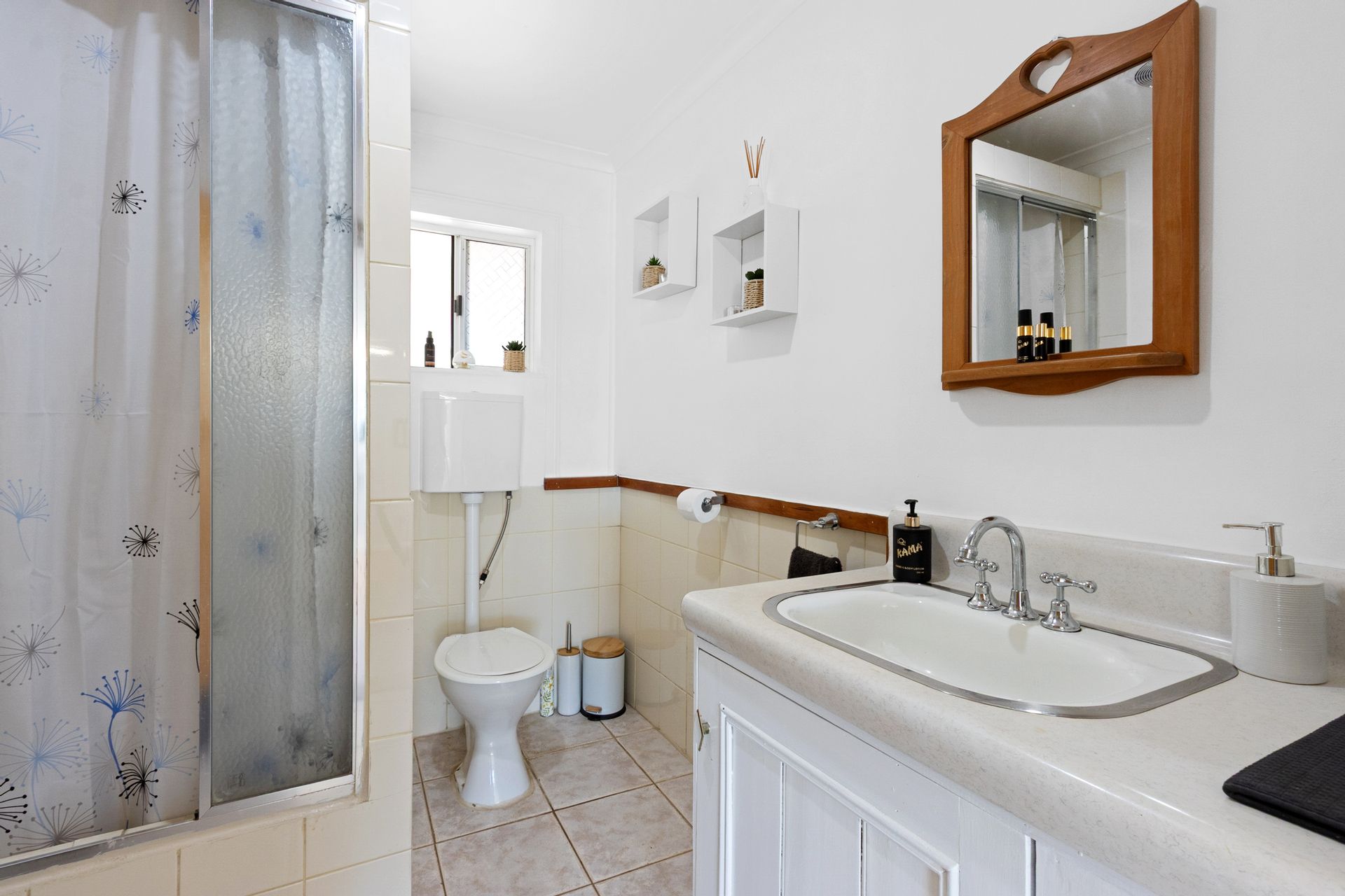 Tiled bathroom with shower, toilet and bath plus there is a 2nd bathroom off the large rear family room or games room overlooking the in-ground pool.