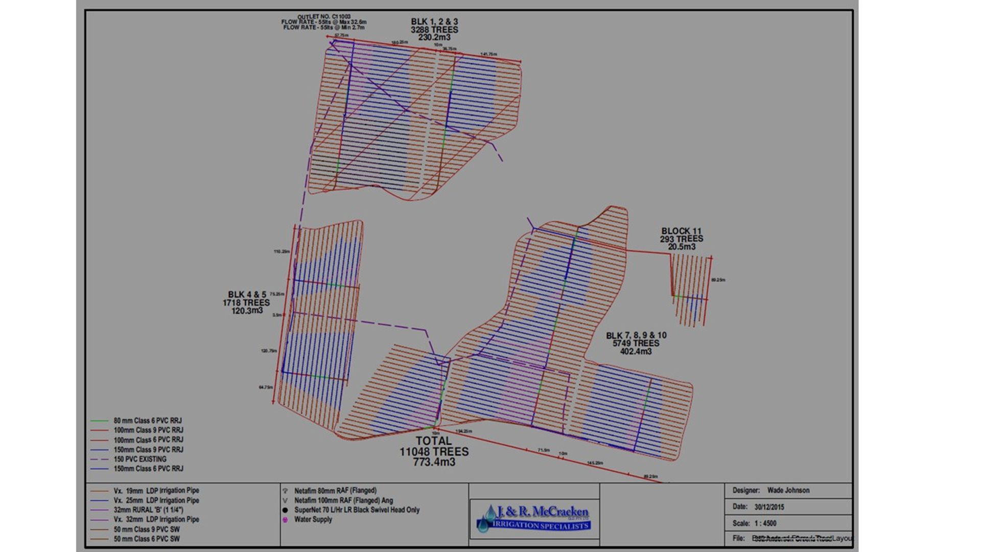 • Full suspended irrigation throughout orchard