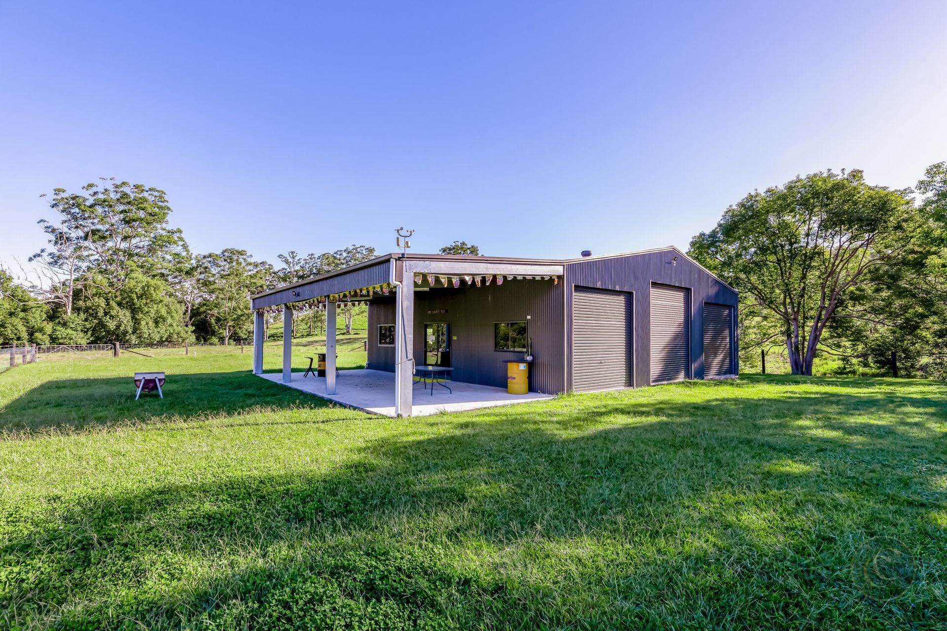 A standout feature is the large 10m x 11m shed, complete with a high-clearance roller door for storing the caravan, a kitchenette and bathroom with laundry, all powered and plumbed with septic system and water tank. Whether you're using it for storage, a workshop, or temporary accommodation, it's a versatile space with plenty of potential. Surrounding the shed is a secure dog-fenced yard, providing a safe area for pets to roam.